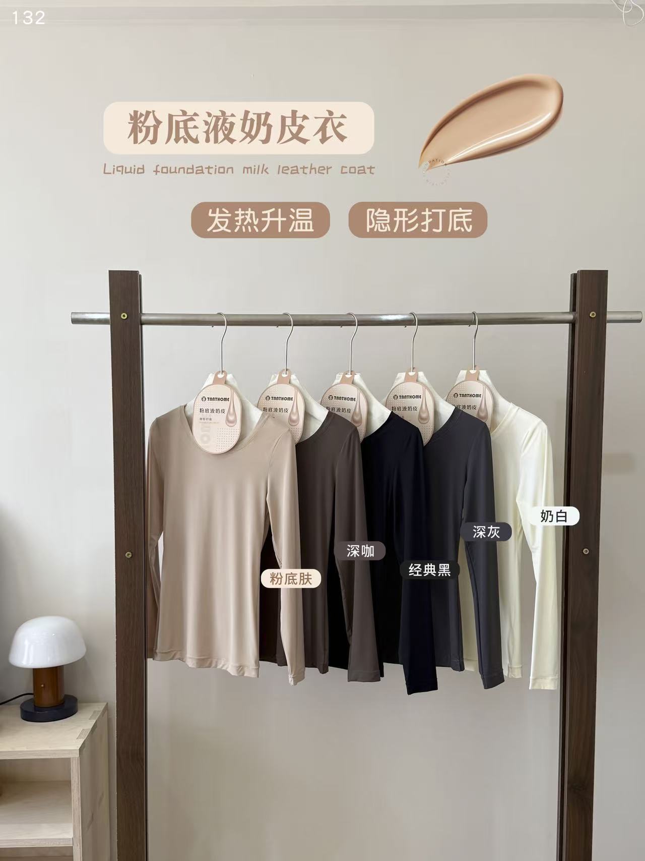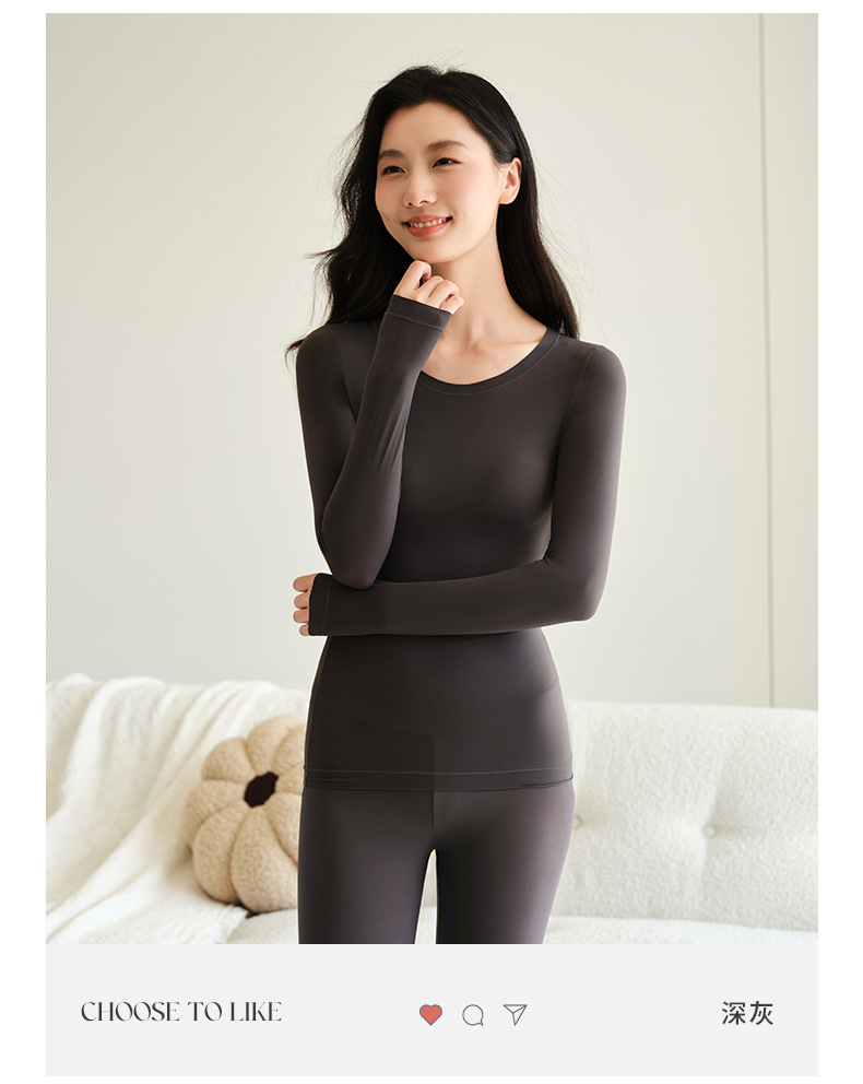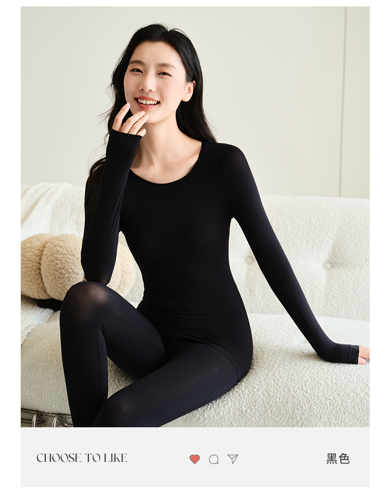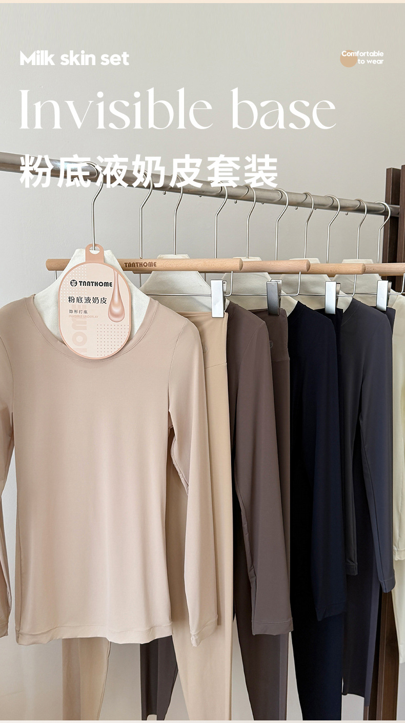 10132#秋冬新款粉底液奶皮保暖套装轻薄高弹力无痕打底秋衣秋裤女