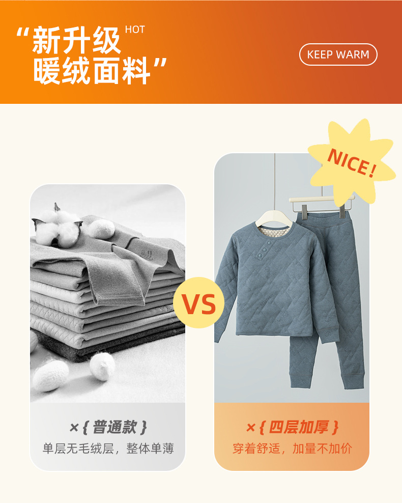 儿童校服神器加绒保暖内衣套装秋冬季圆领加厚款亲肤内衣秋衣秋裤