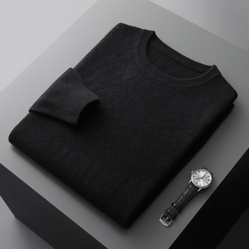 宽松套头打底羊毛衫男纯色针织毛衣秋冬新款一线成衣圆领羊毛衫男