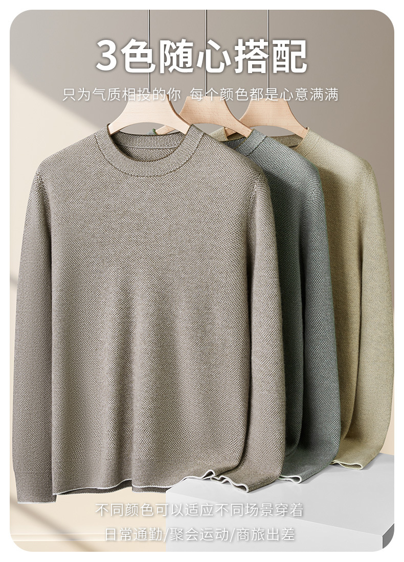 【可机洗抗起球】高品质羊毛衫男士秋冬圆领针织打底衫保暖毛衣男