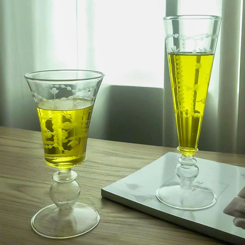 高脚玻璃红酒杯刻花葡萄酒杯香槟杯高硼硅酸奶杯果汁杯耐高温酒杯