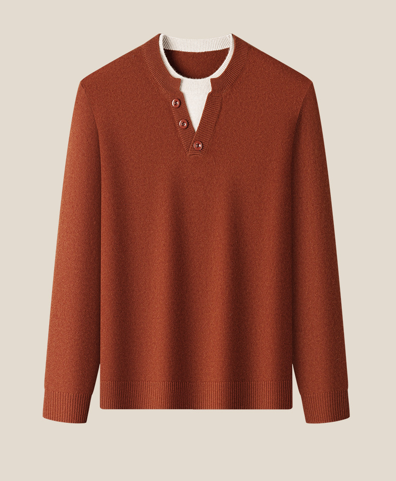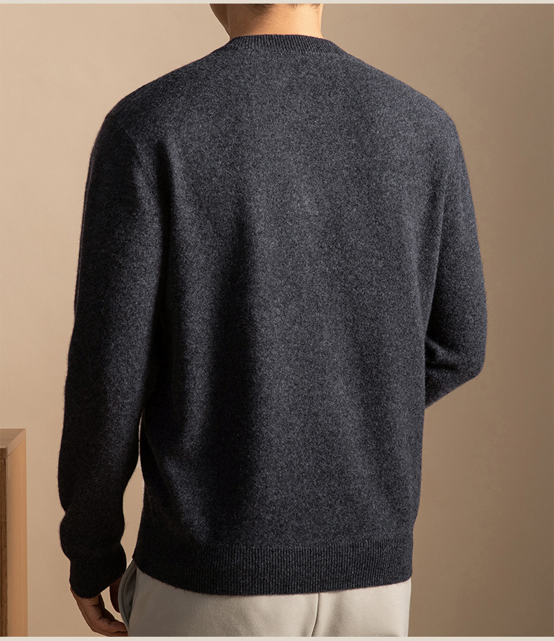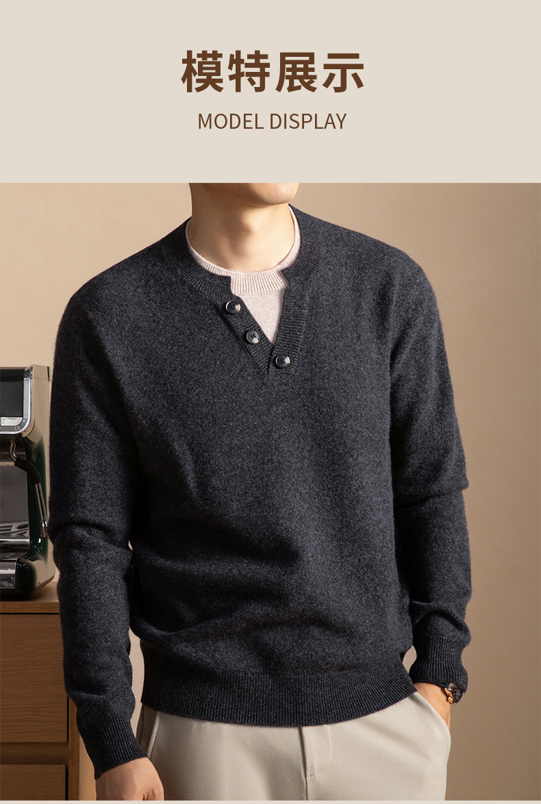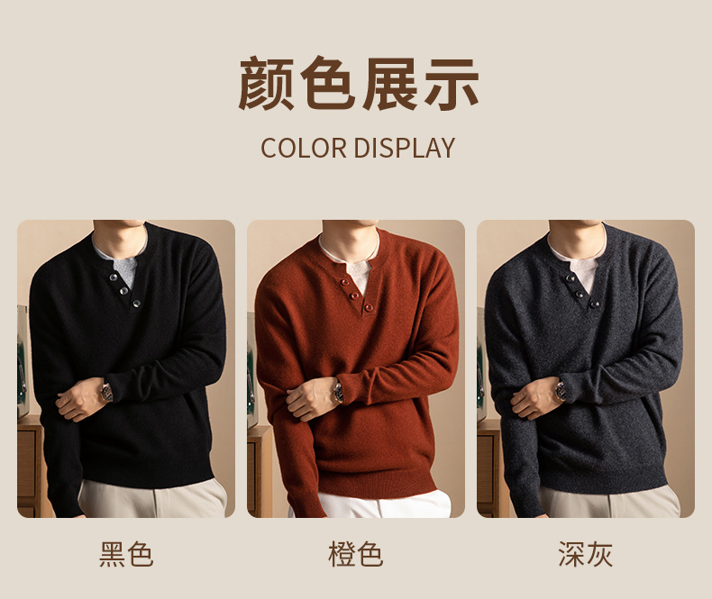 8%山羊绒92绵羊毛秋冬假两件针织衫男圆领撞色软糯手感毛衣打底衫