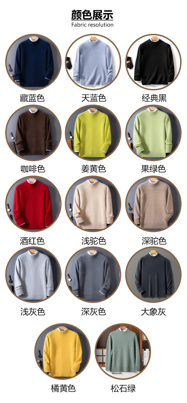 男士羊毛衫秋冬新款内搭加厚打底衫男士毛衣大码宽松高领休闲男装
