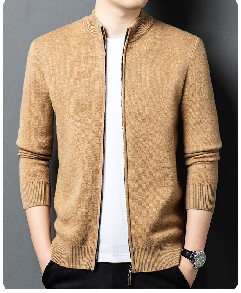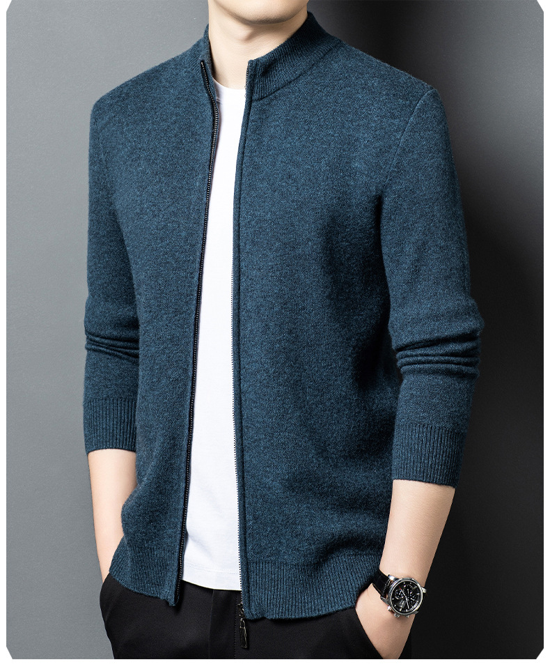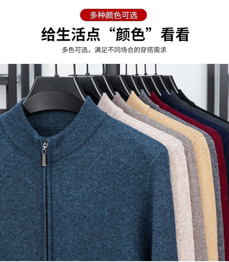 鄂尔多市产男士纯羊毛开衫休闲百搭青中年男装加厚保暖拉链针织衫