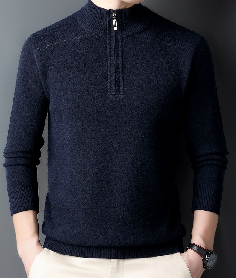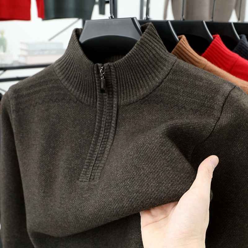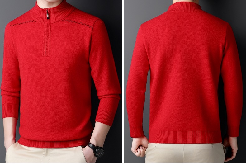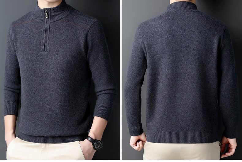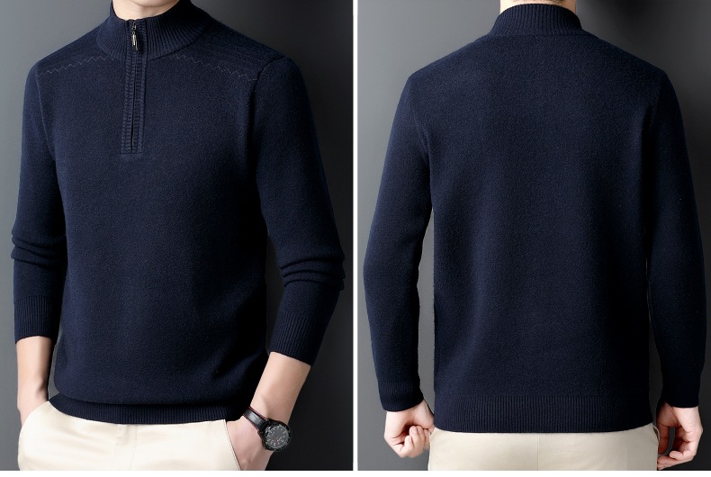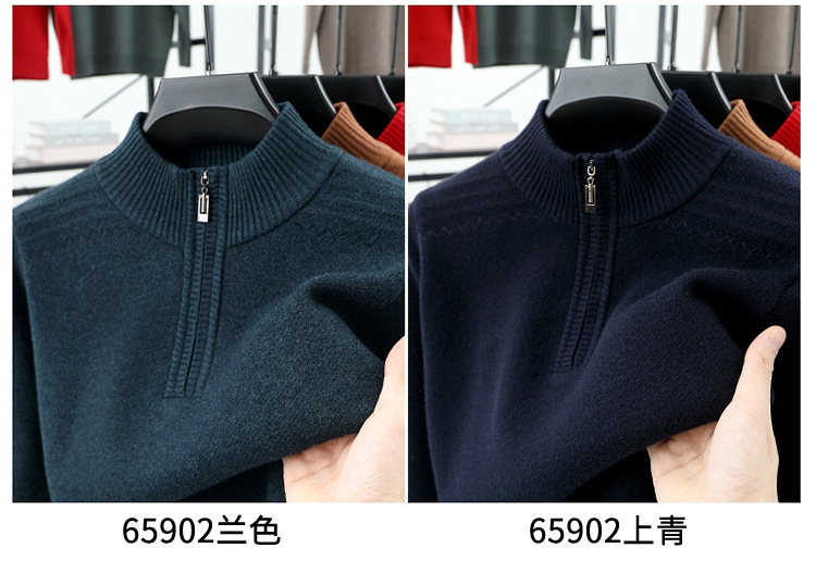 冬季款羊毛衫男半高领2025新款中年爸爸装拉链打底毛衣男大码
