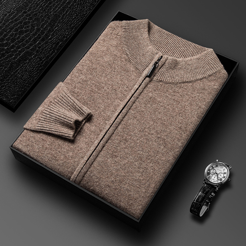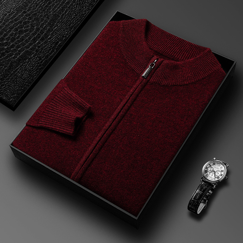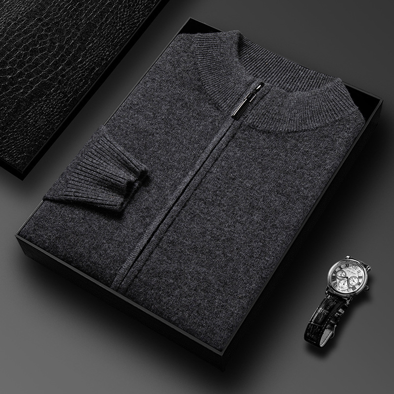 羊毛500克立领开衫男中年秋冬加厚羊毛衫拉链针织百搭毛衣
