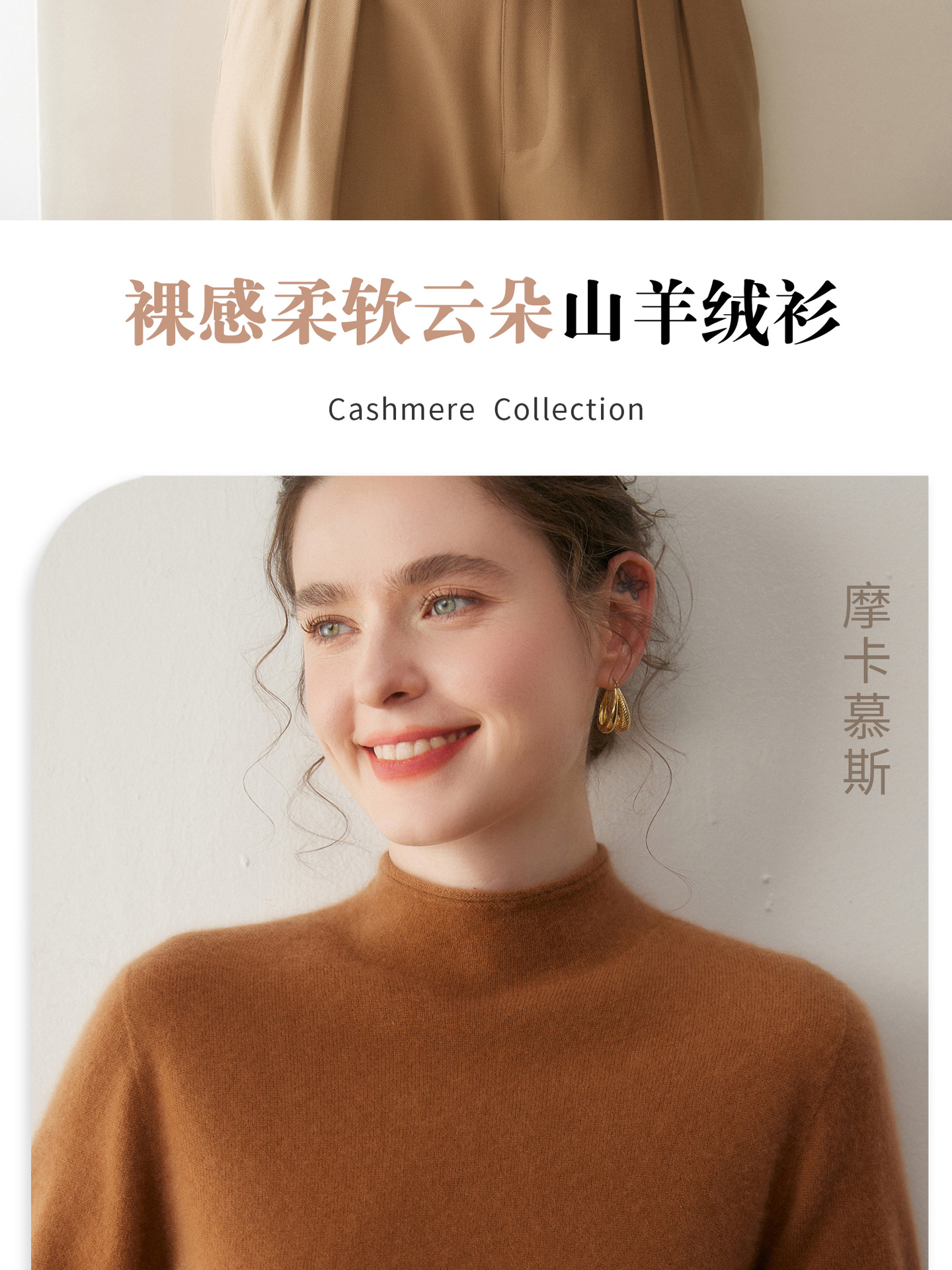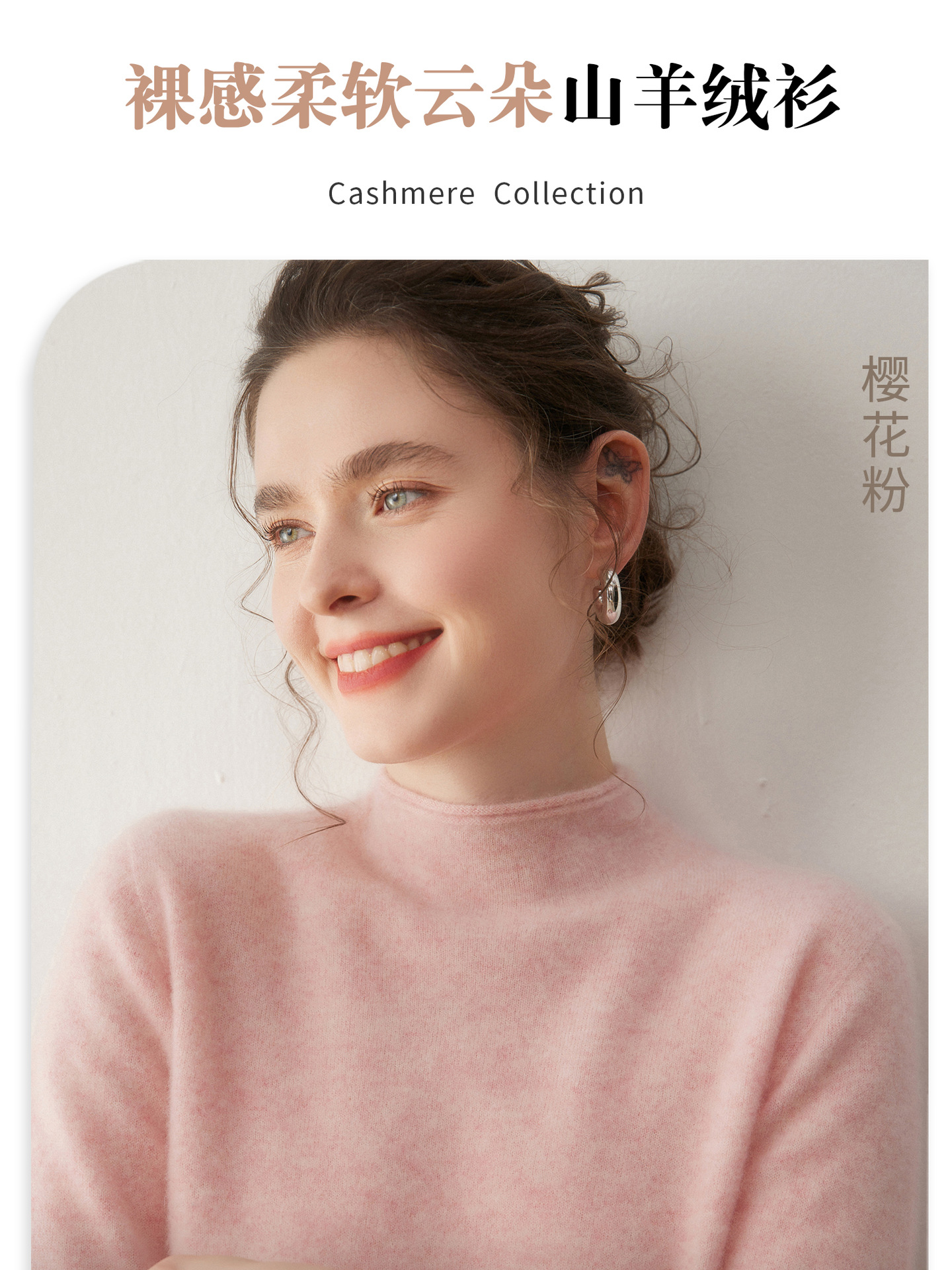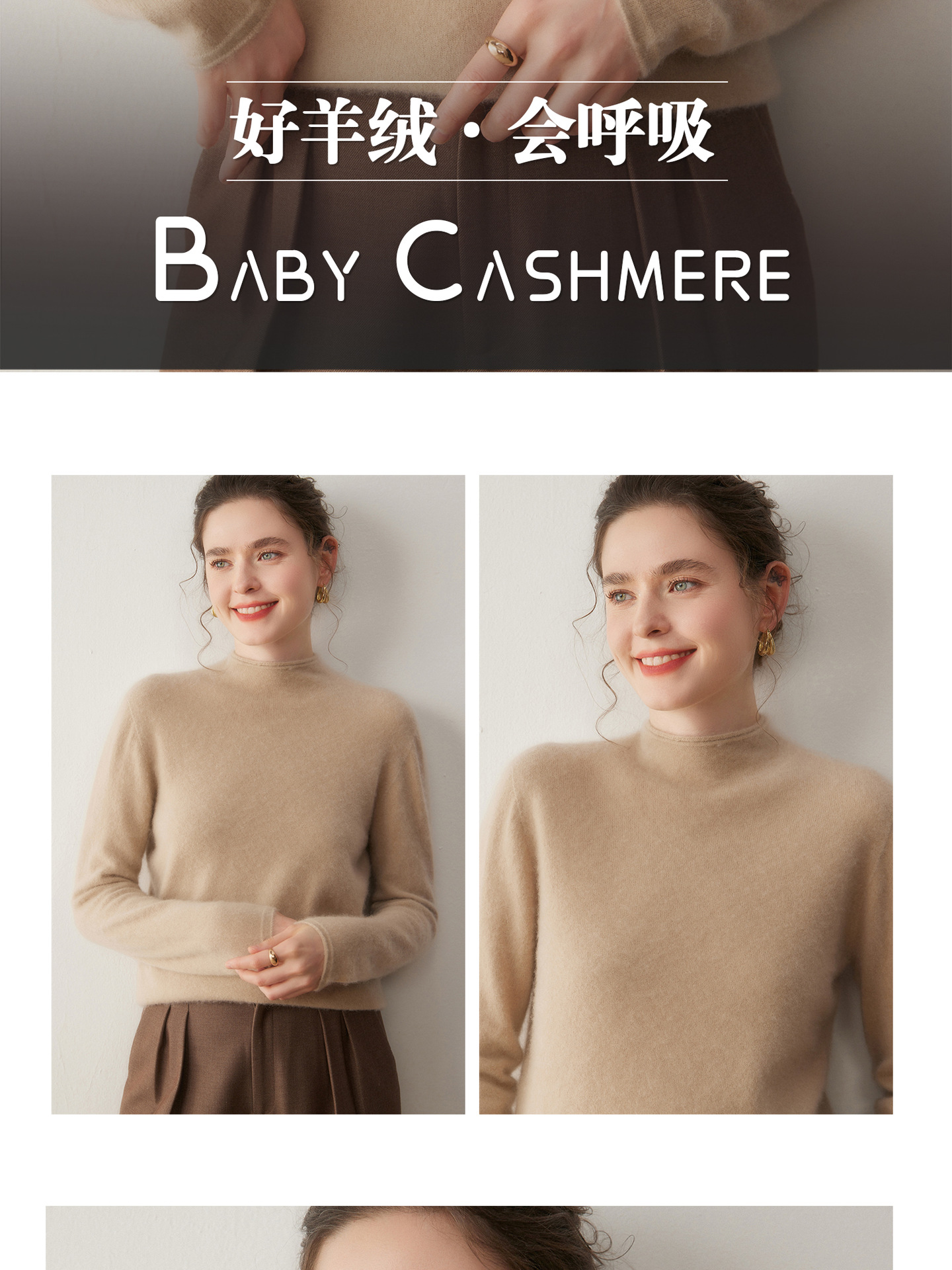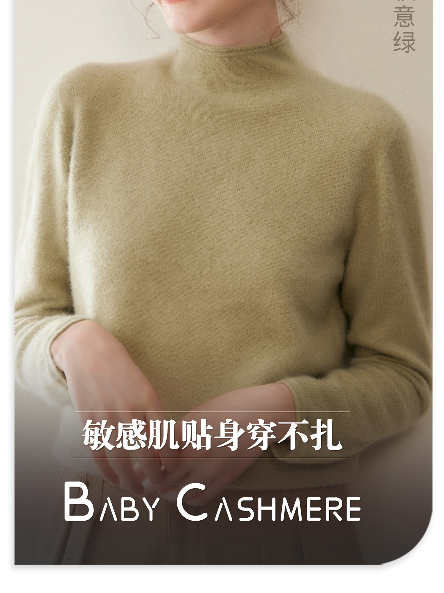 一线成衣山羊绒衫女秋冬半高卷边领长袖套头针织羊毛打底无缝毛衣
