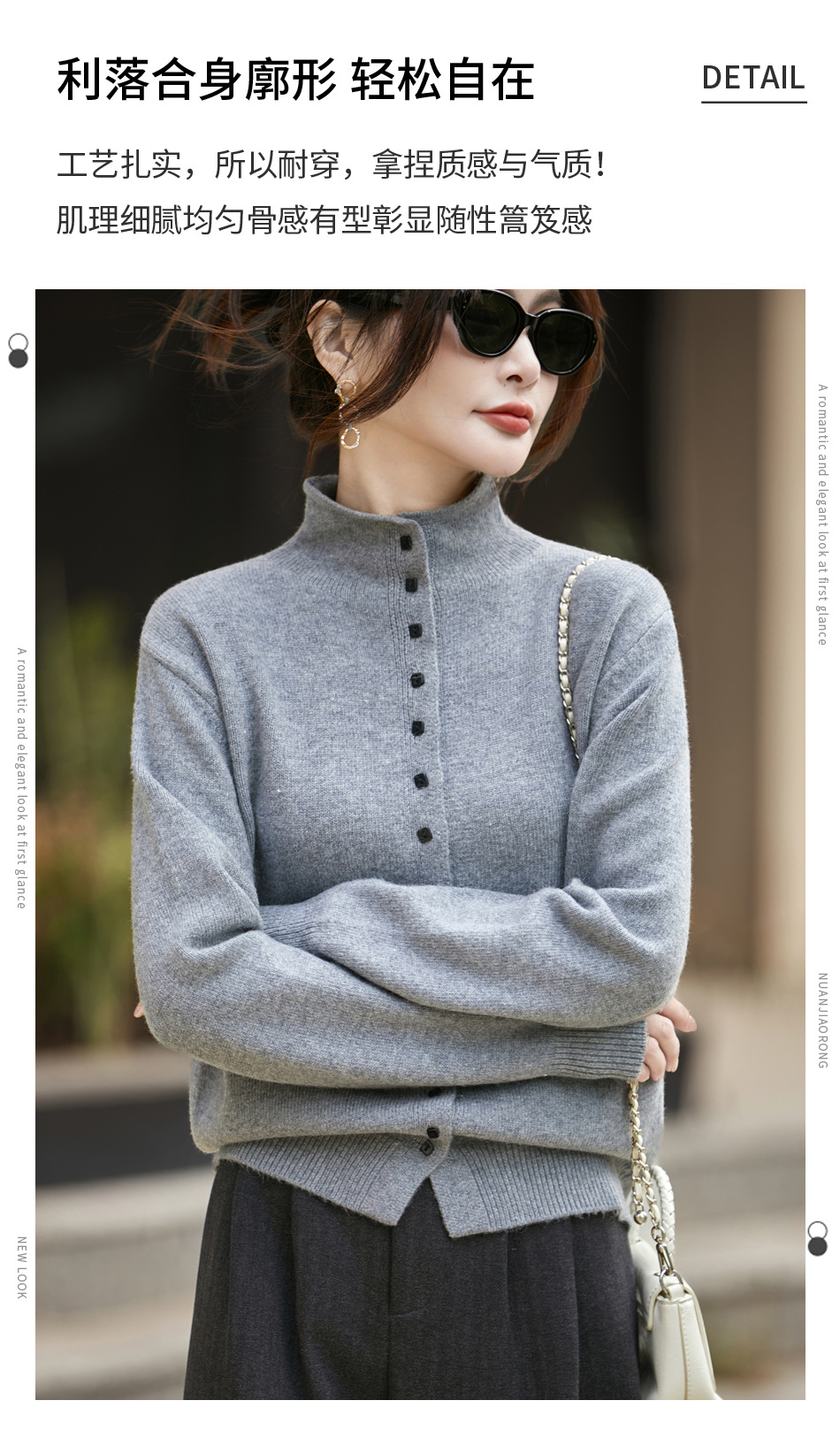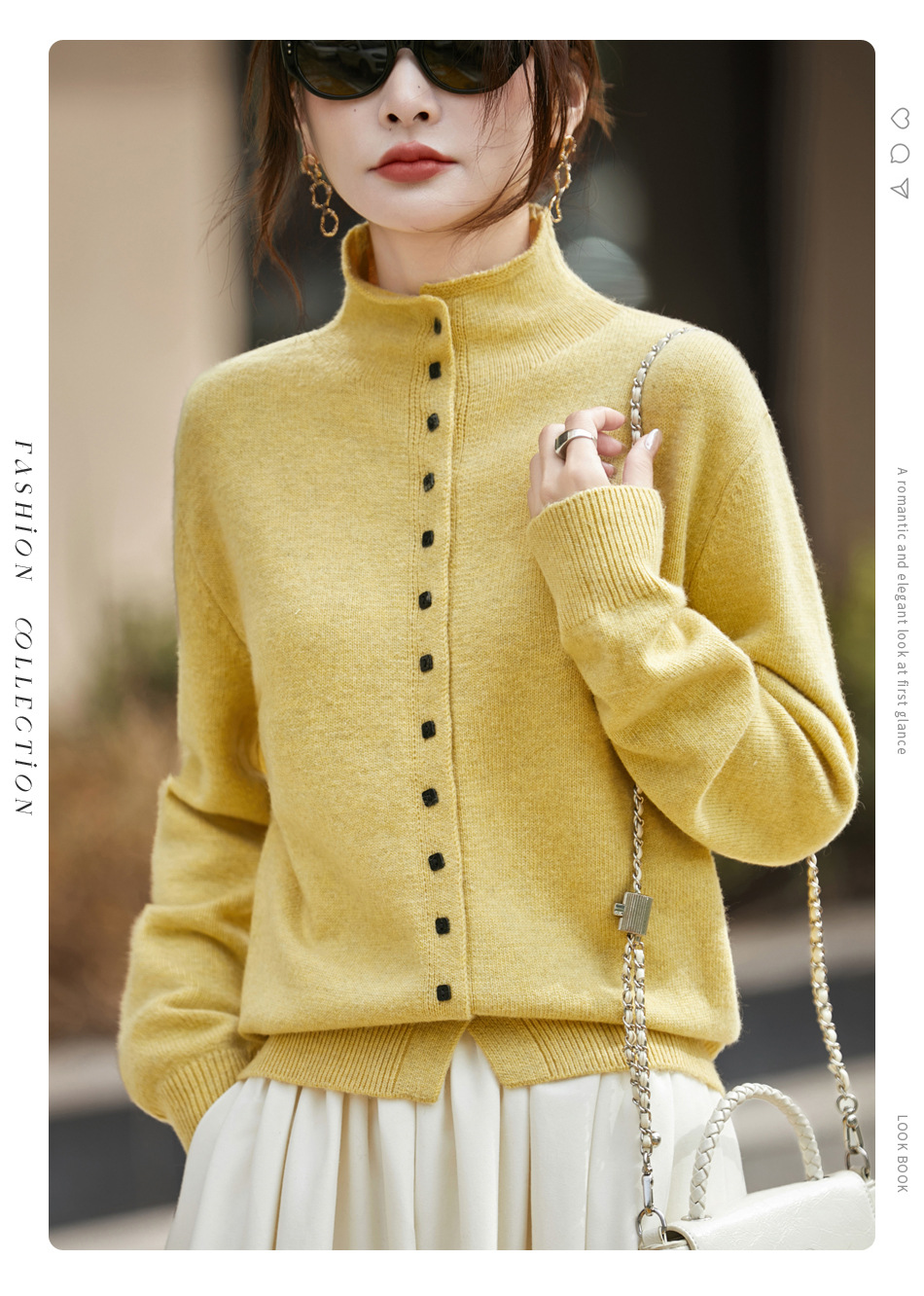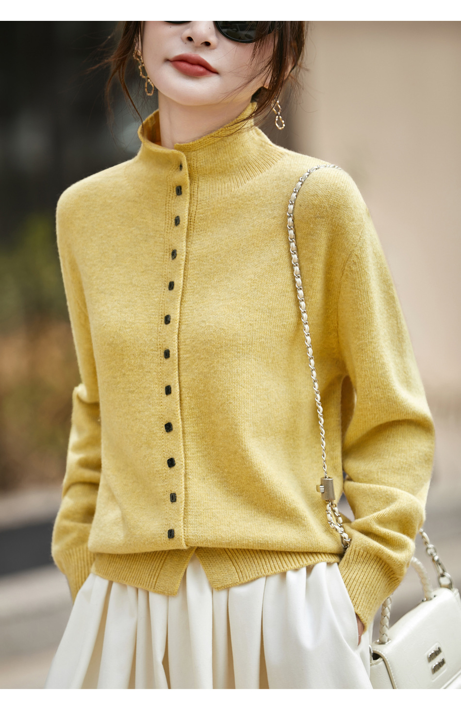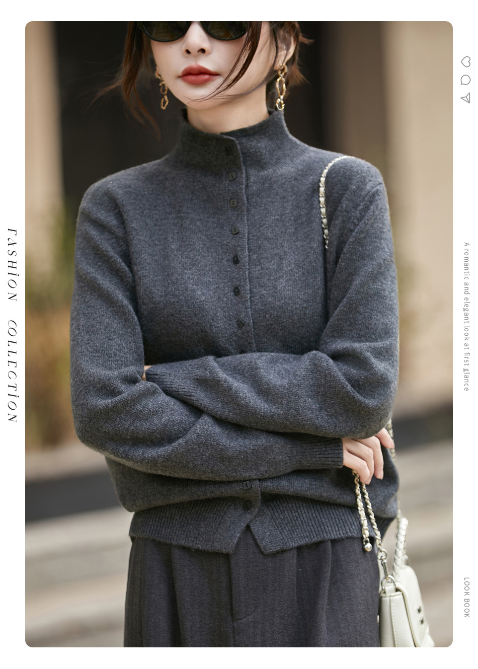 羊毛混纺2025秋冬新款温柔风高领单排扣纯色针织开衫女上衣现货