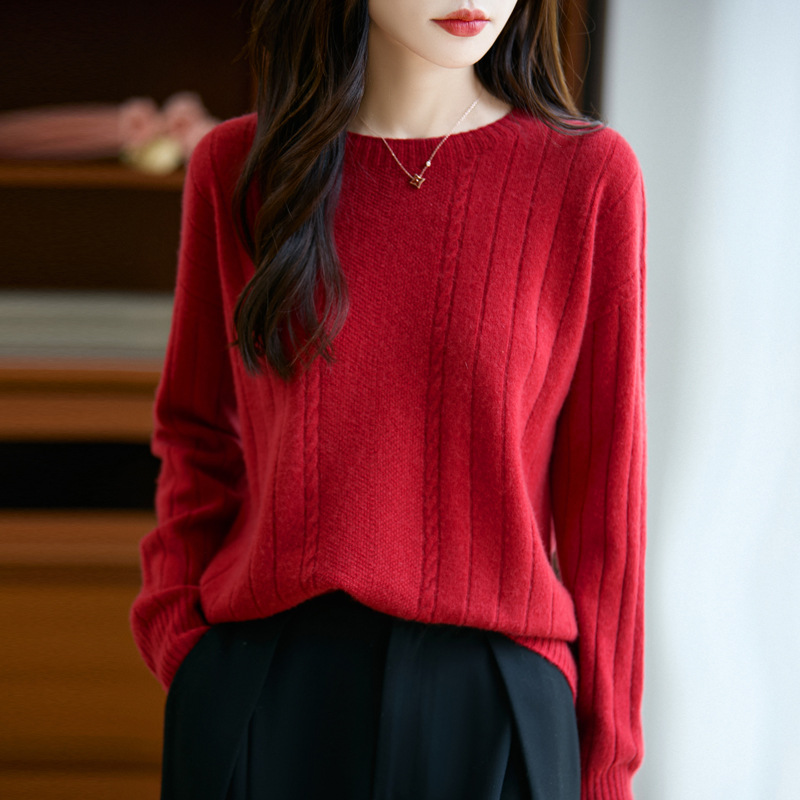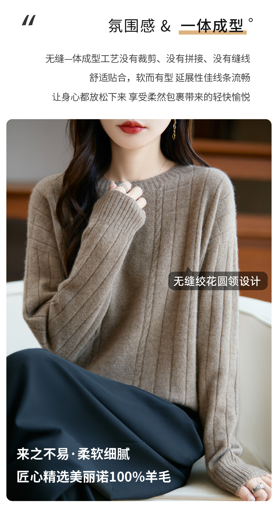 温柔法式毛衣100纯羊毛针织衫女2025新款秋冬圆领女装打底衫上衣