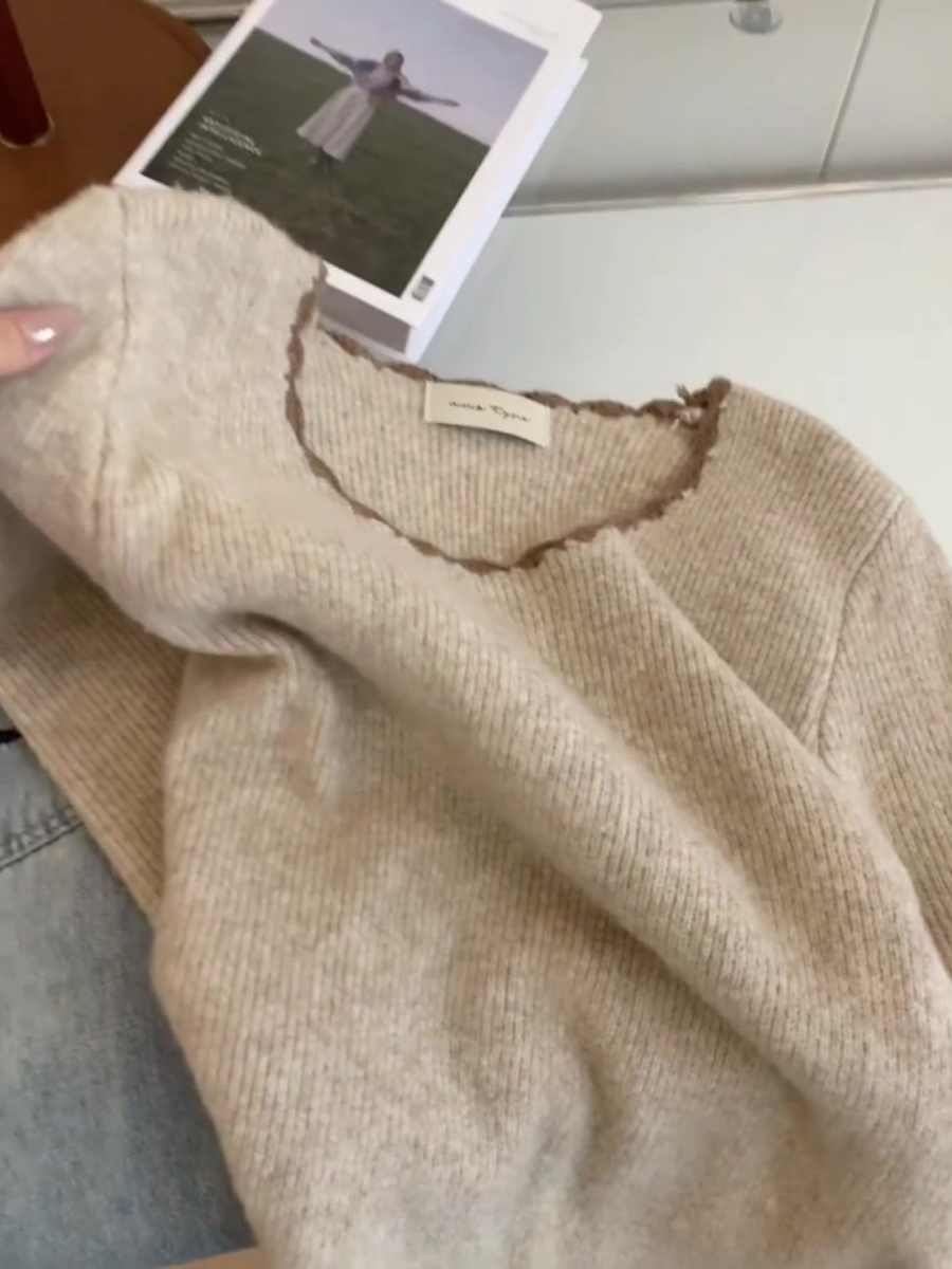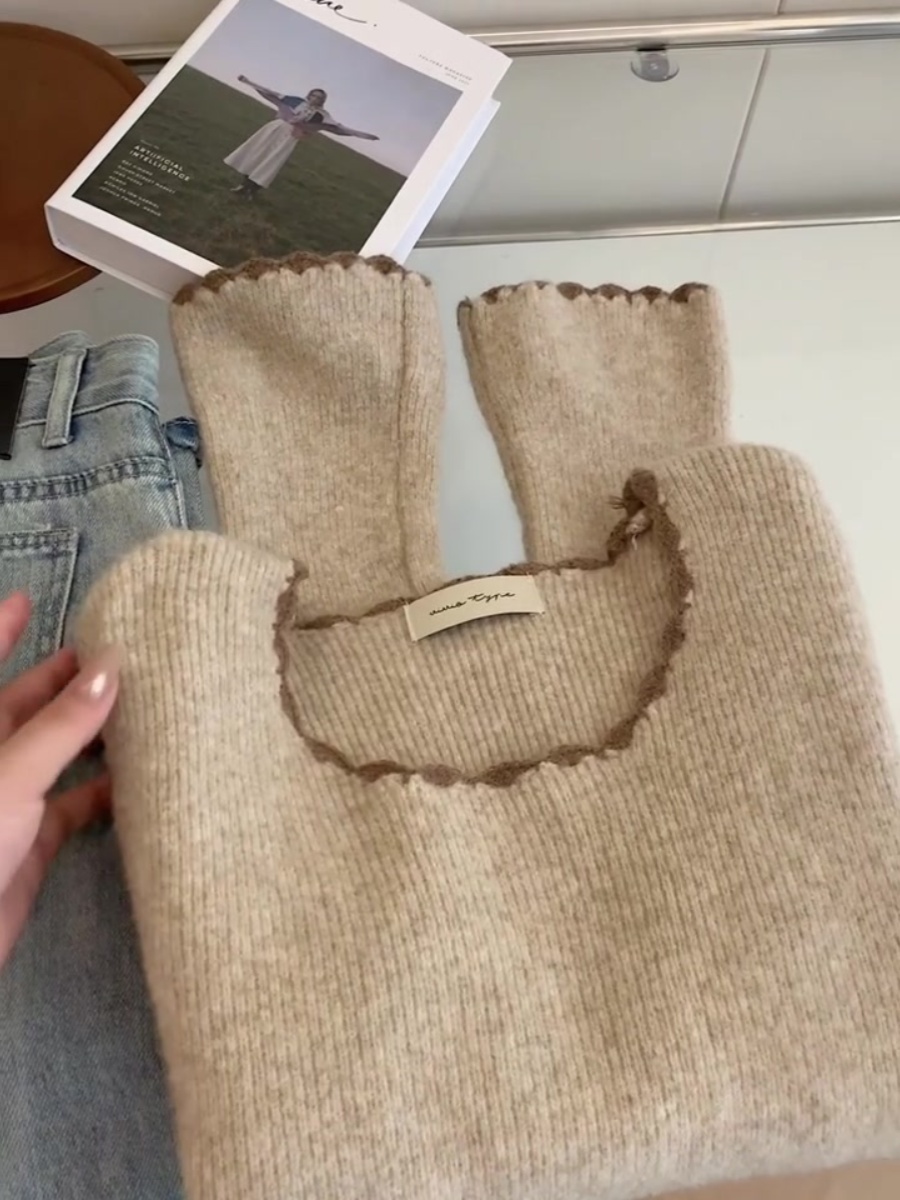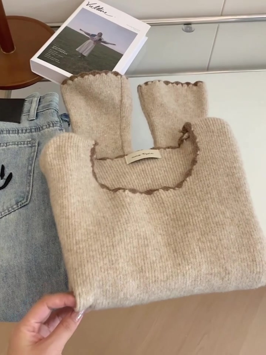 燕麦色喇叭袖羊绒内搭打底衫毛衣女早秋秋冬季修身羊毛针织衫上衣