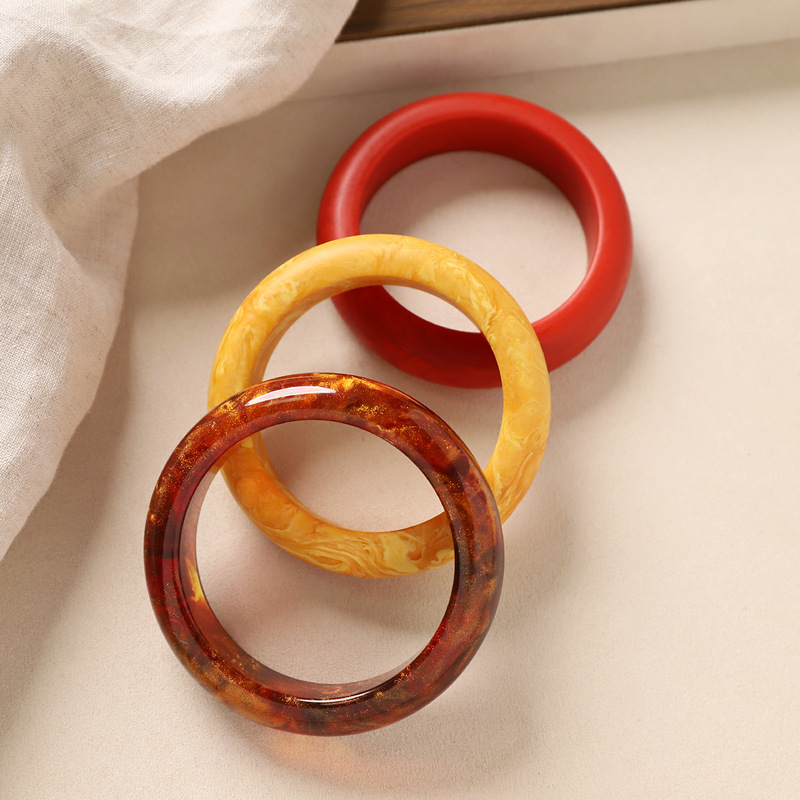 新中式简约气质琥珀蜜蜡手镯老蜡白花精致手环国风复古镯子配饰女