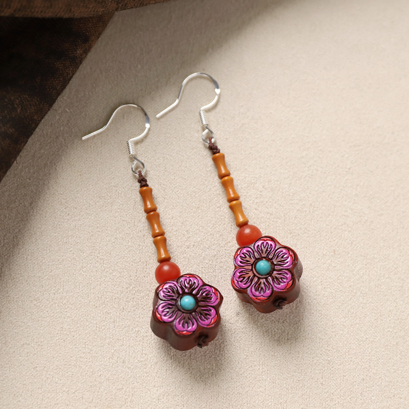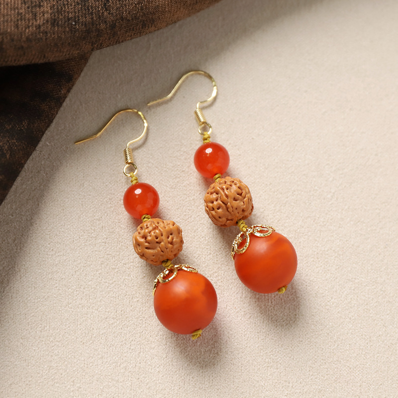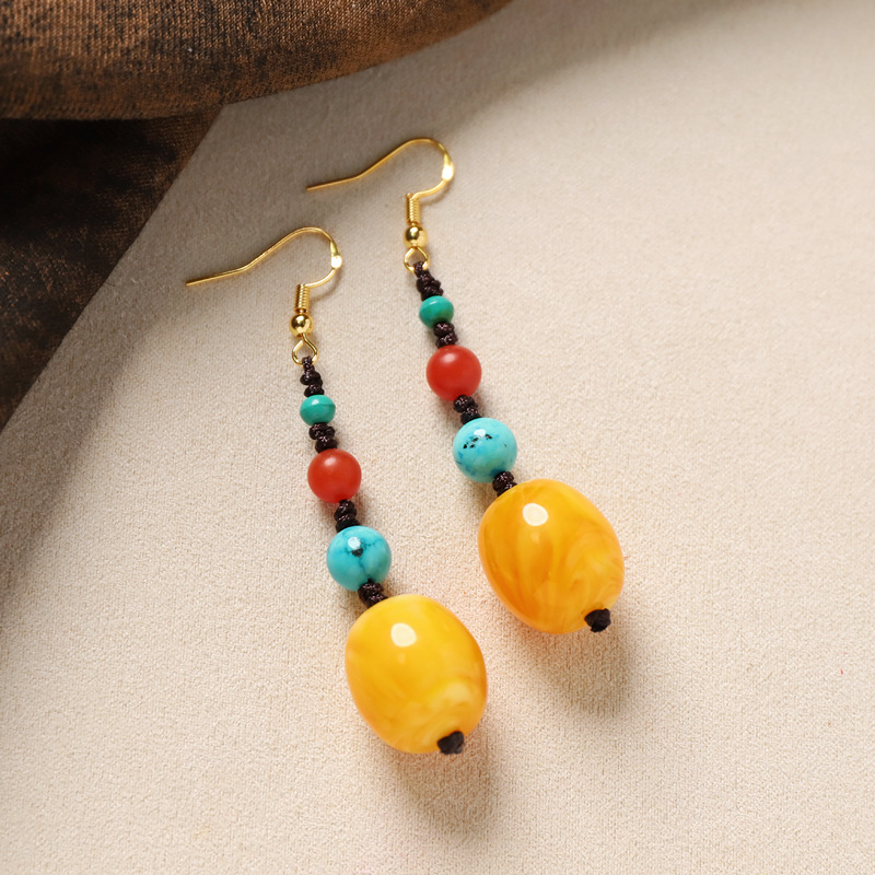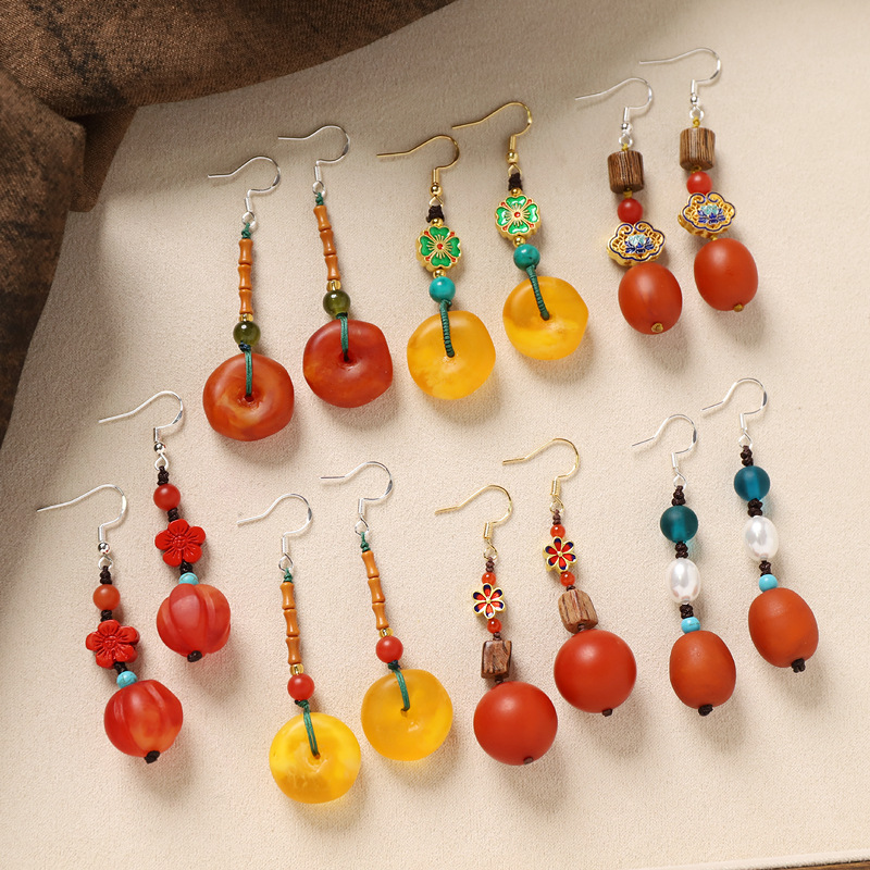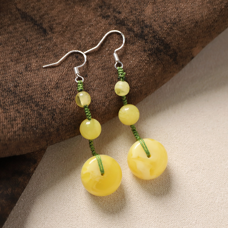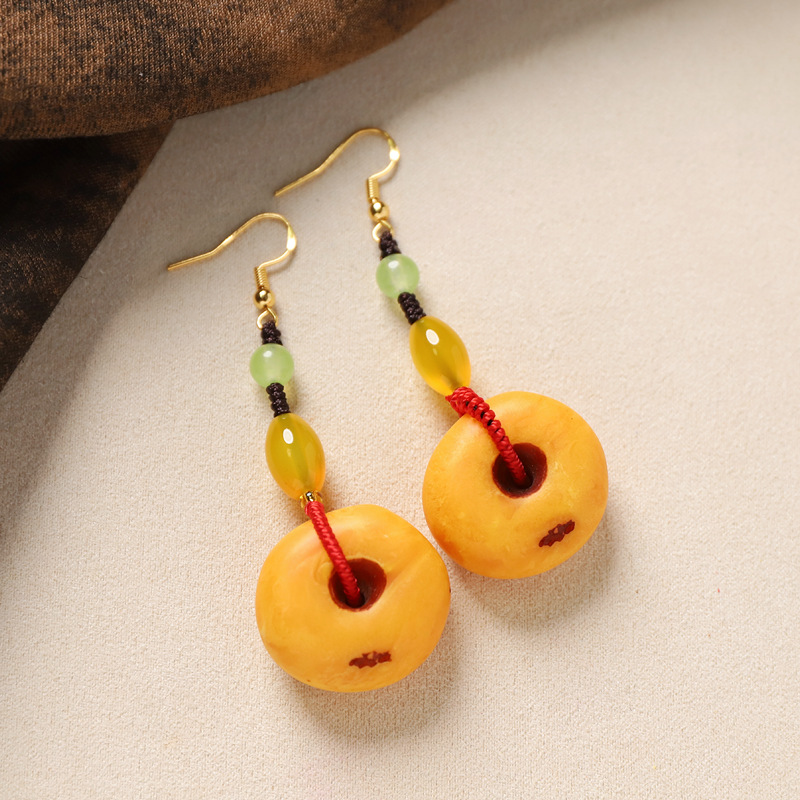 新中式文艺复古蜜蜡耳环手工圆形琥珀耳坠小众高级感民族风耳饰女