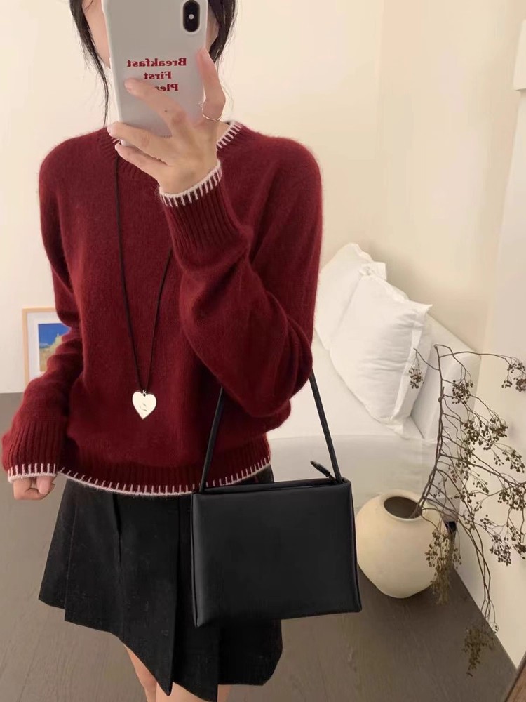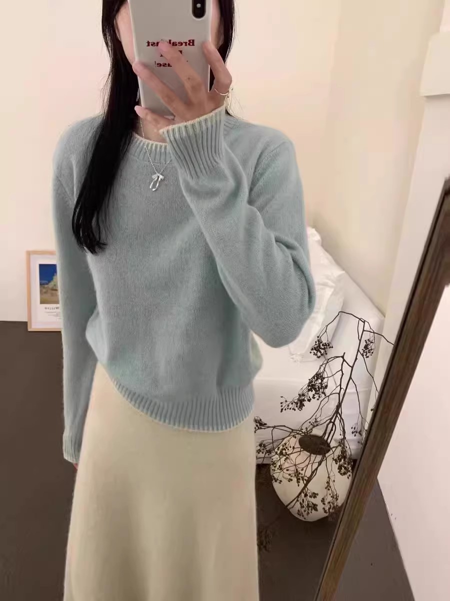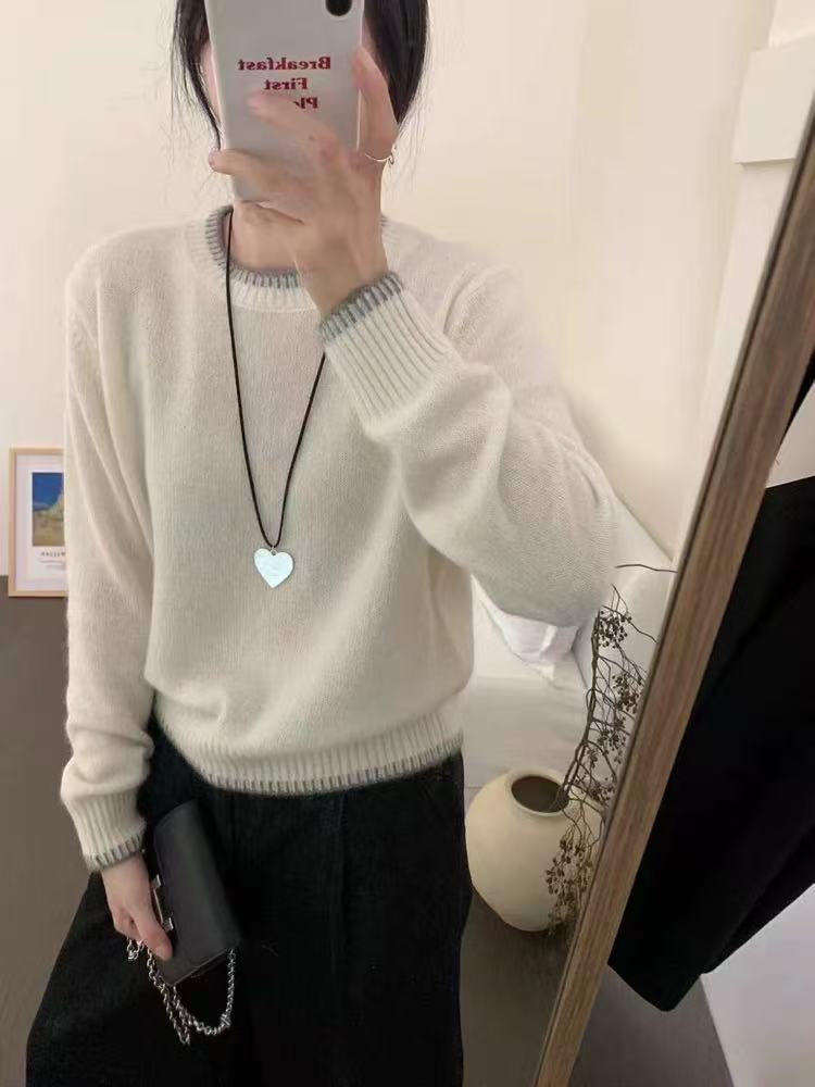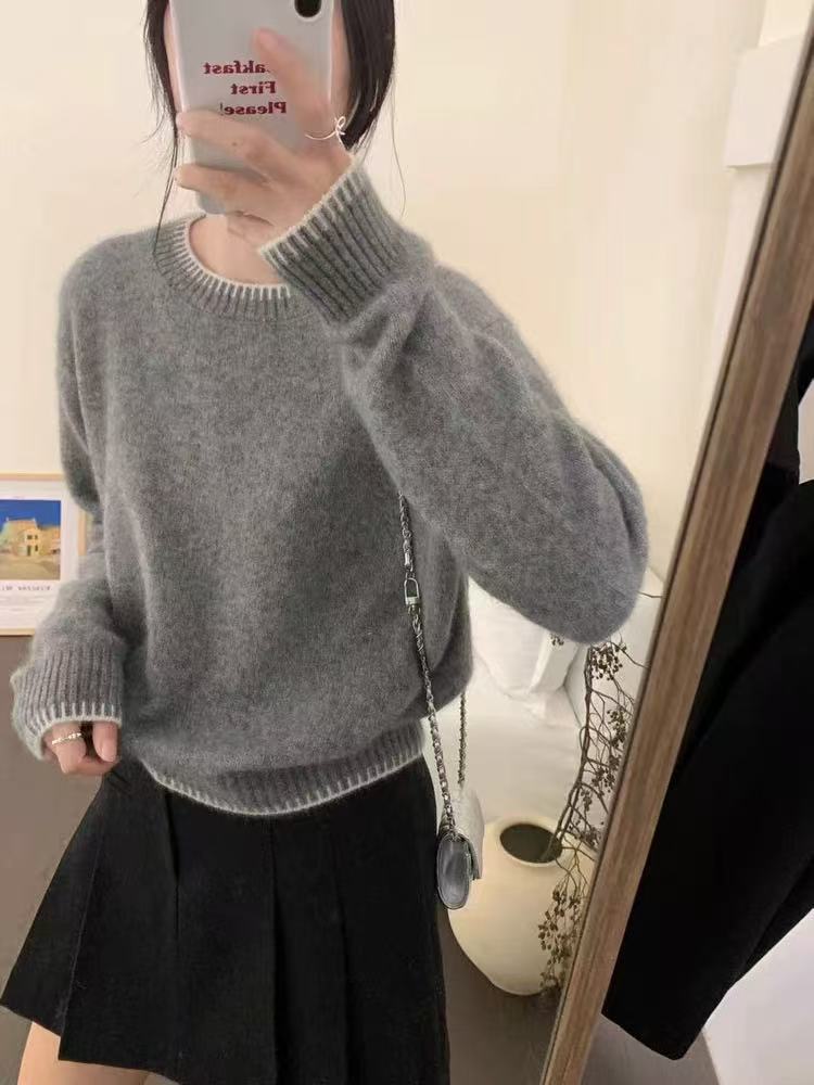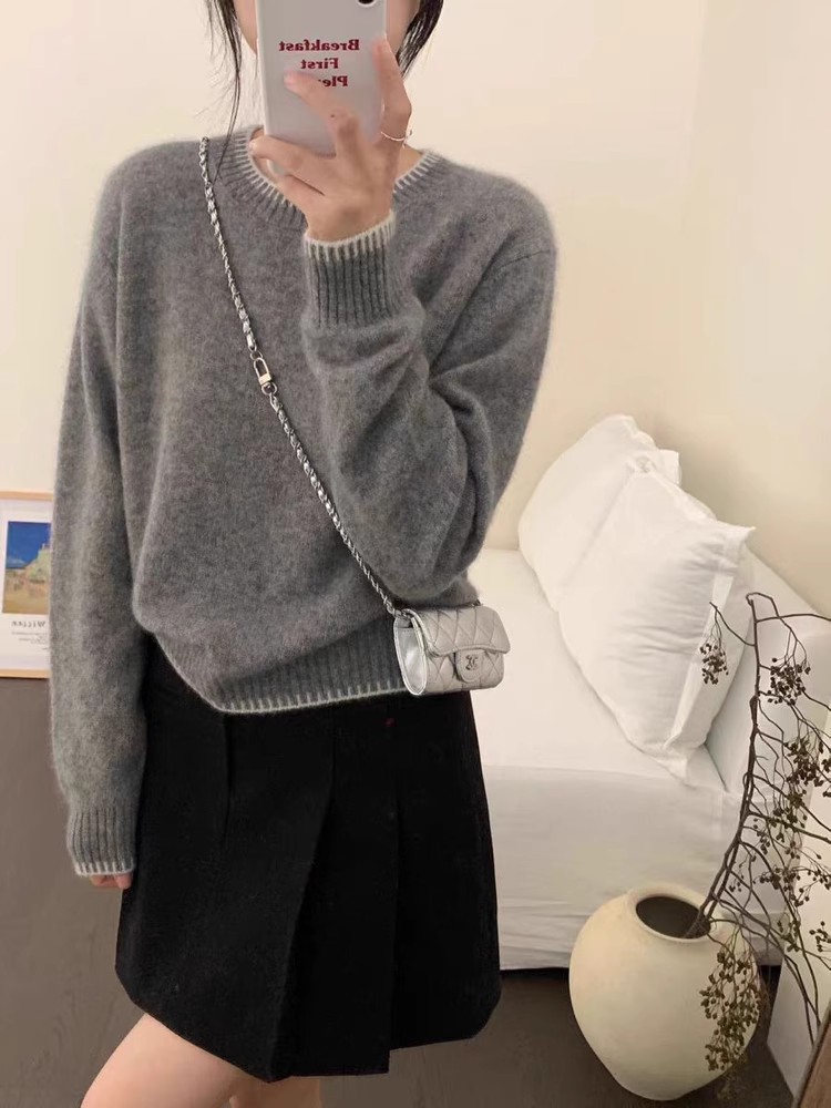 100%美丽诺羊毛衫女圆领灰色毛衣25秋冬新款欧货羊绒高端针织打底
