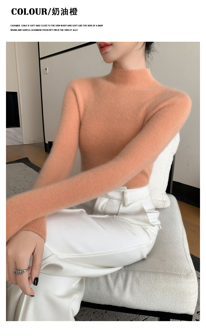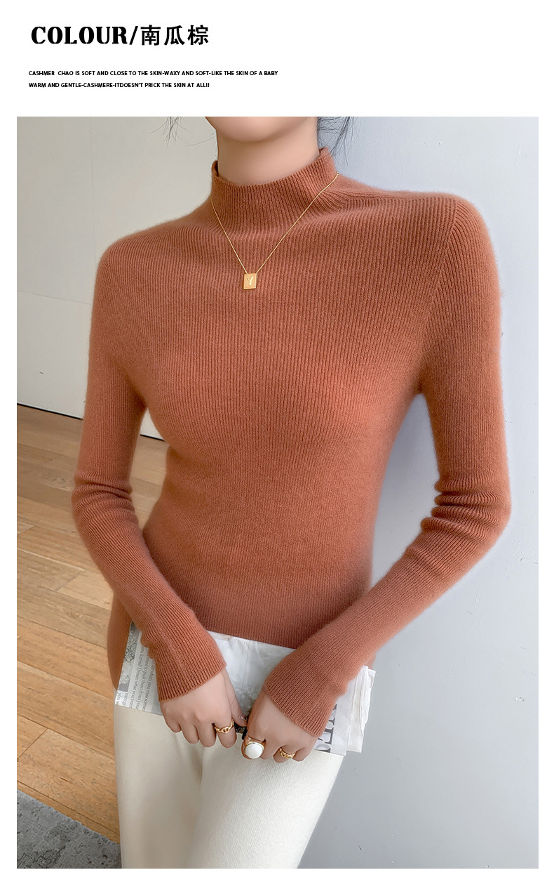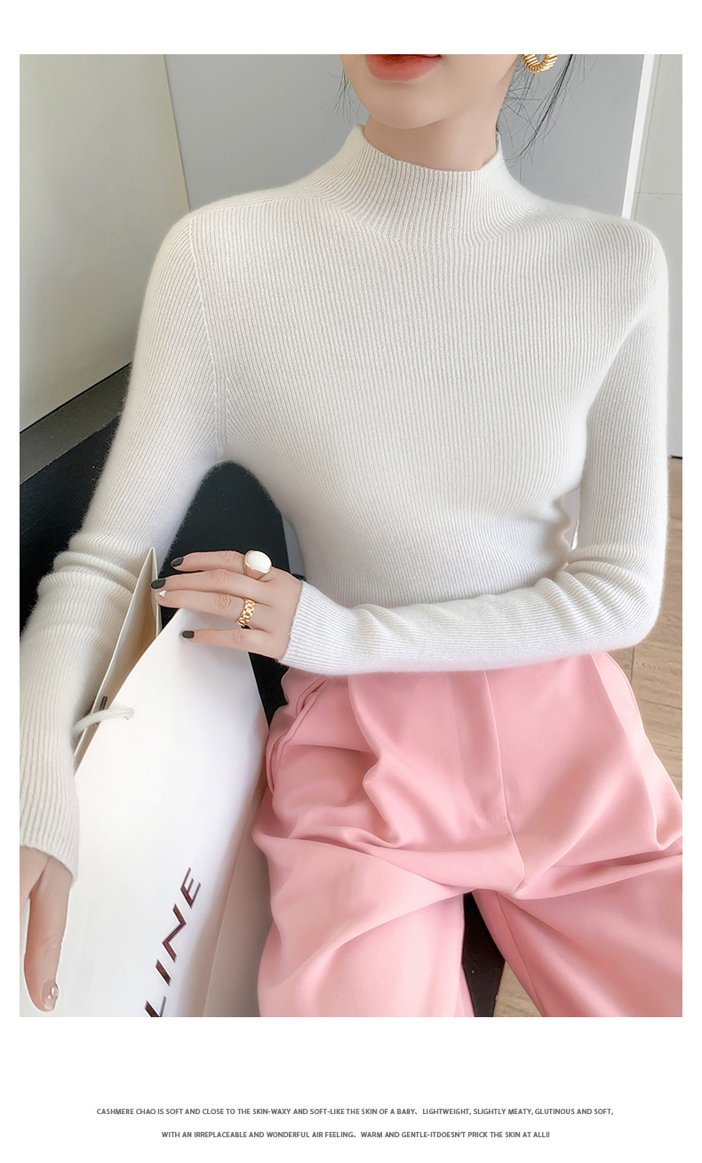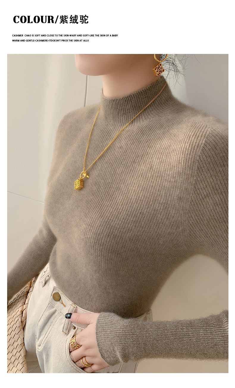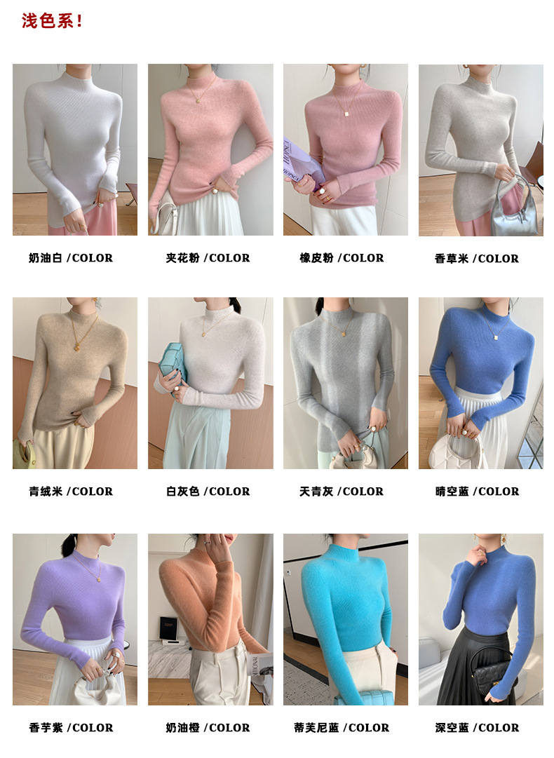 一线成衣半高领羊绒衫女100%纯山羊绒修身显瘦薄款针织衫打底毛衣