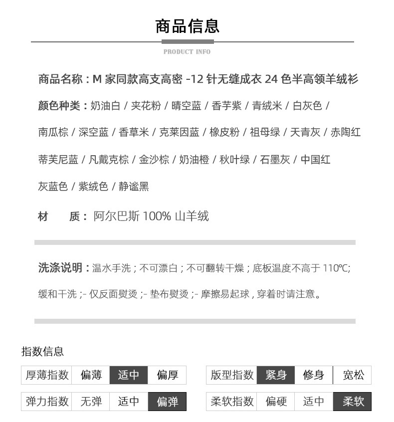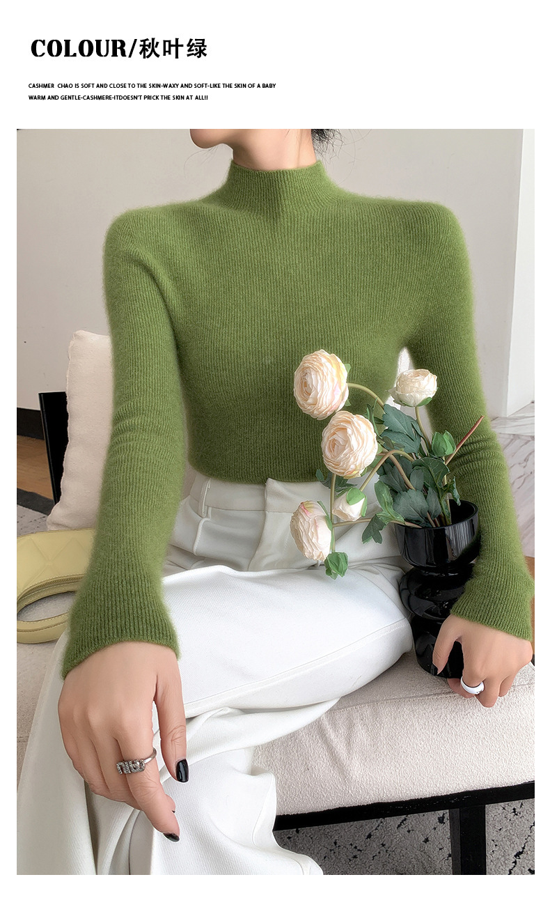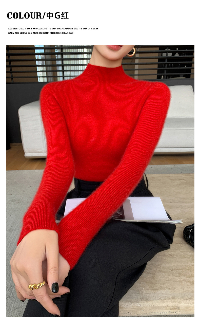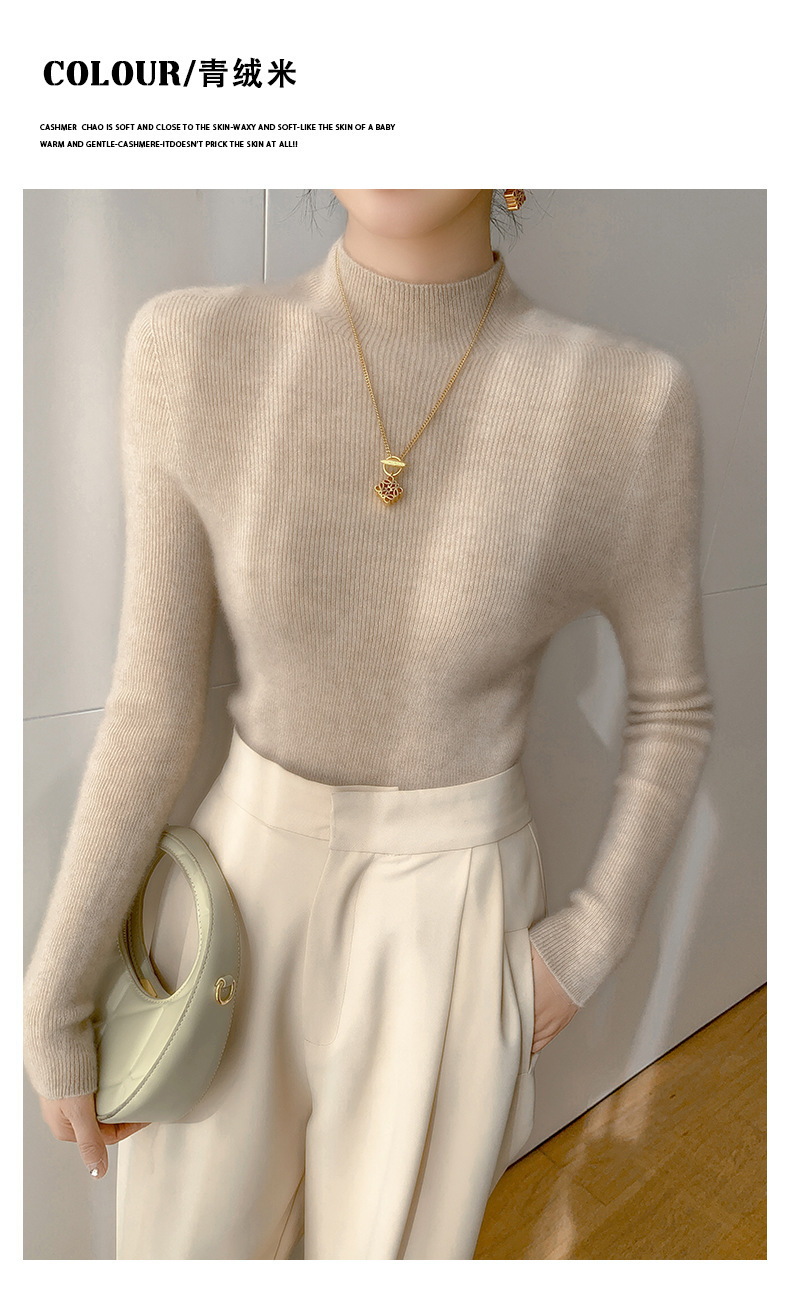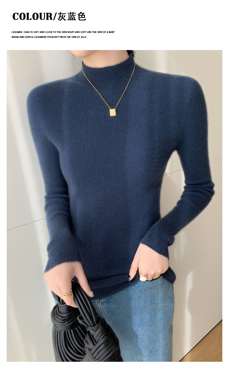 一线成衣半高领羊绒衫女100%纯山羊绒修身显瘦薄款针织衫打底毛衣