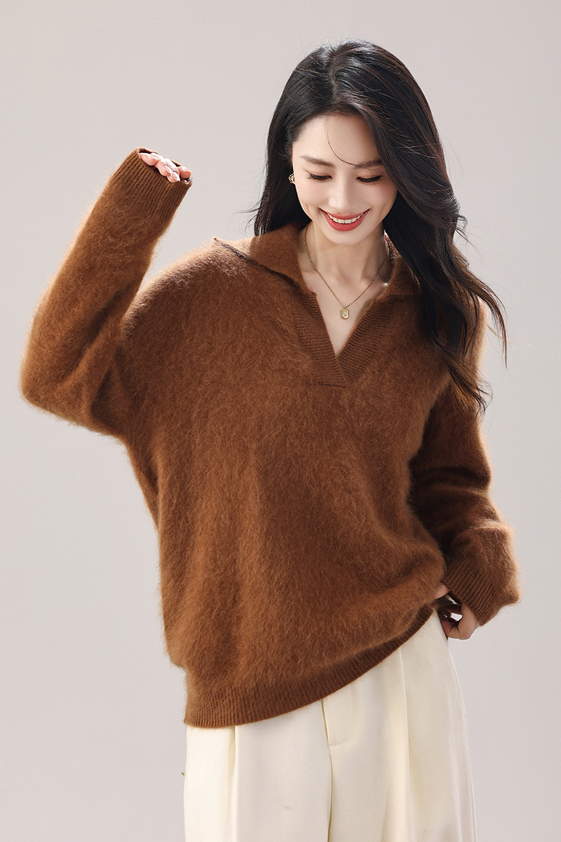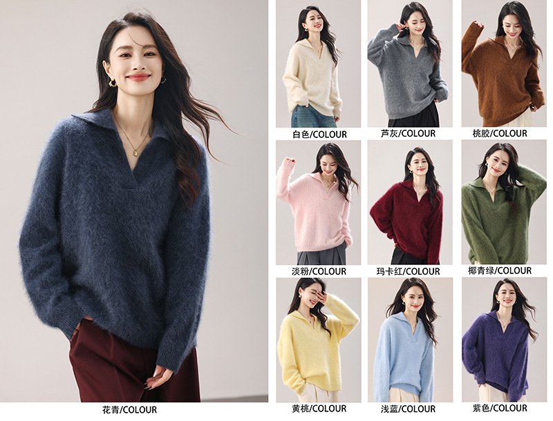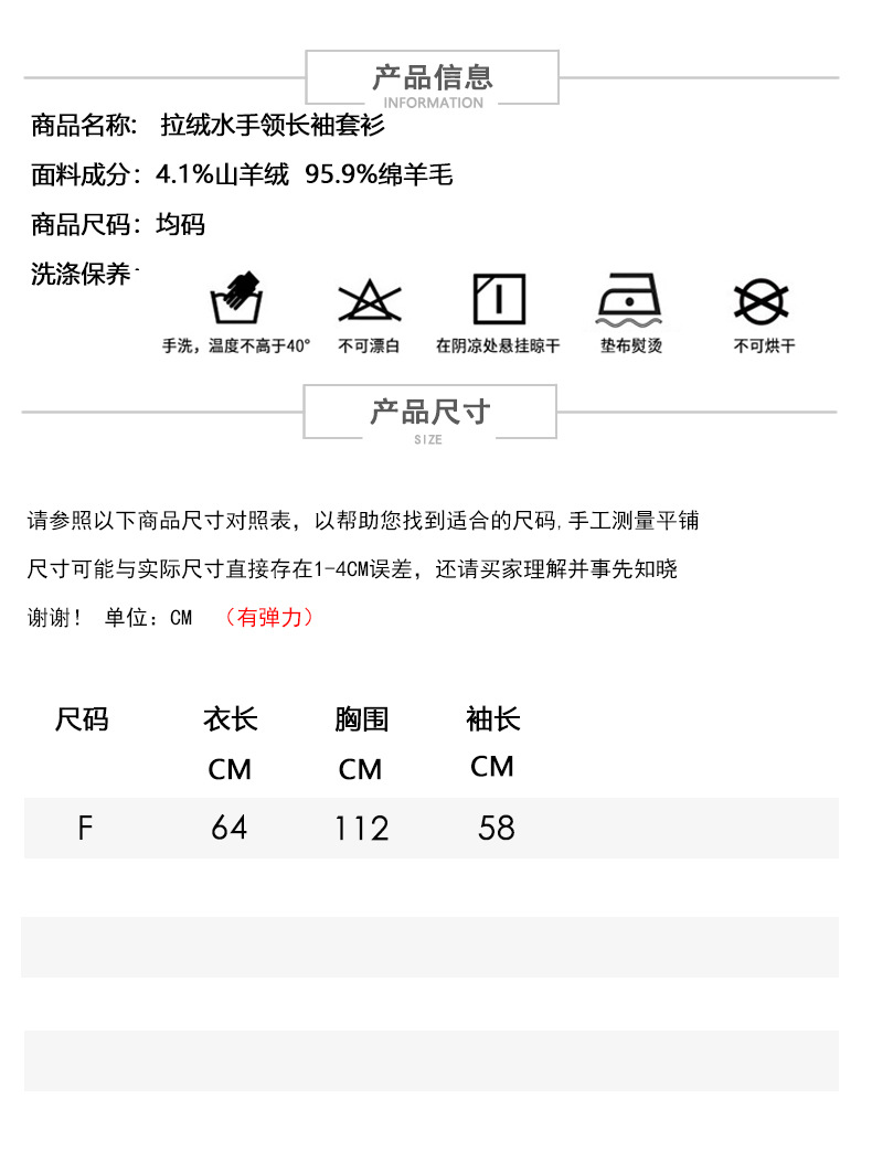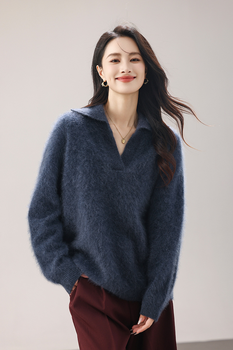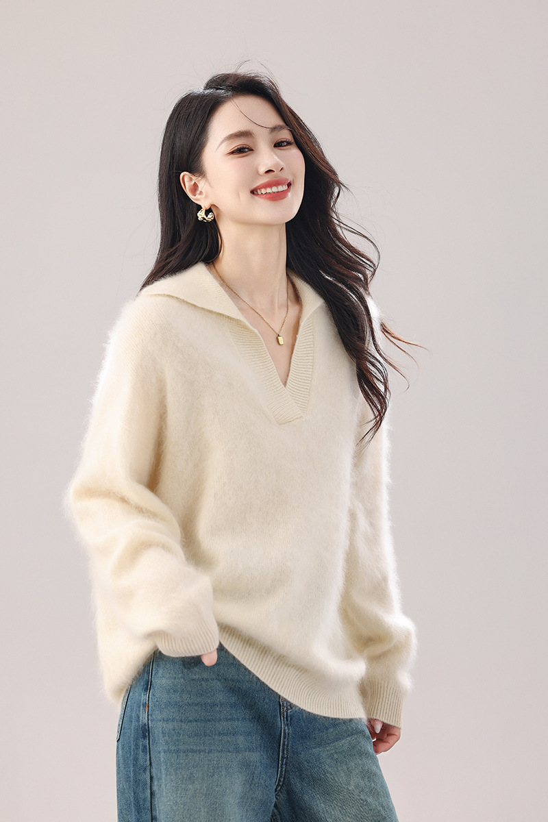 【奢柔云朵】重磅拉绒4.1%山羊绒羊毛水手领针织衫女秋冬套头毛衣