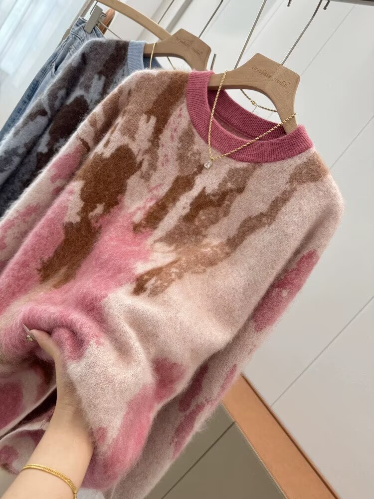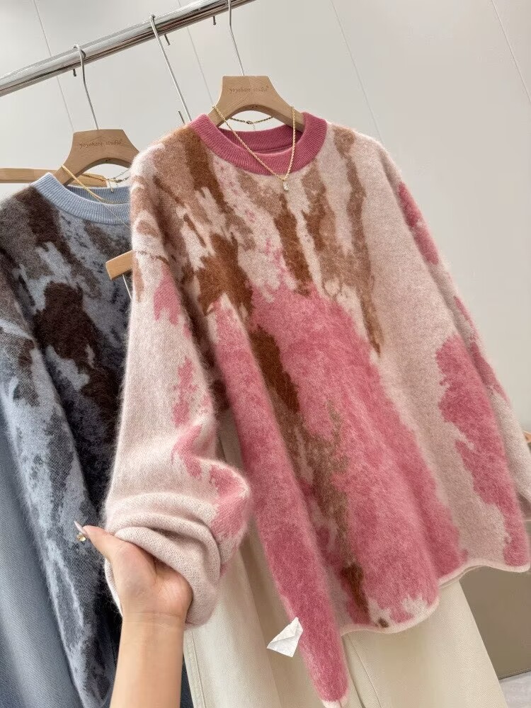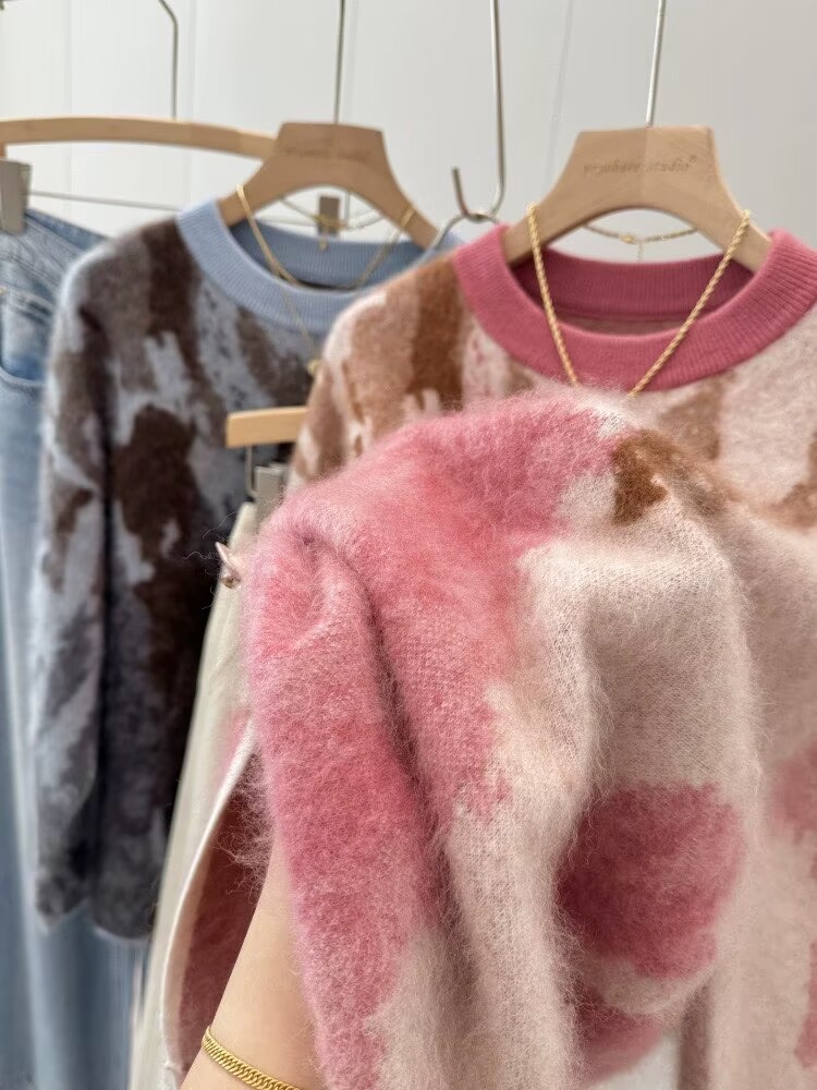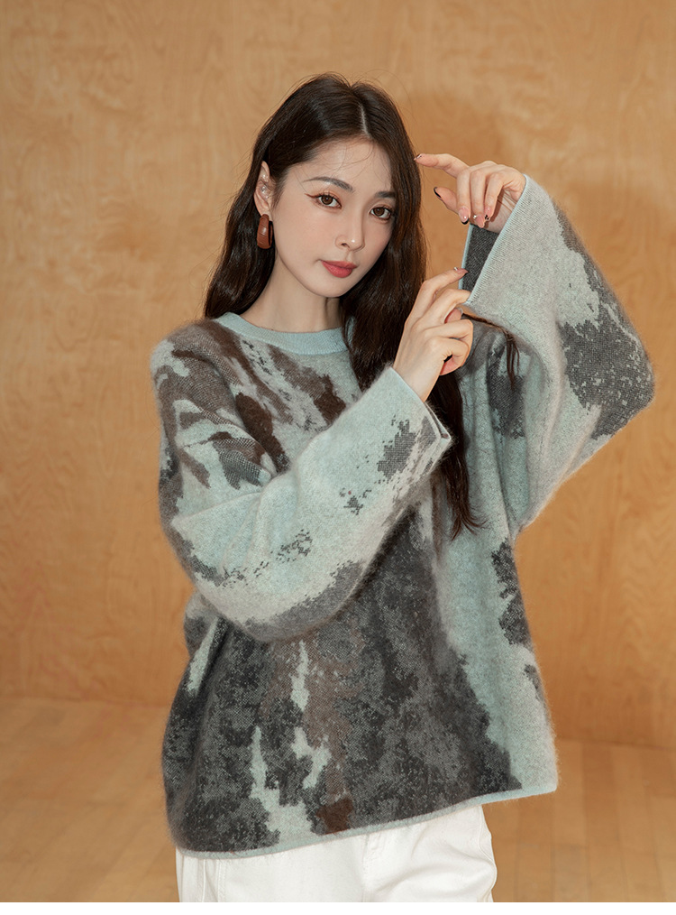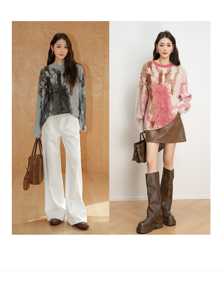 山羊绒拉绒提花羊毛拉毛毛衣 加厚套头羊绒针织衫女25秋冬G092710