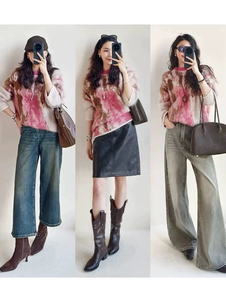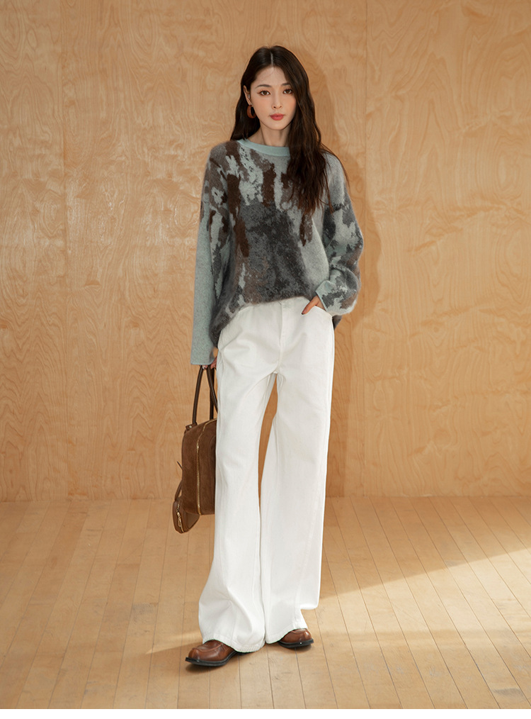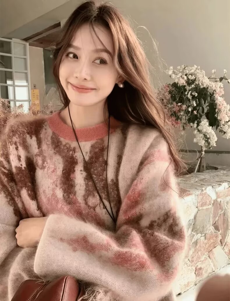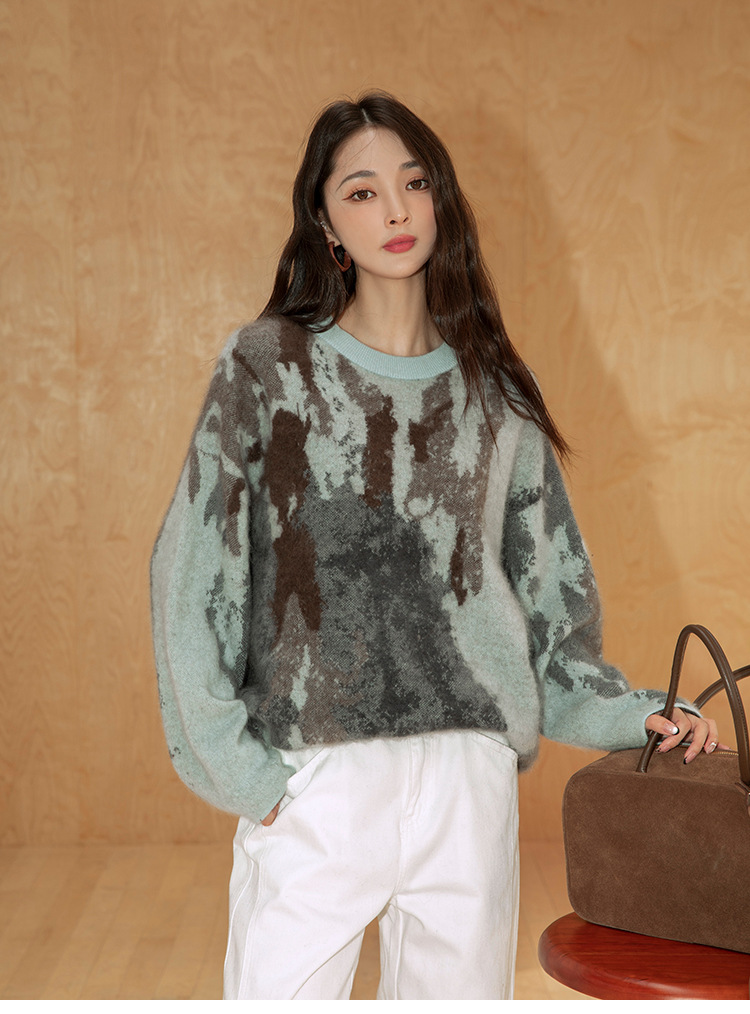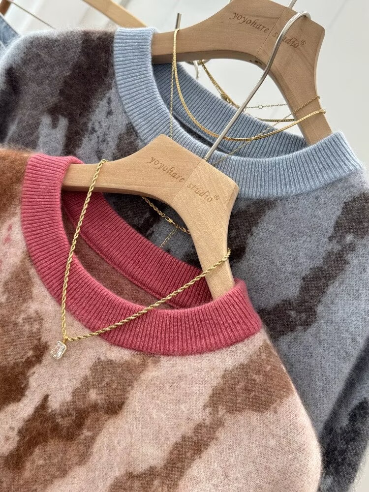 山羊绒拉绒提花羊毛拉毛毛衣 加厚套头羊绒针织衫女25秋冬G092710