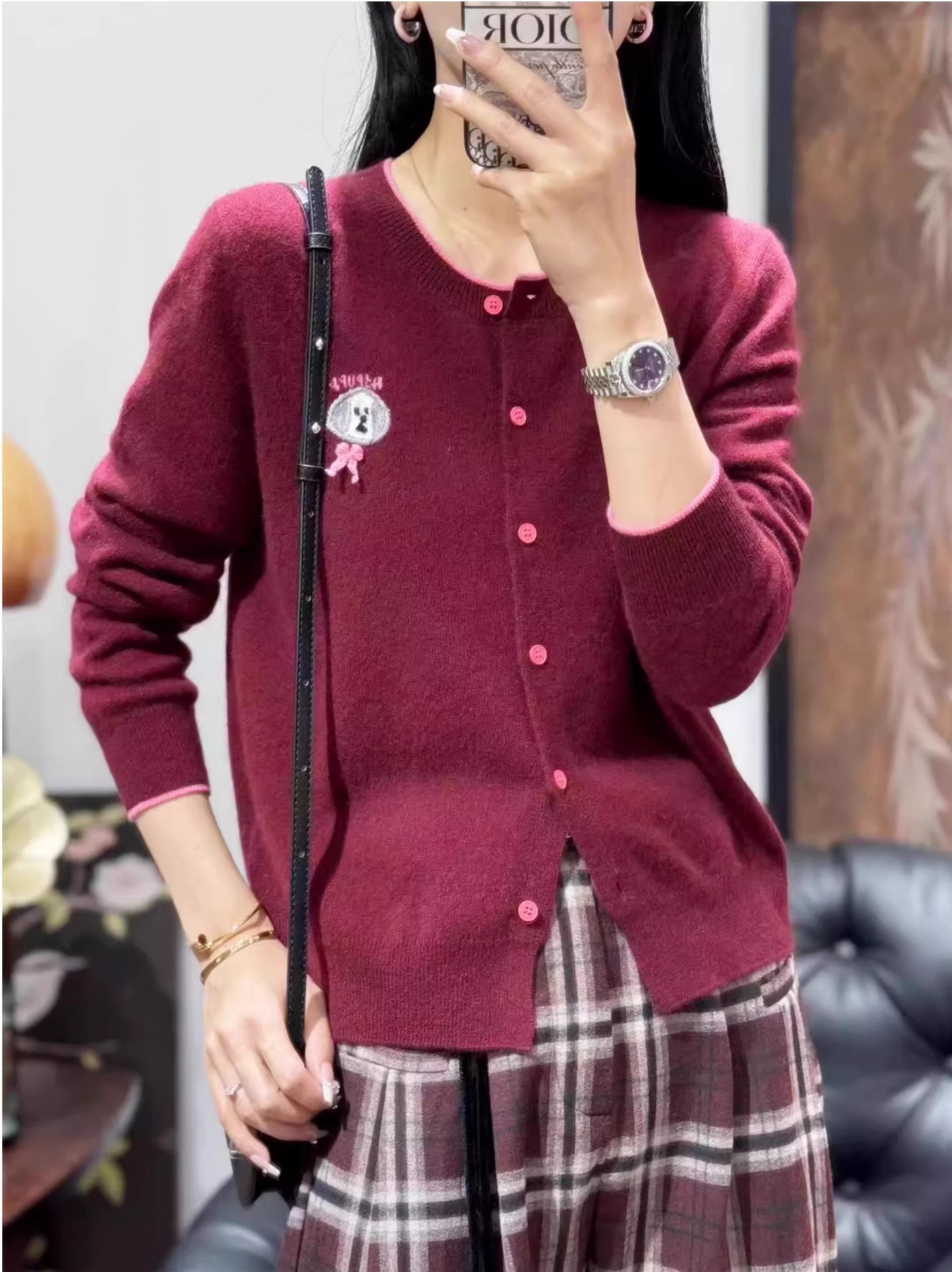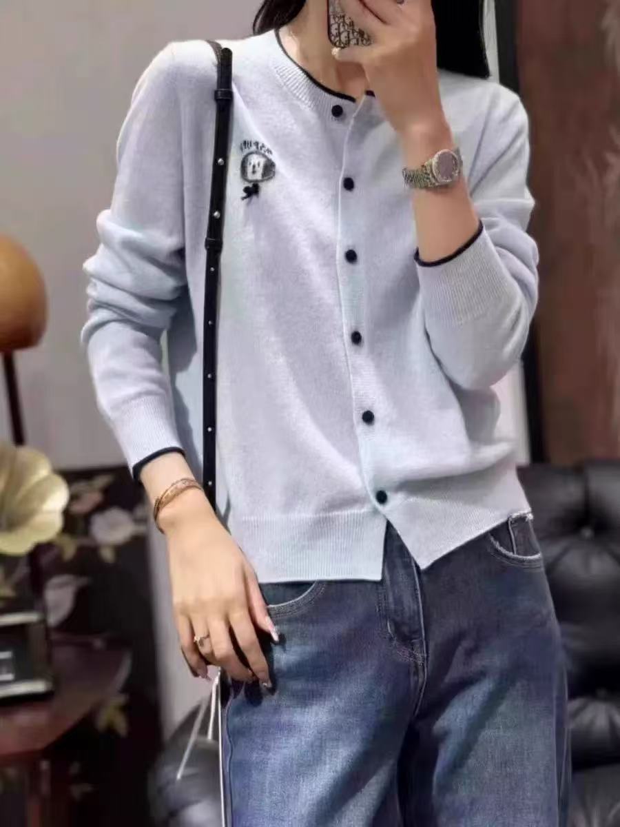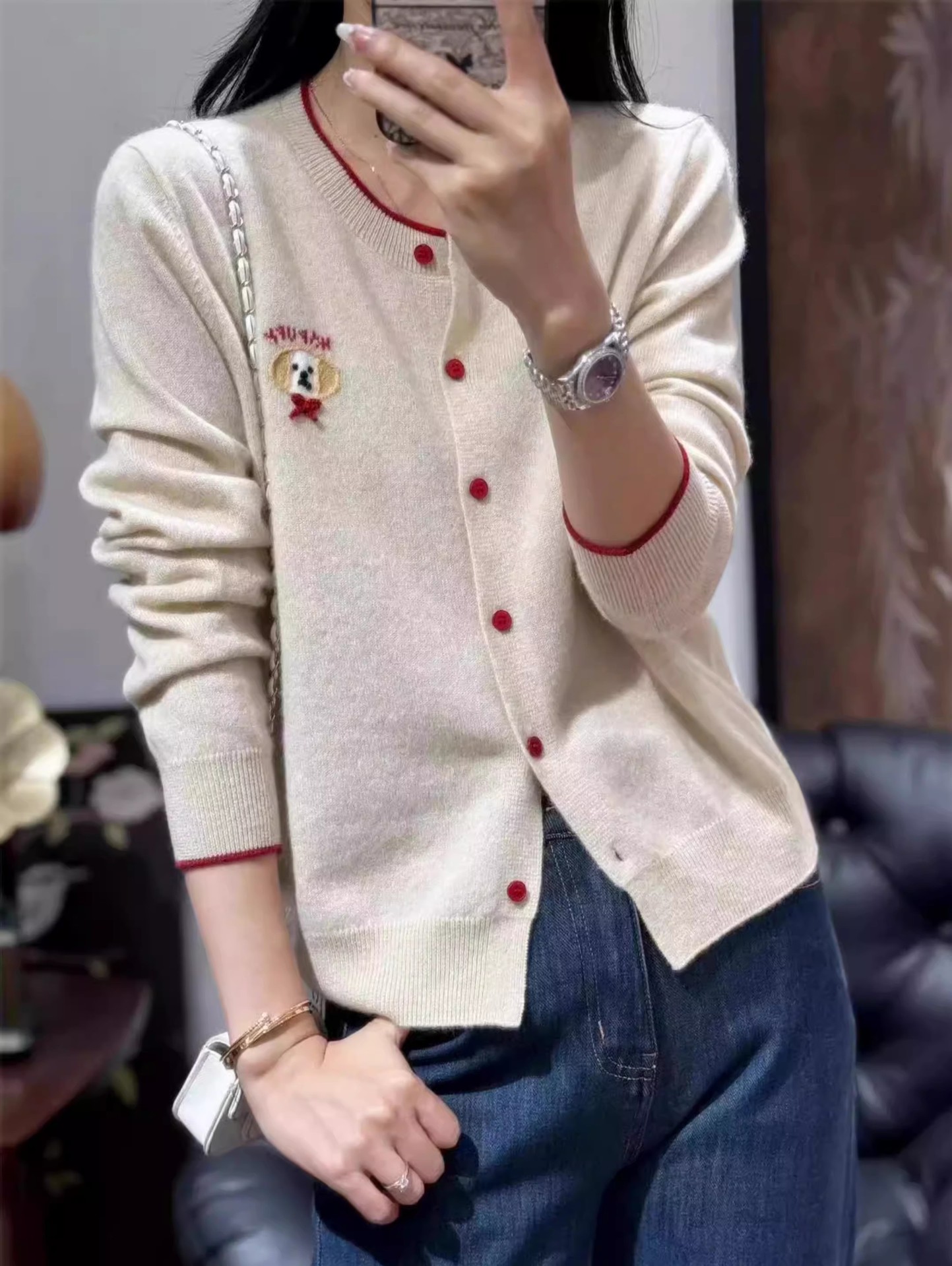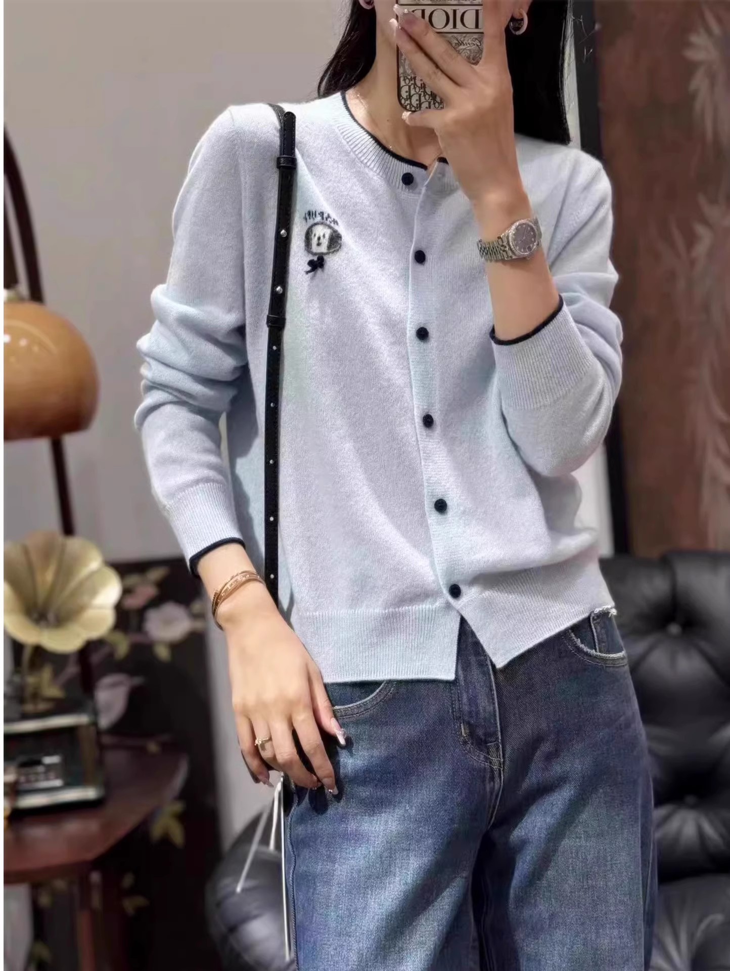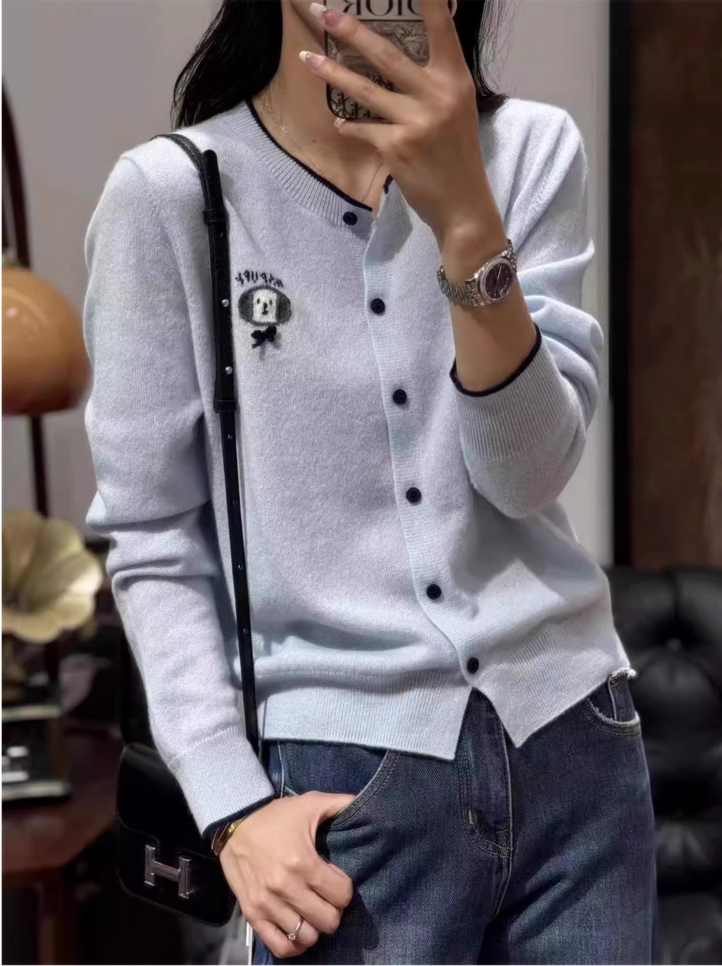 纯羊毛开衫女士欧货高端早秋毛衣刺绣字母羊绒针织外套