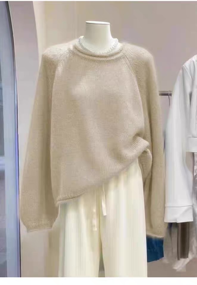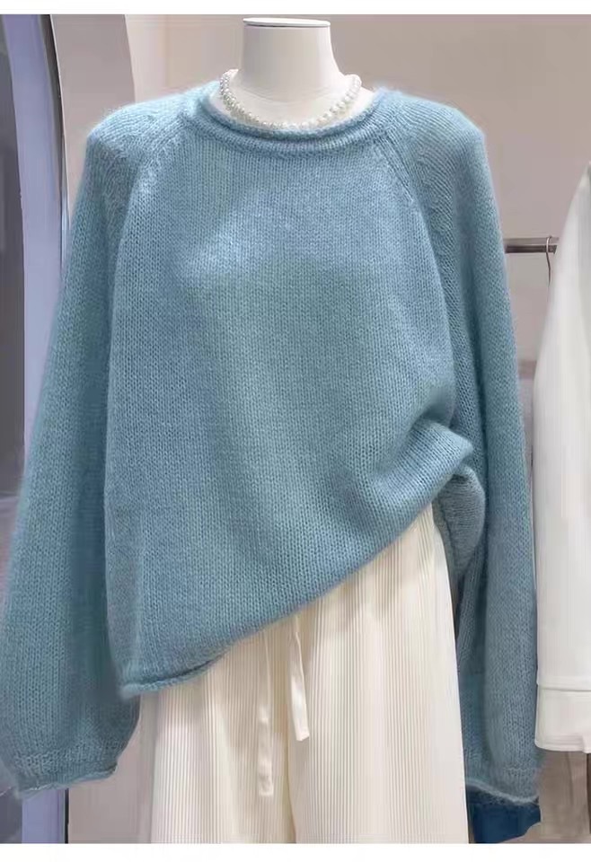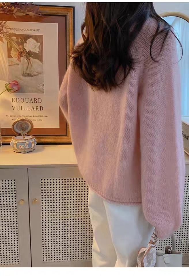 25秋冬新款圆领套头纯羊毛衫女洋气百搭粉色保暖软糯针织加厚毛衣
