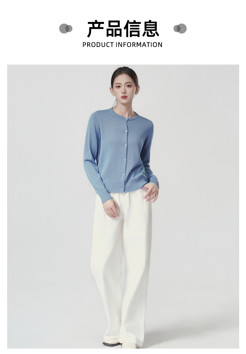 精梳棉混纺圆领针织开衫女2025秋冬新款通勤时尚内搭长袖毛衣外套