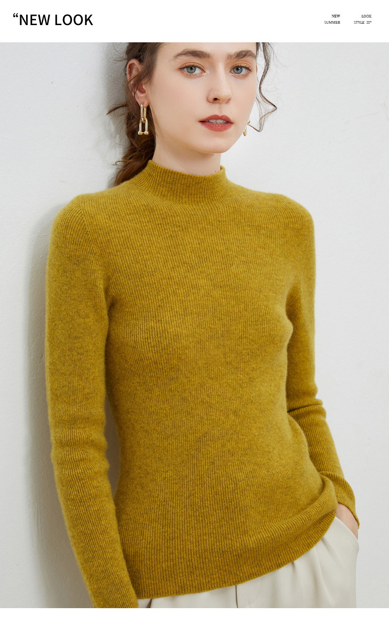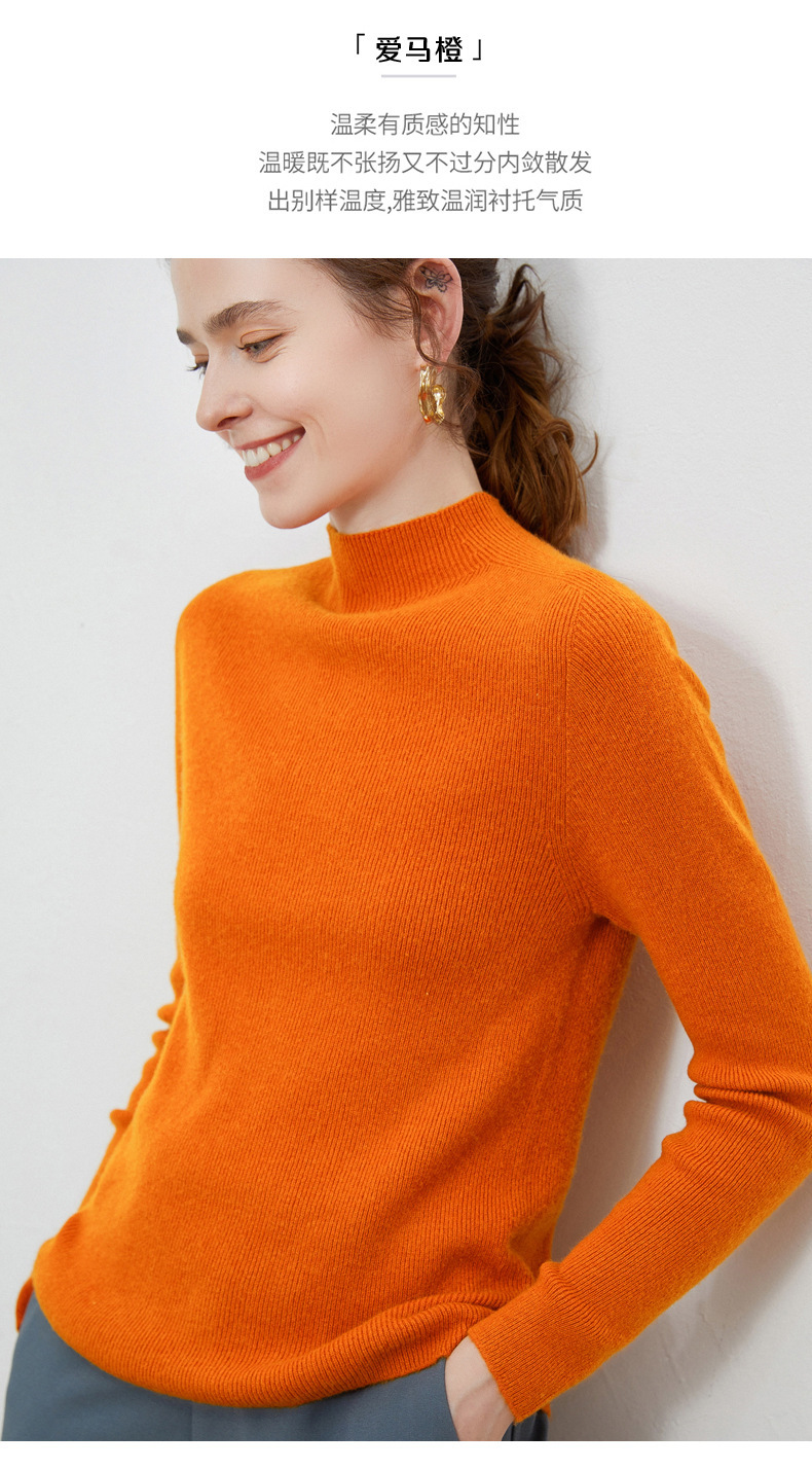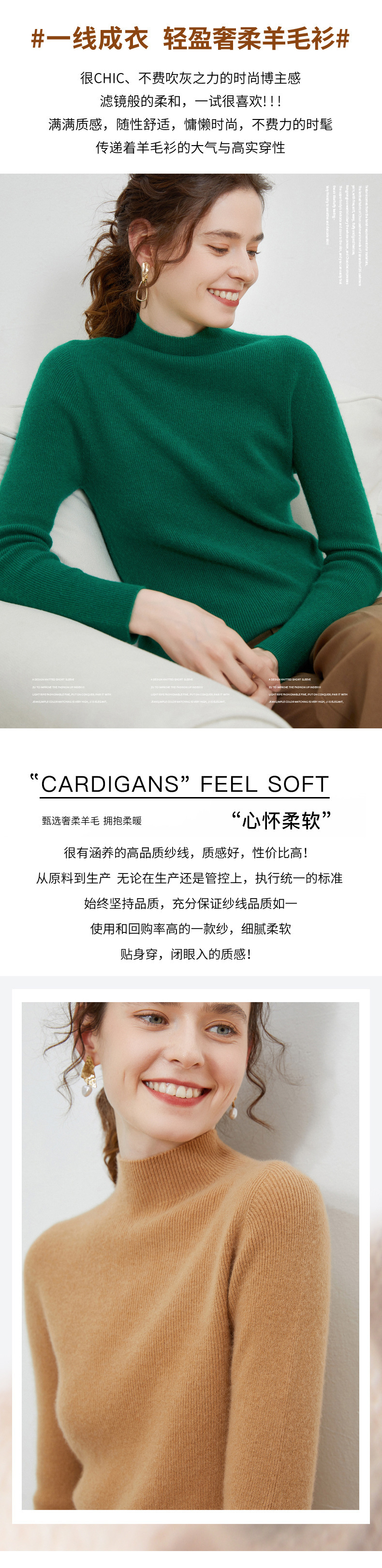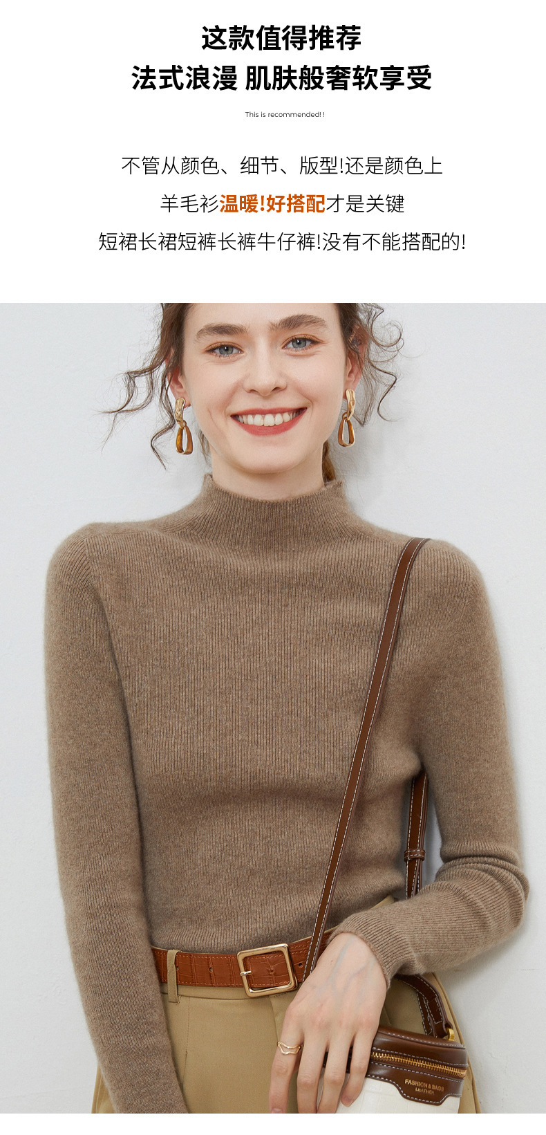 一线成衣羊毛衫女纯羊毛打底衫半高领秋冬抽条毛衣针织全羊毛衫