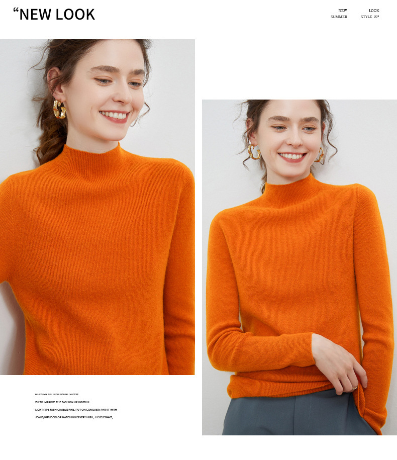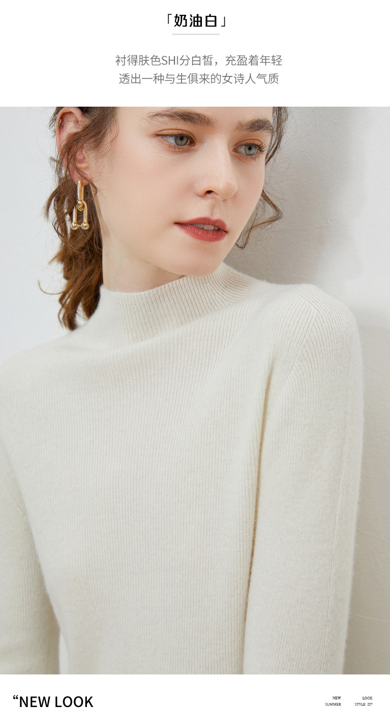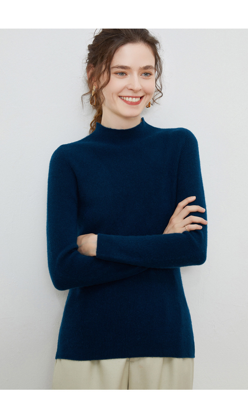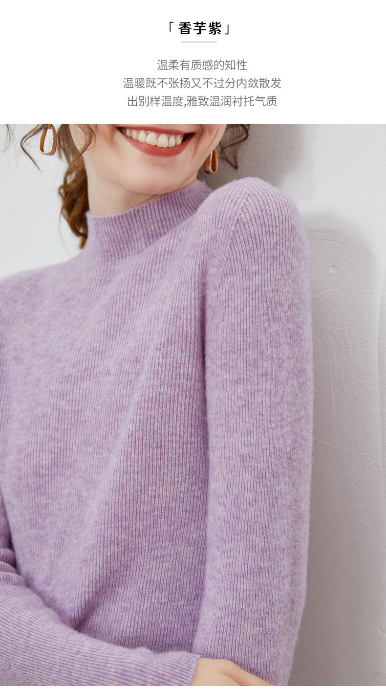 一线成衣羊毛衫女纯羊毛打底衫半高领秋冬抽条毛衣针织全羊毛衫