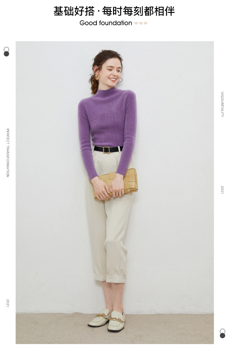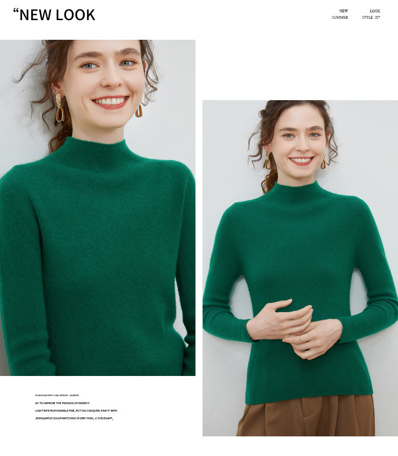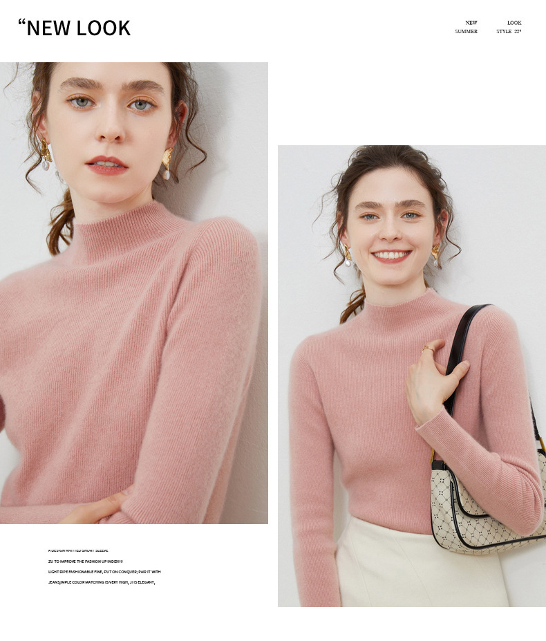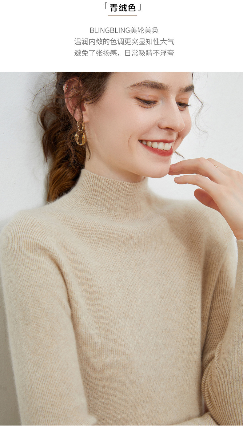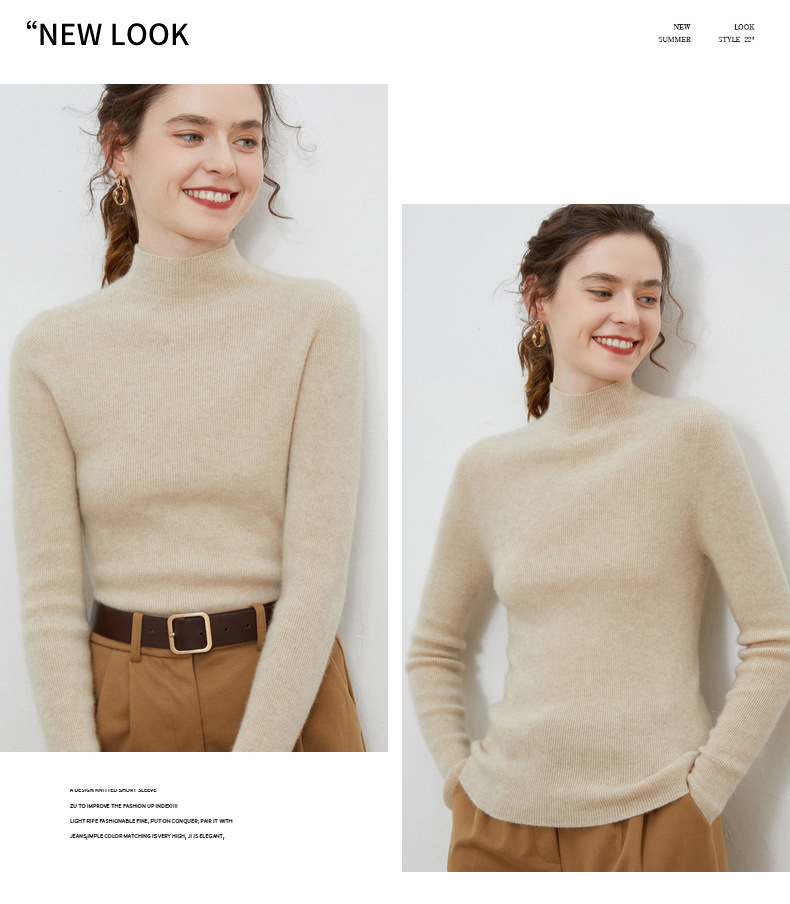一线成衣羊毛衫女纯羊毛打底衫半高领秋冬抽条毛衣针织全羊毛衫