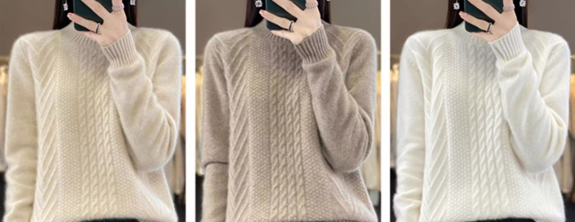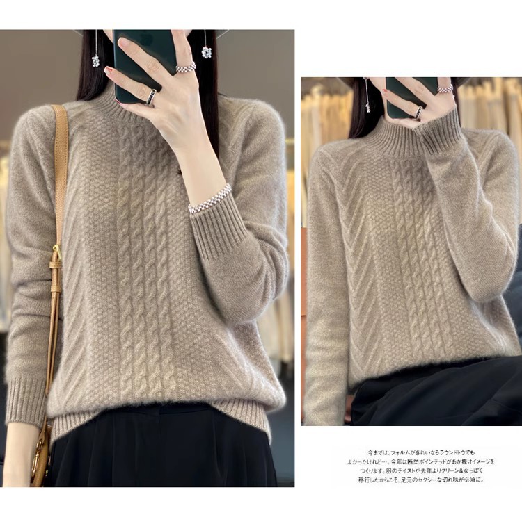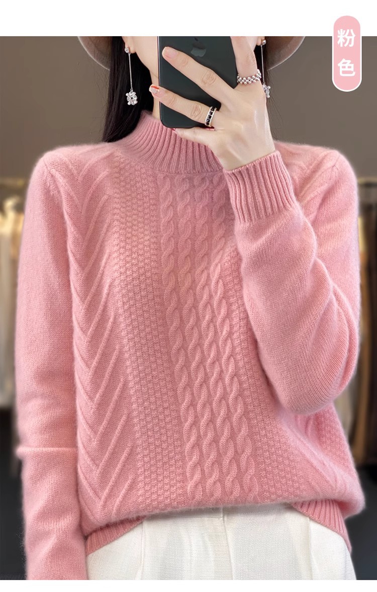 100纯羊毛衫女半高领秋冬短款扭花针织大码加厚羊毛衣打底针织衫
