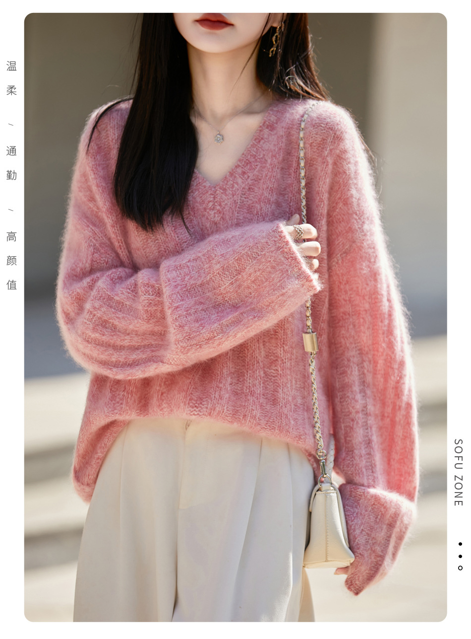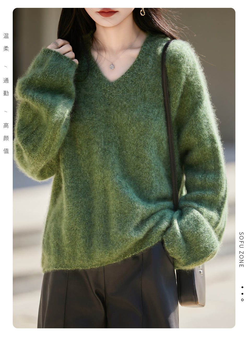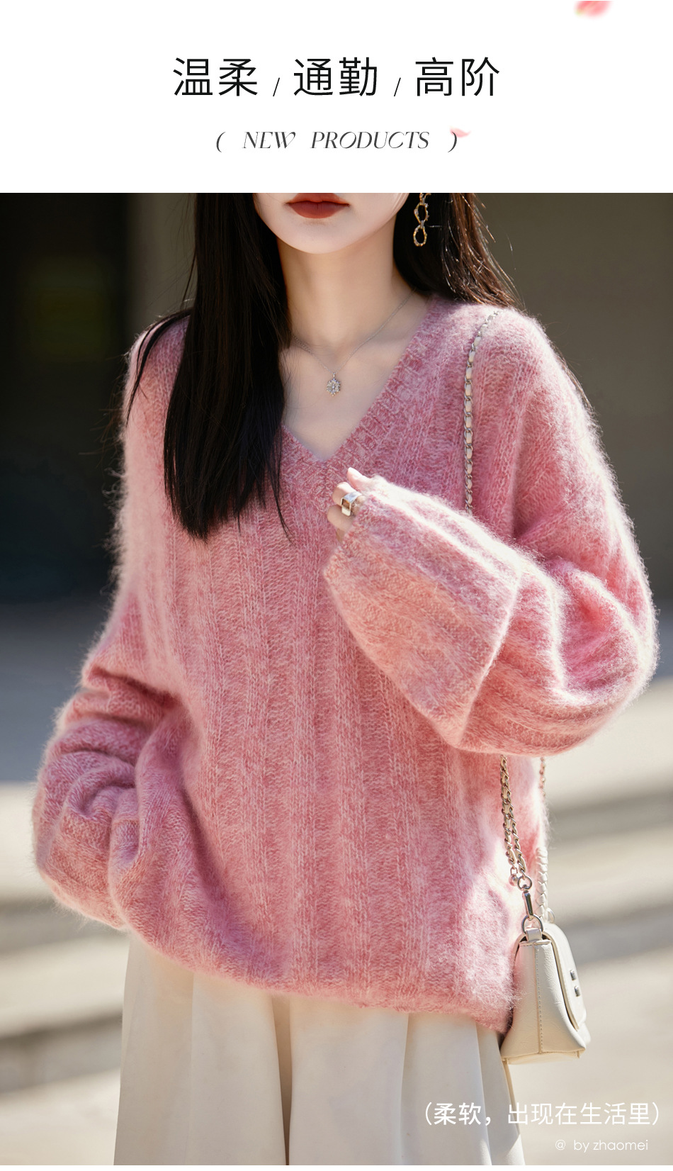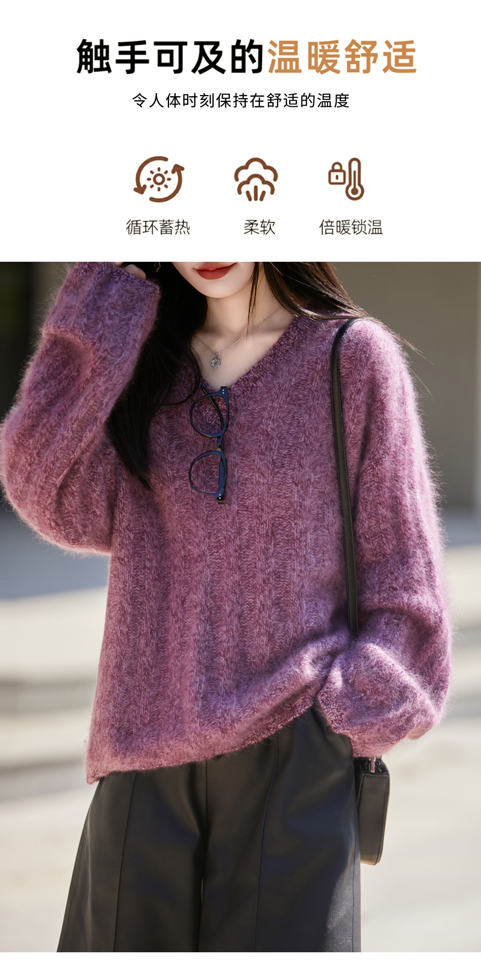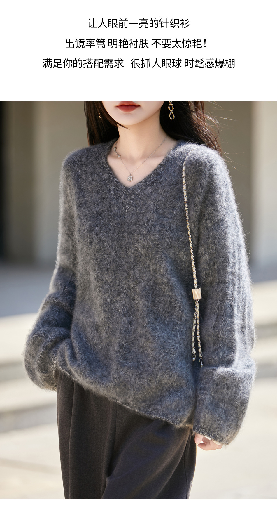 重磅拉毛羊绒羊毛慵懒针织衫女2025新款洋气宽松女装毛衣穿搭上衣