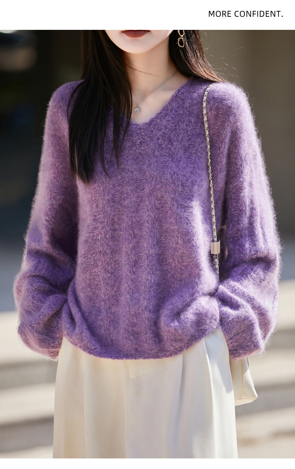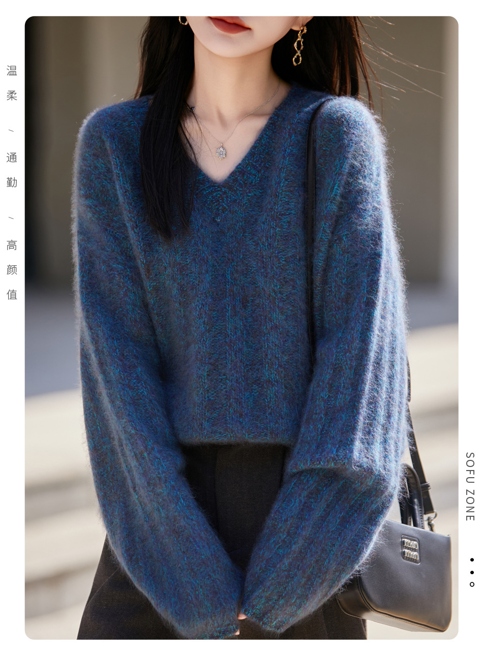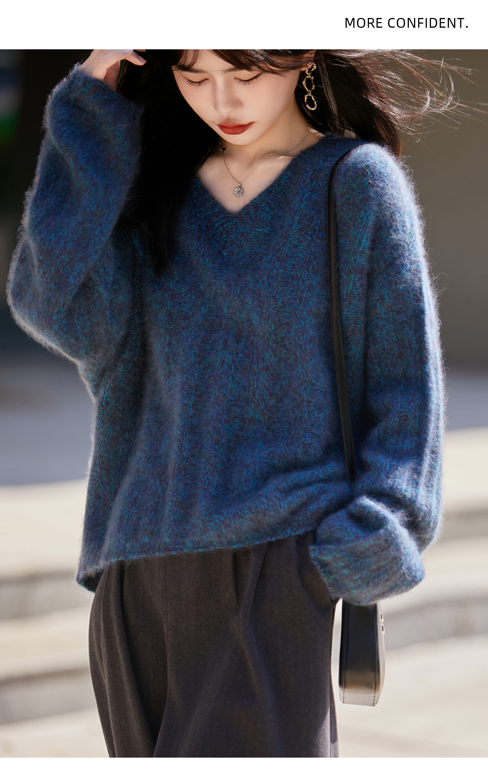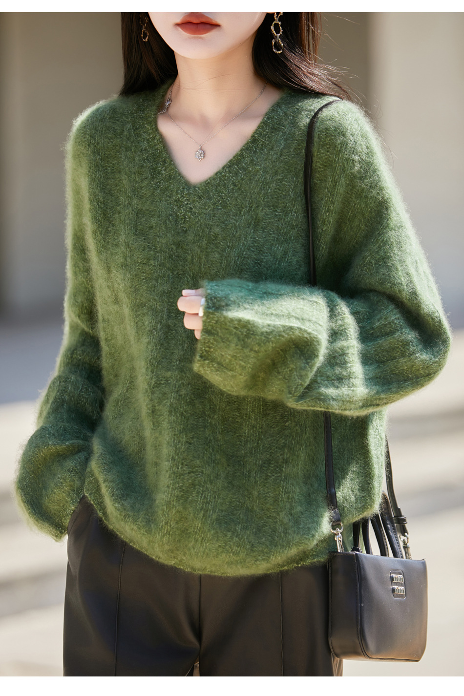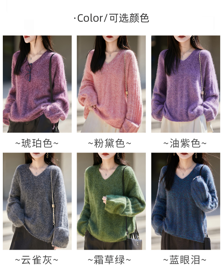 重磅拉毛羊绒羊毛慵懒针织衫女2025新款洋气宽松女装毛衣穿搭上衣
