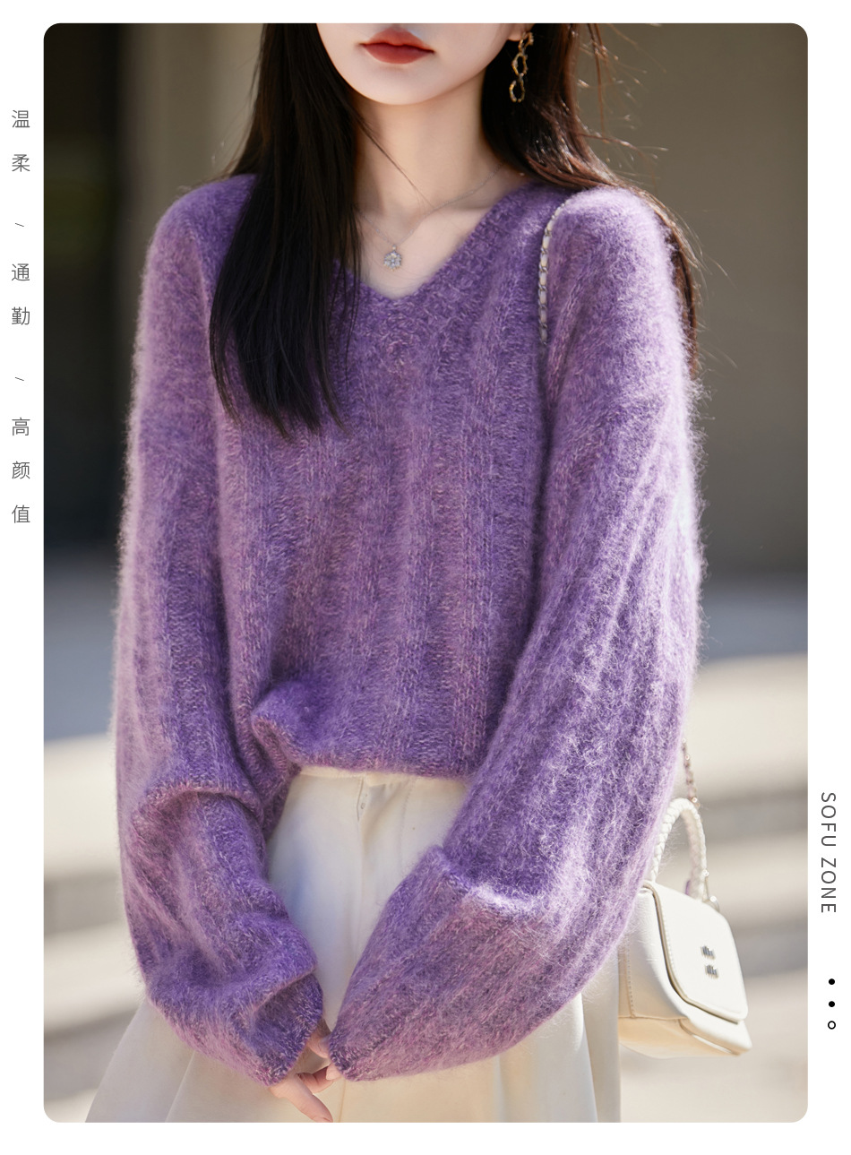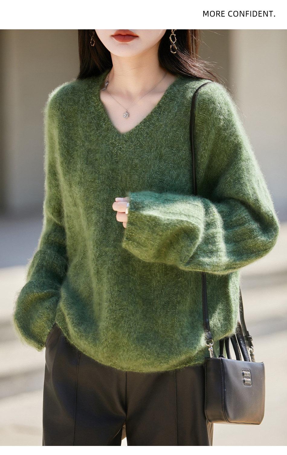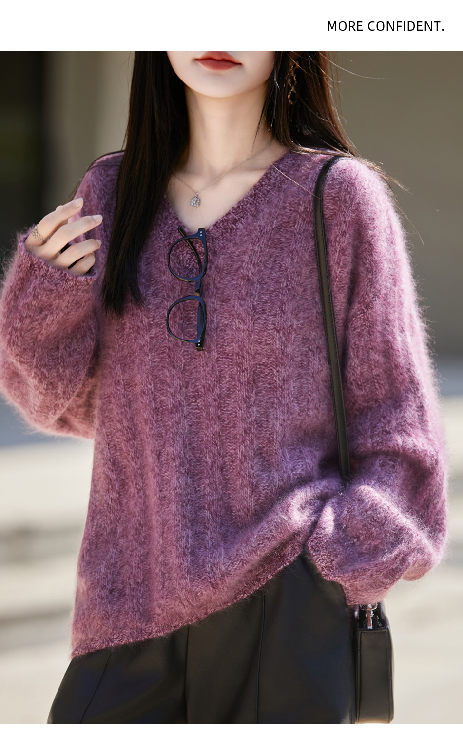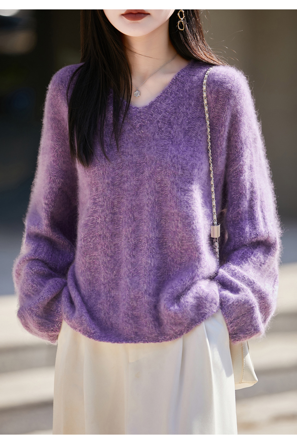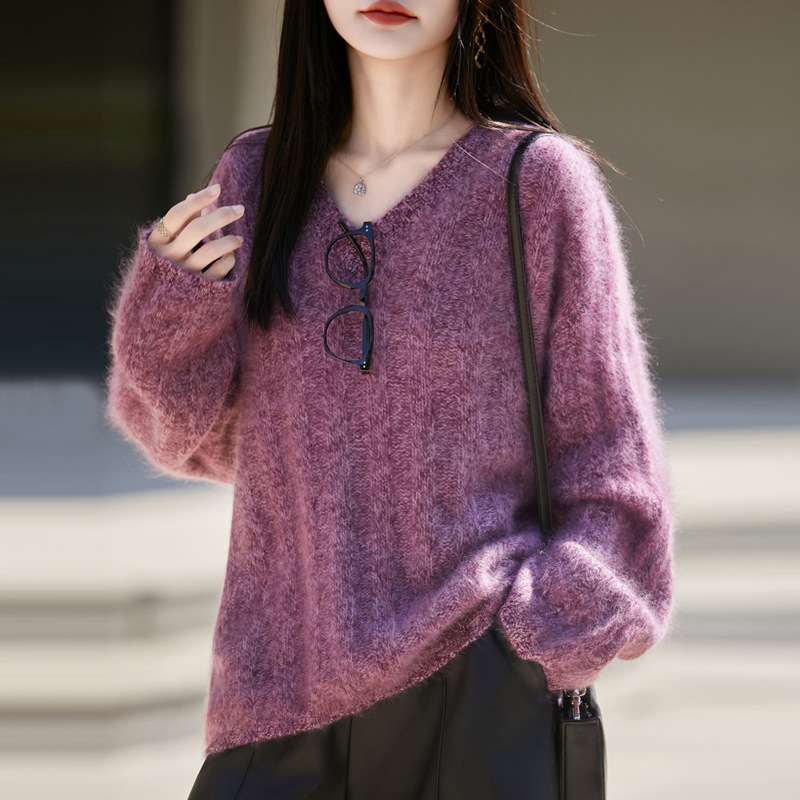 重磅拉毛羊绒羊毛慵懒针织衫女2025新款洋气宽松女装毛衣穿搭上衣