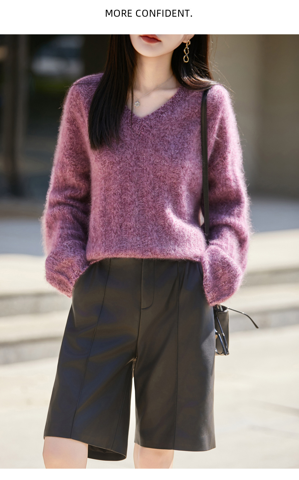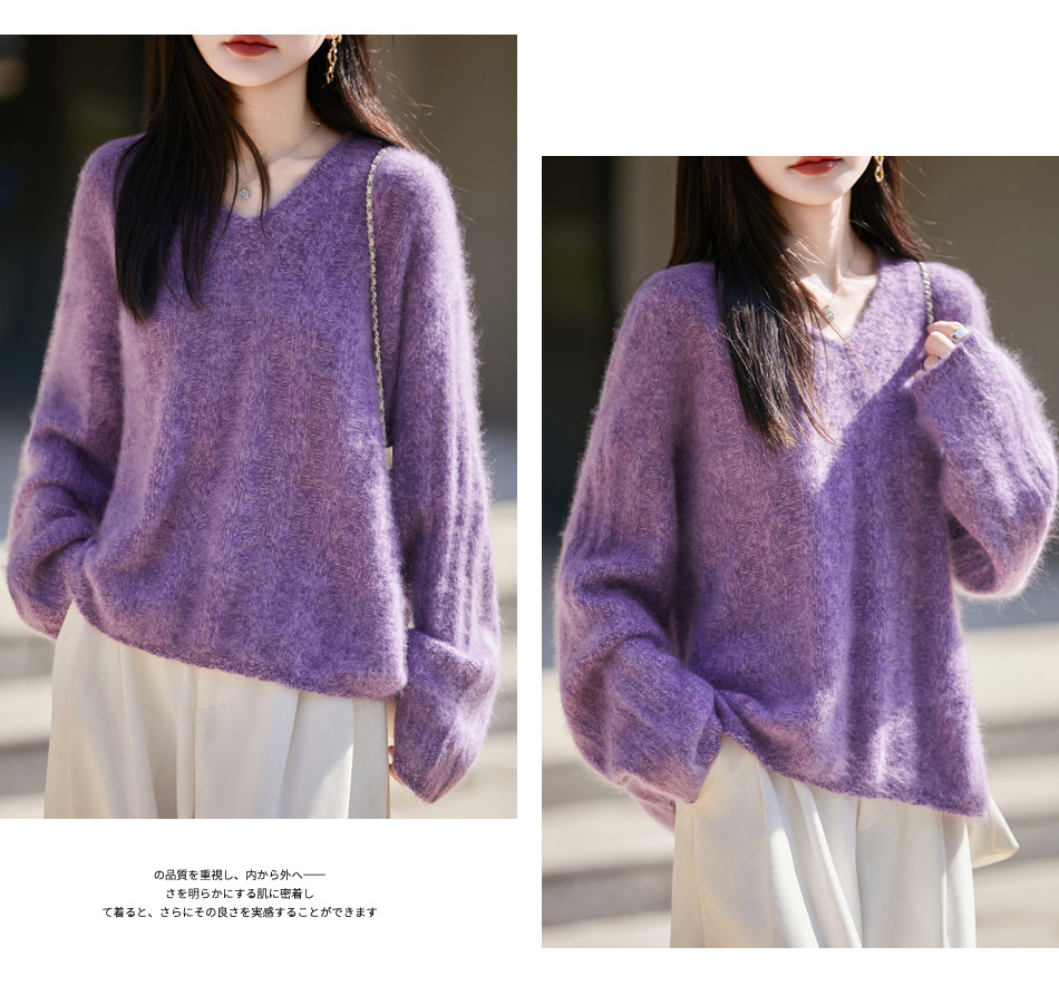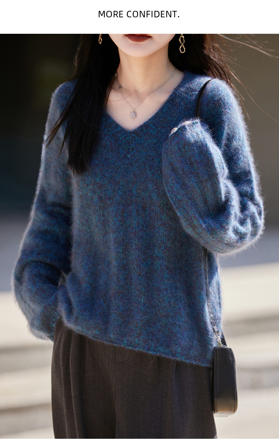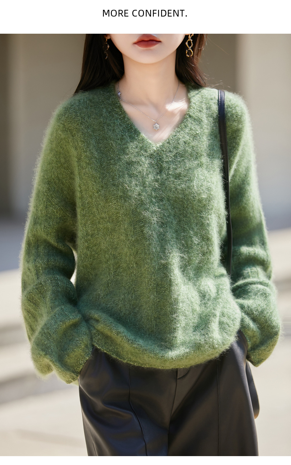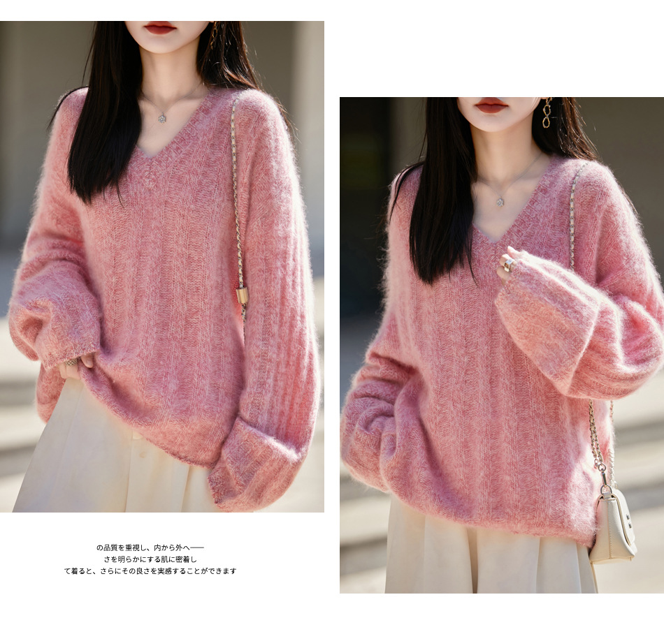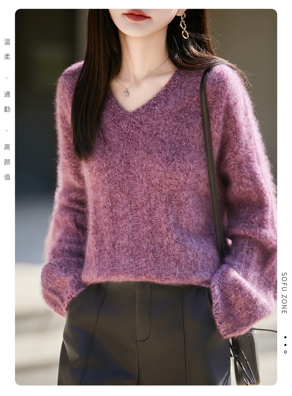 重磅拉毛羊绒羊毛慵懒针织衫女2025新款洋气宽松女装毛衣穿搭上衣