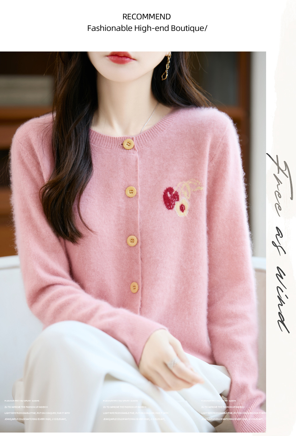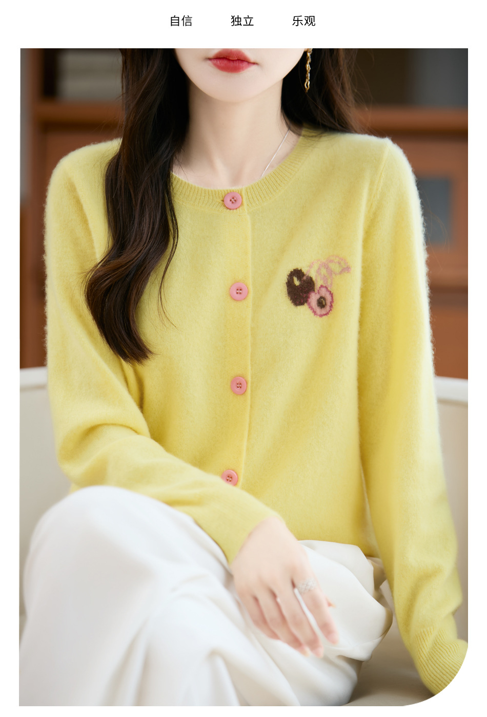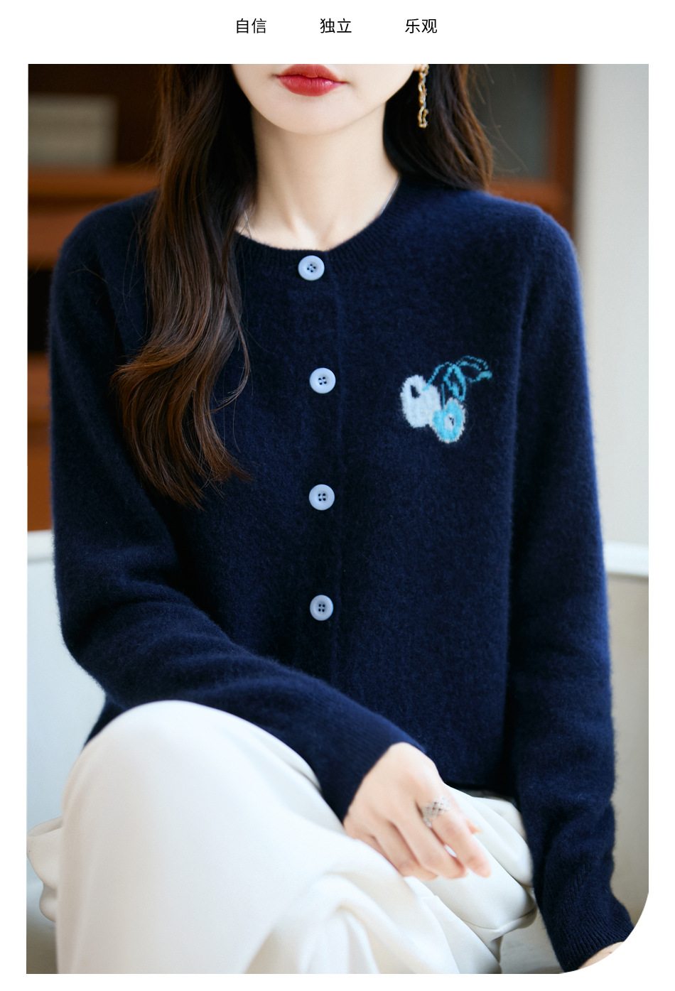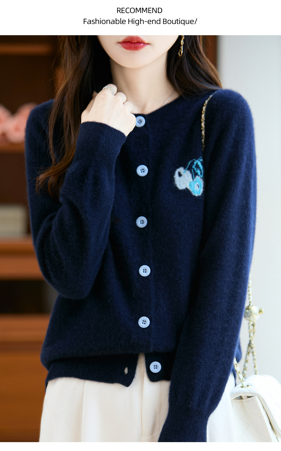 新款100纯羊毛衫女圆领开衫外穿上衣针织打底衫秋冬百搭女装外套