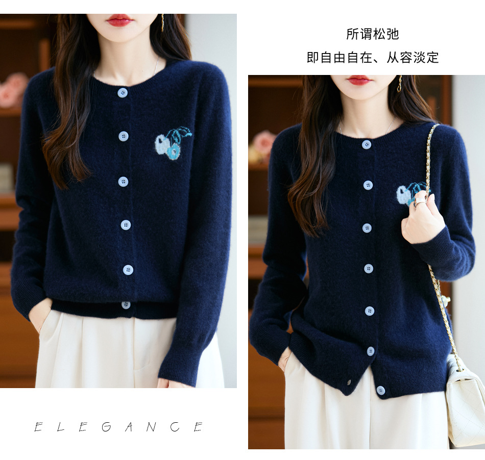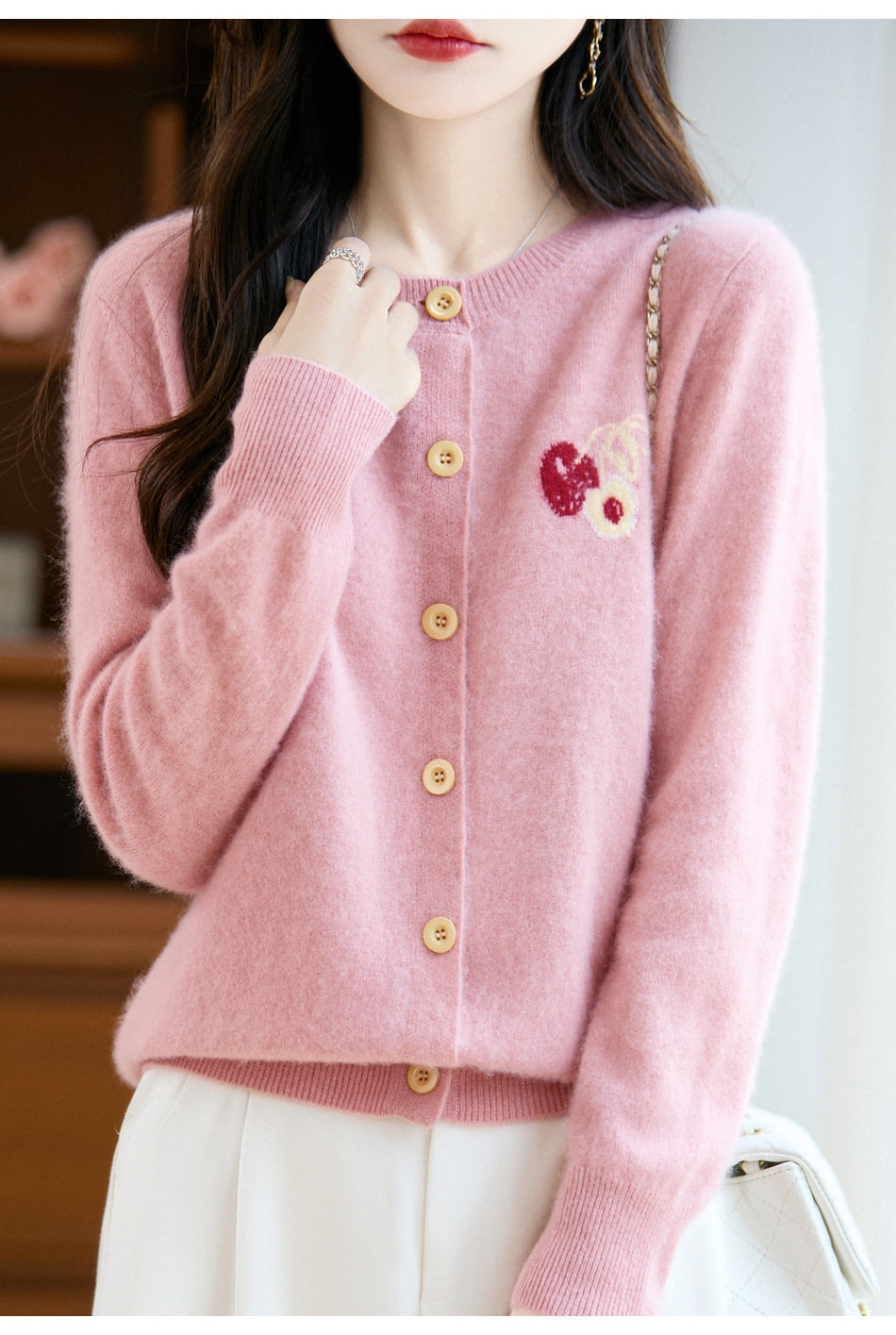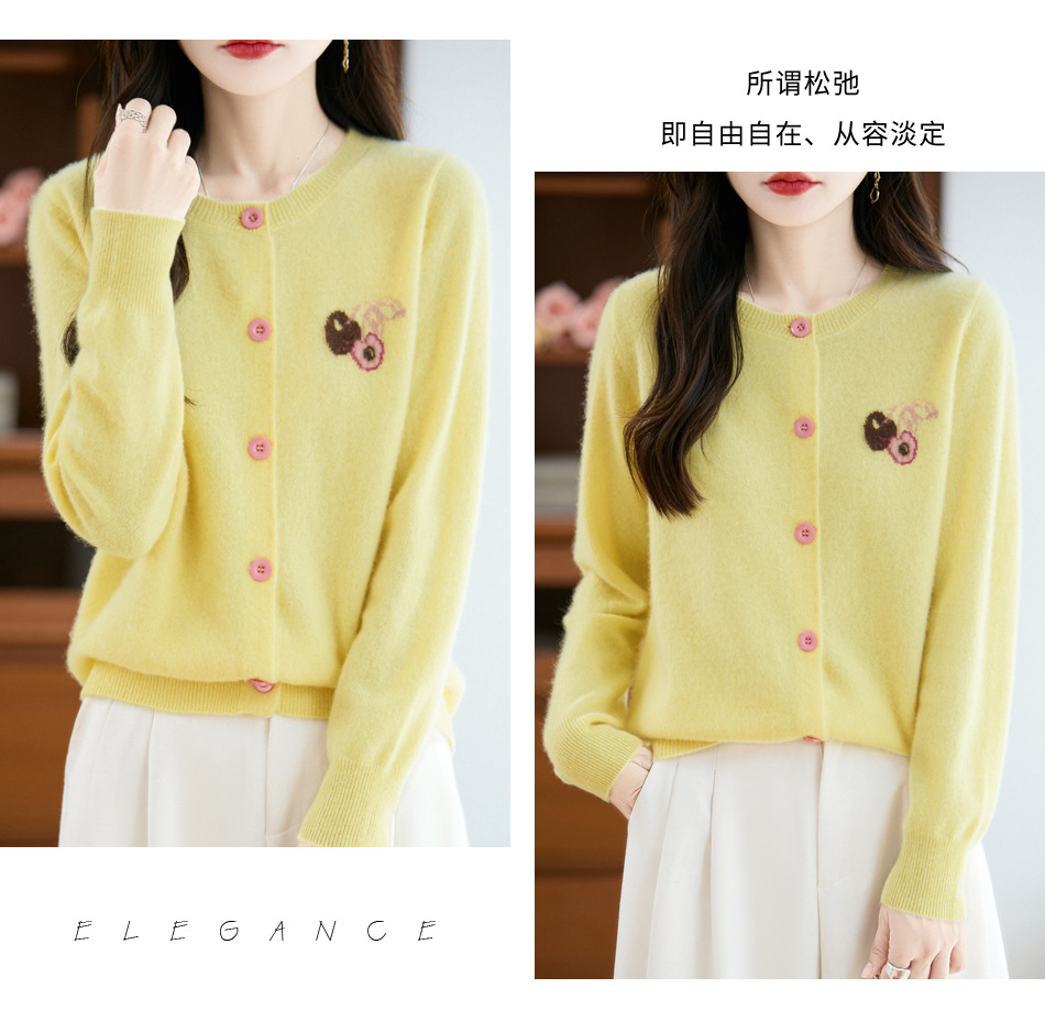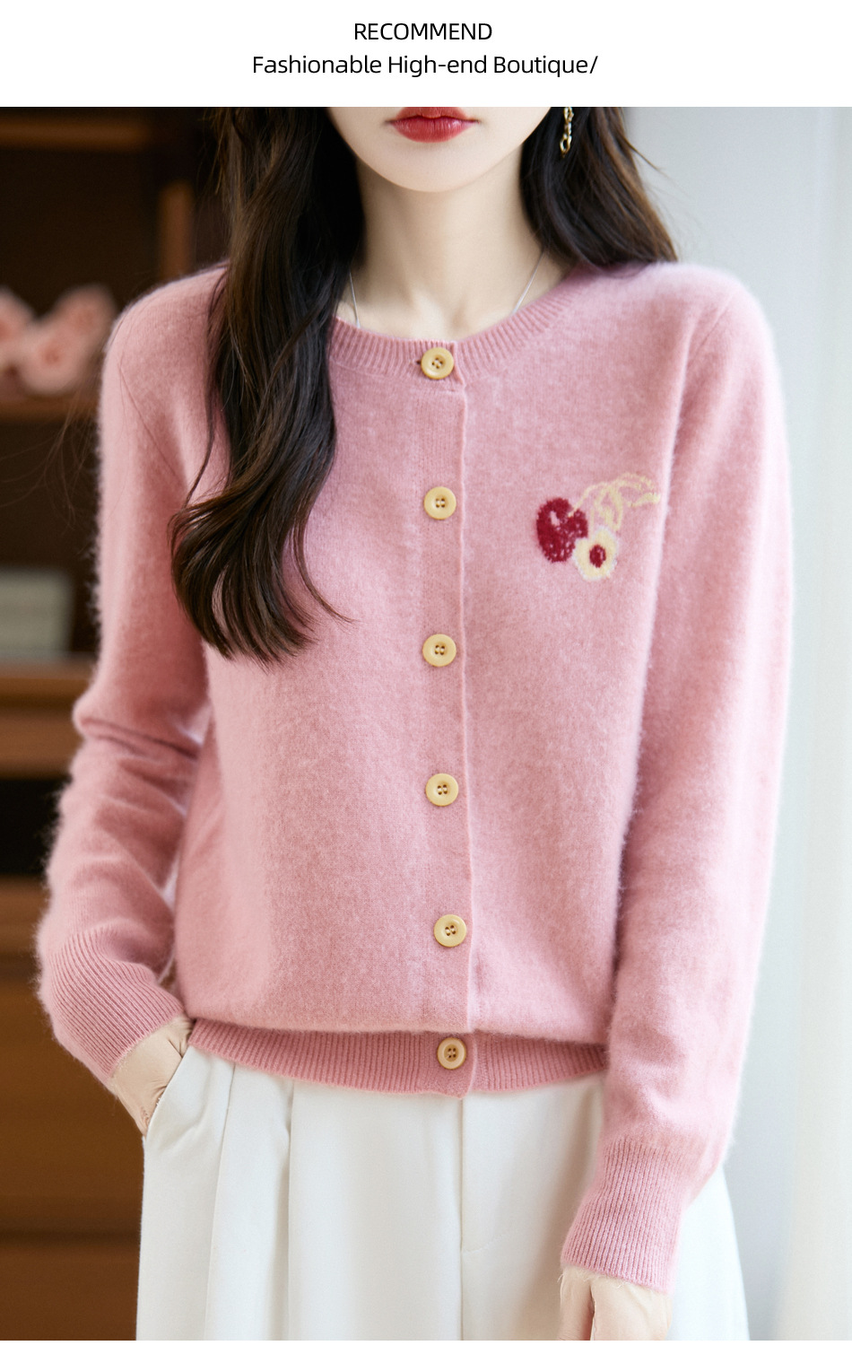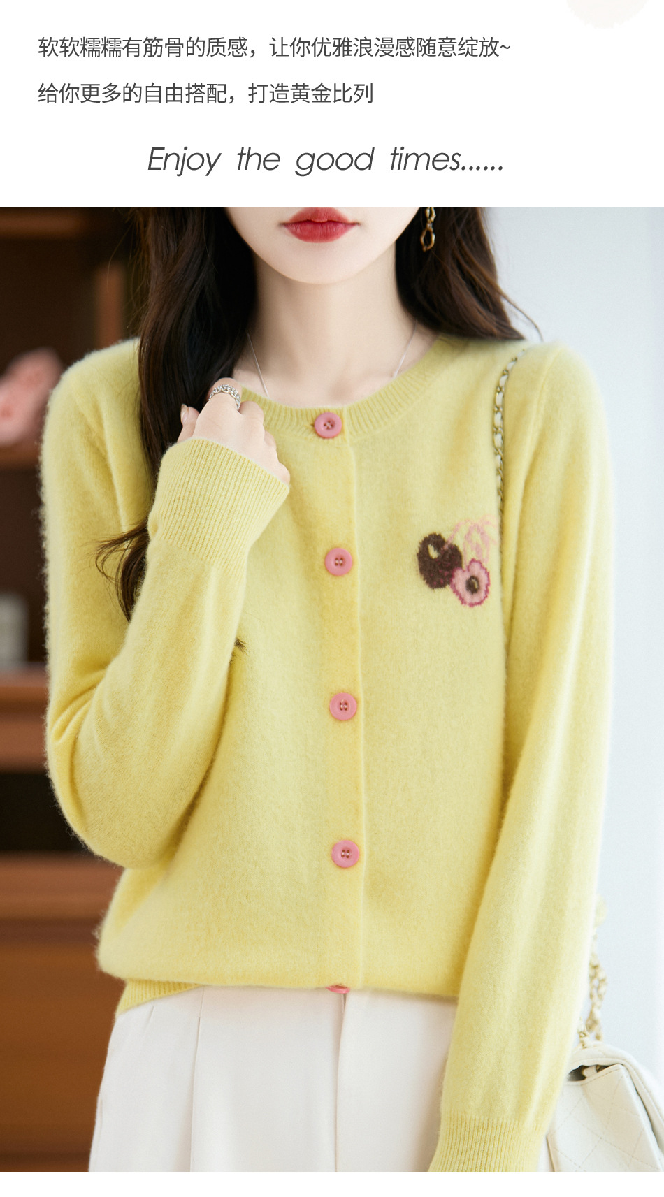 新款100纯羊毛衫女圆领开衫外穿上衣针织打底衫秋冬百搭女装外套