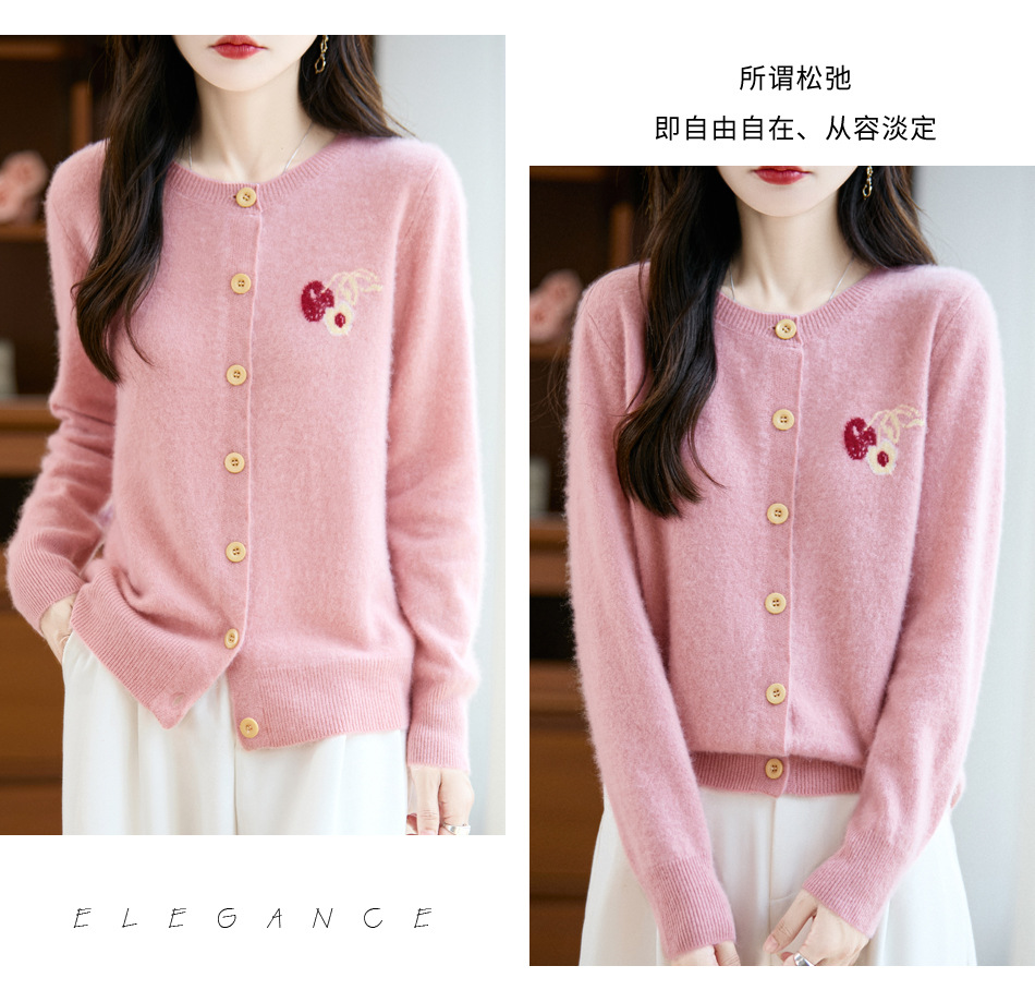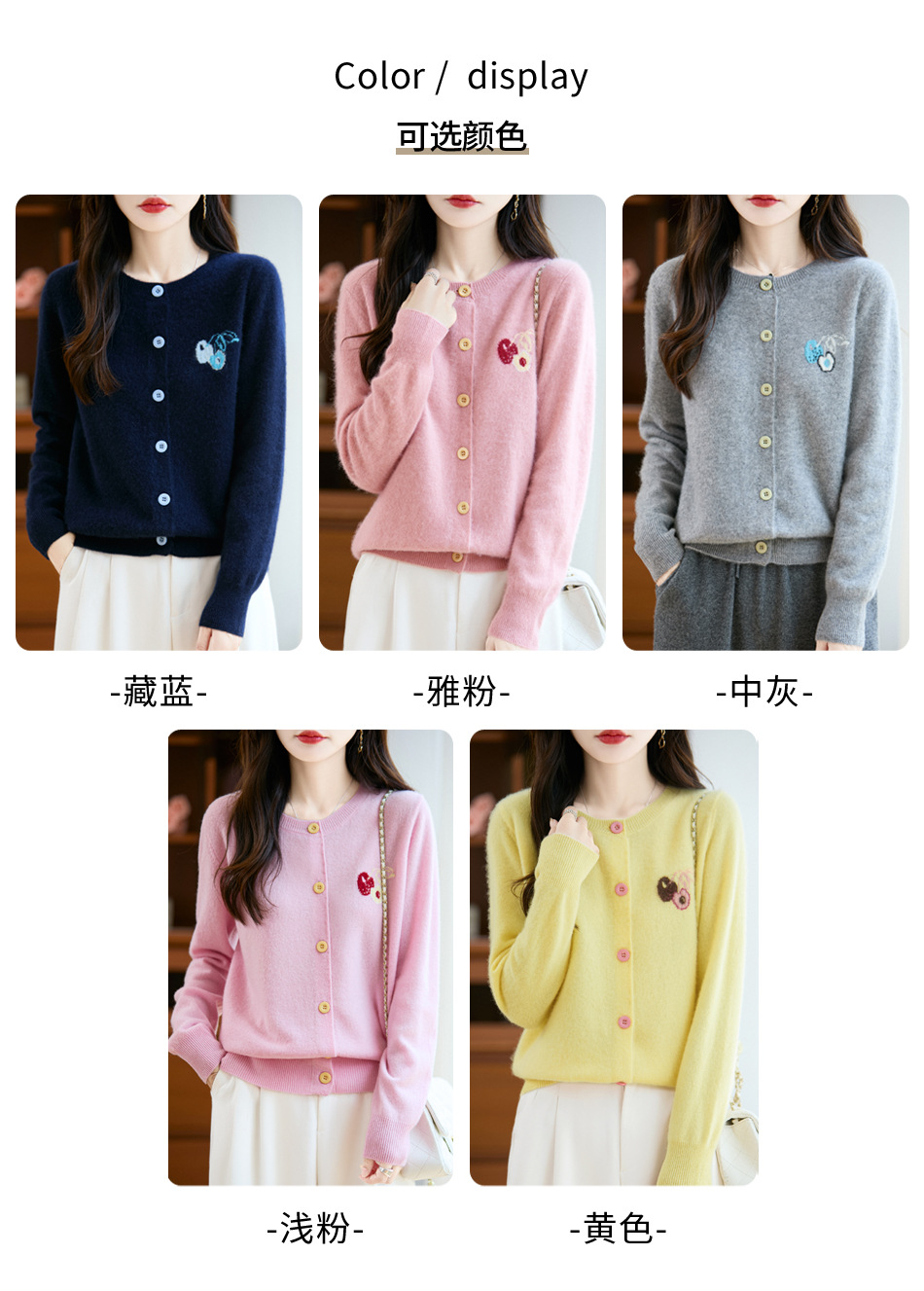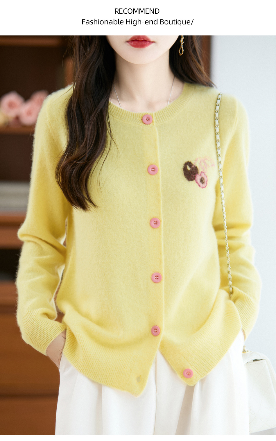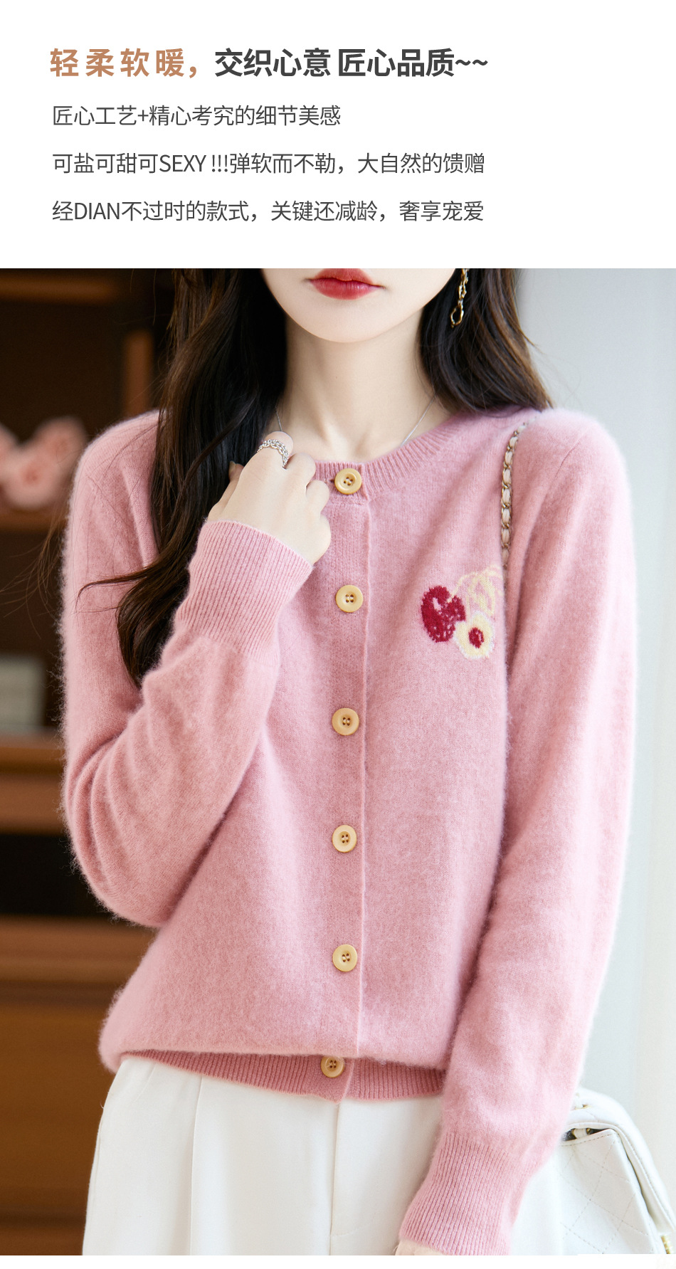 新款100纯羊毛衫女圆领开衫外穿上衣针织打底衫秋冬百搭女装外套