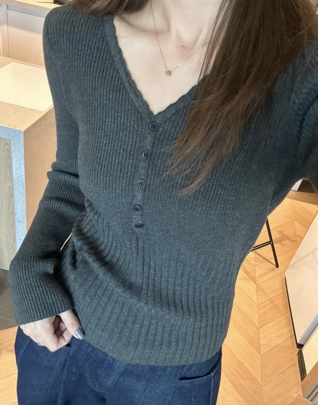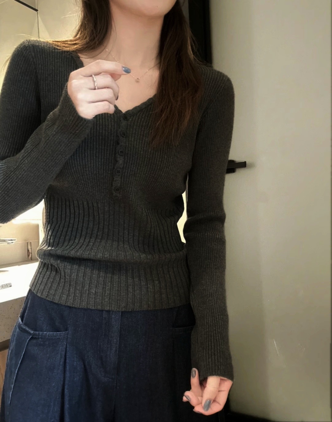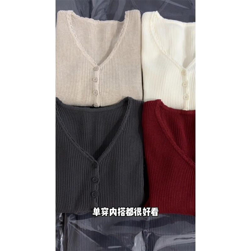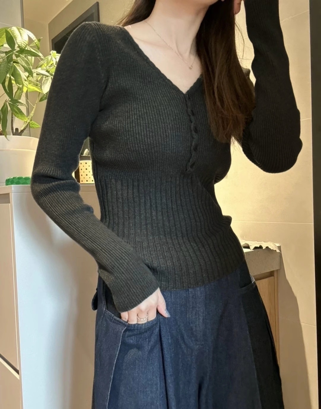 2025年新款秋冬季V领羊毛针织衫女穿搭修身潮减龄长袖打底衫上衣
