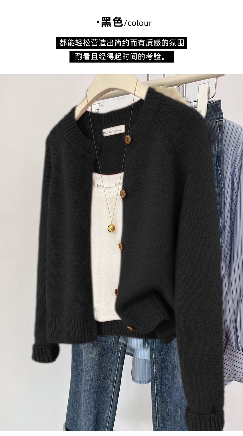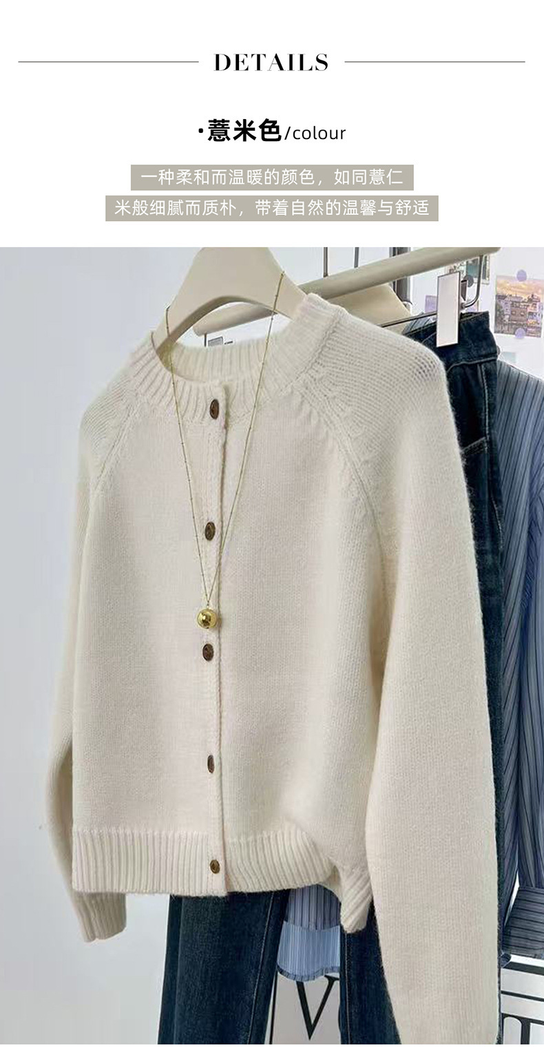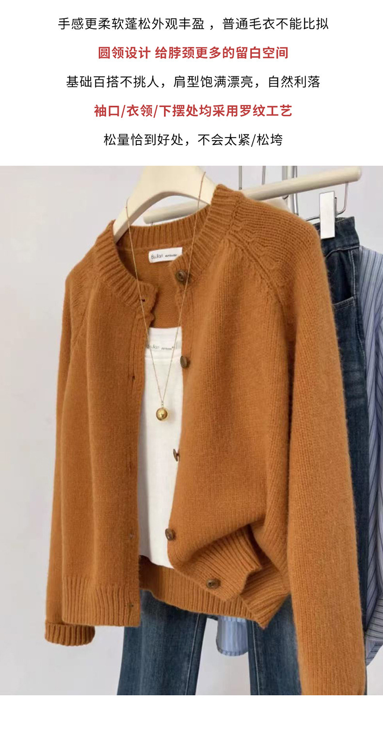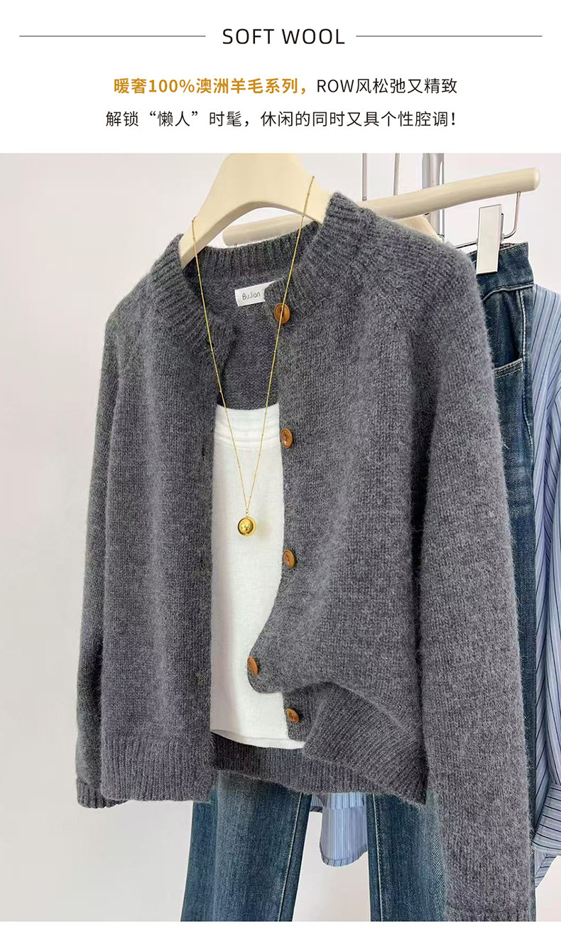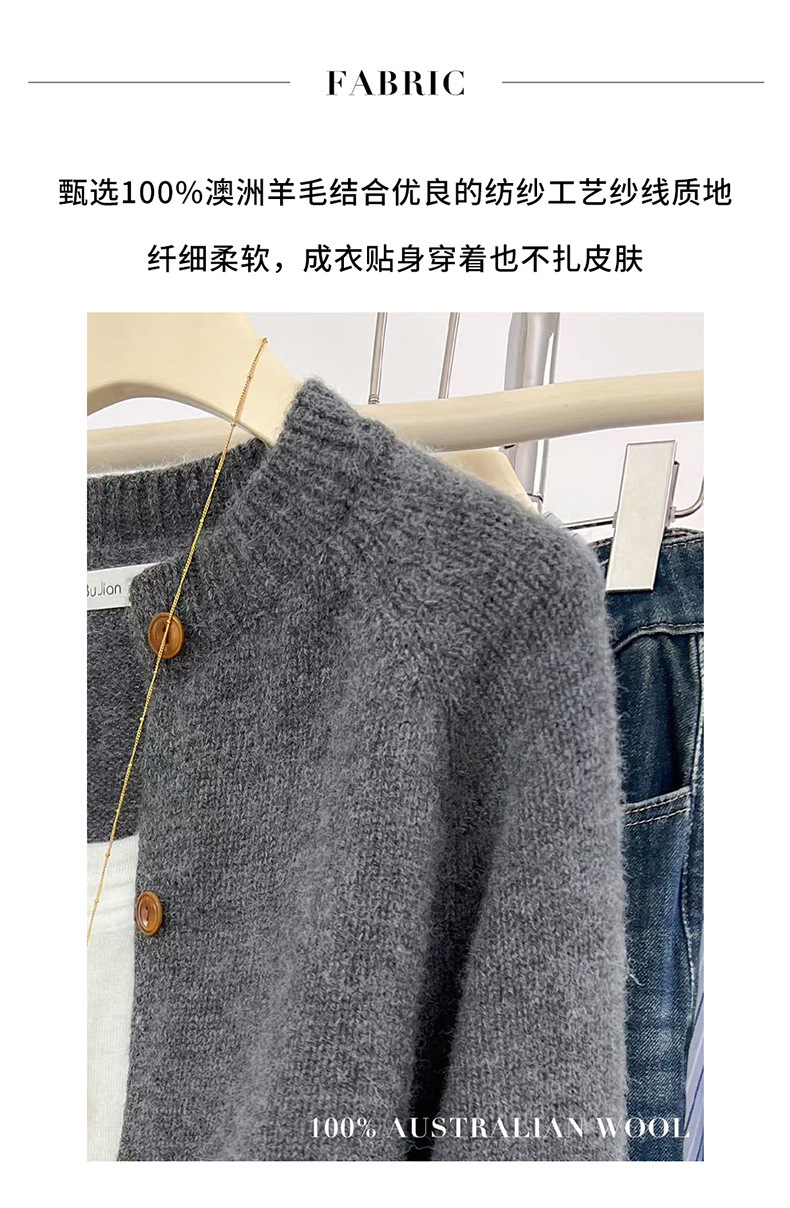 纯羊毛衫针织开衫女式圆领毛衣外套秋冬新款软糯感通勤风外搭
