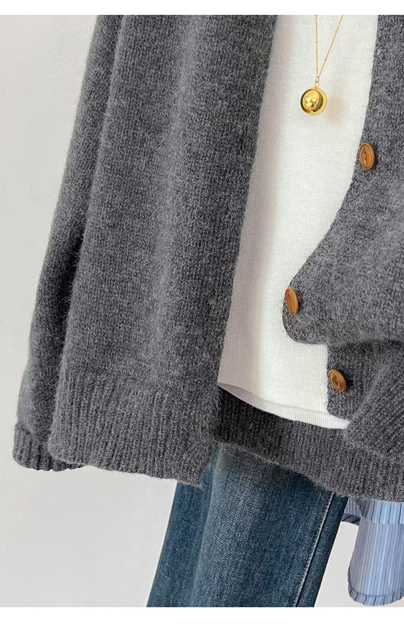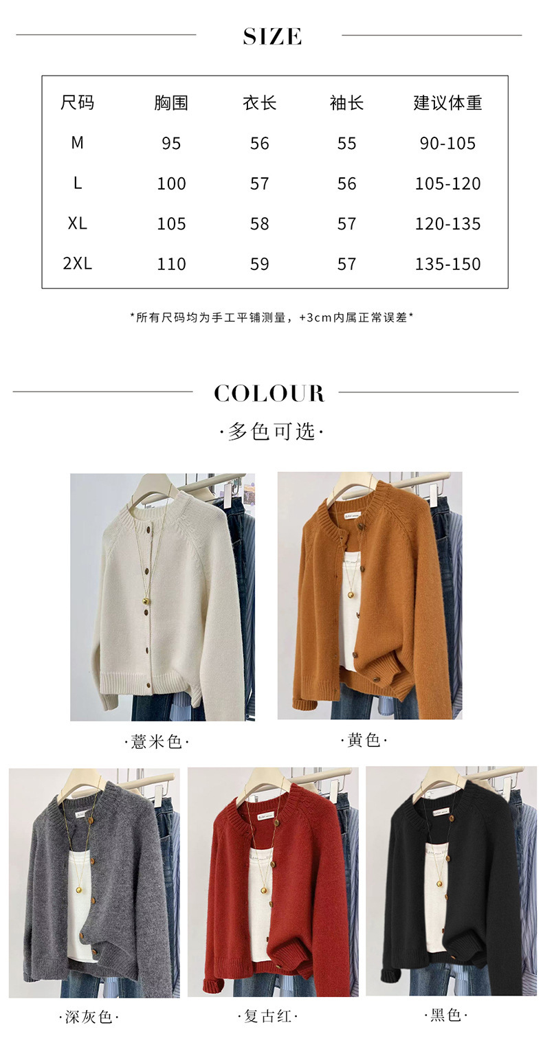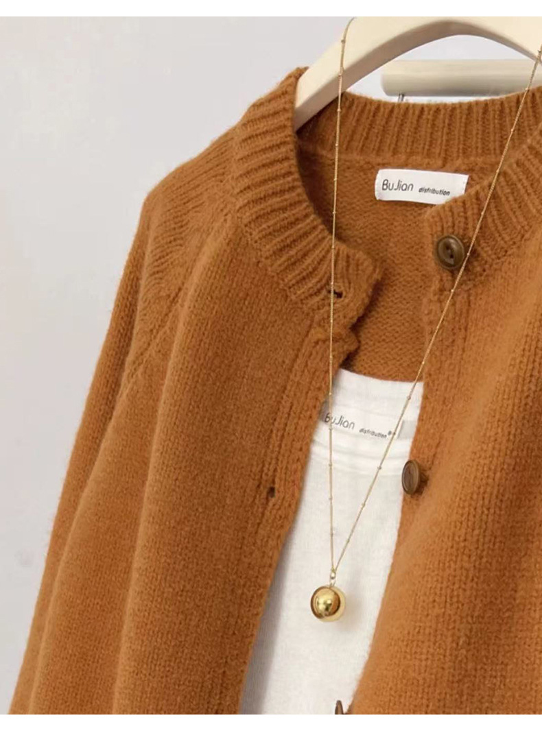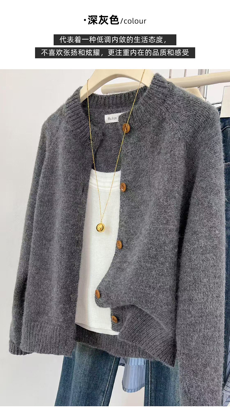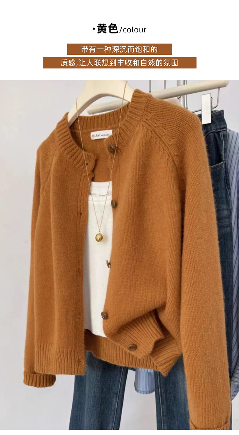 纯羊毛衫针织开衫女式圆领毛衣外套秋冬新款软糯感通勤风外搭