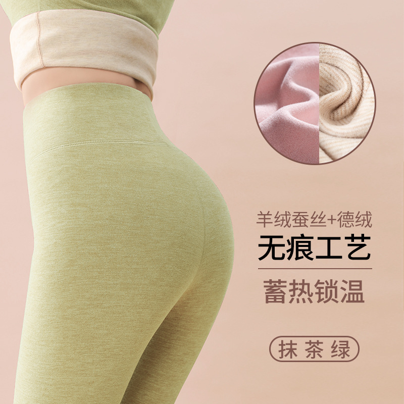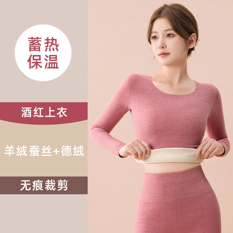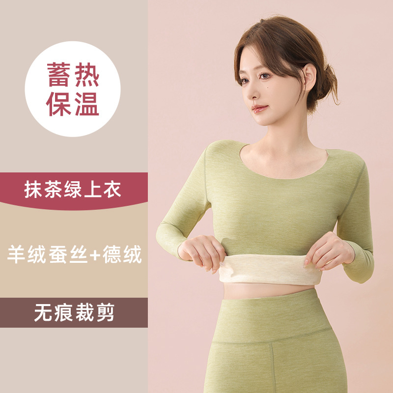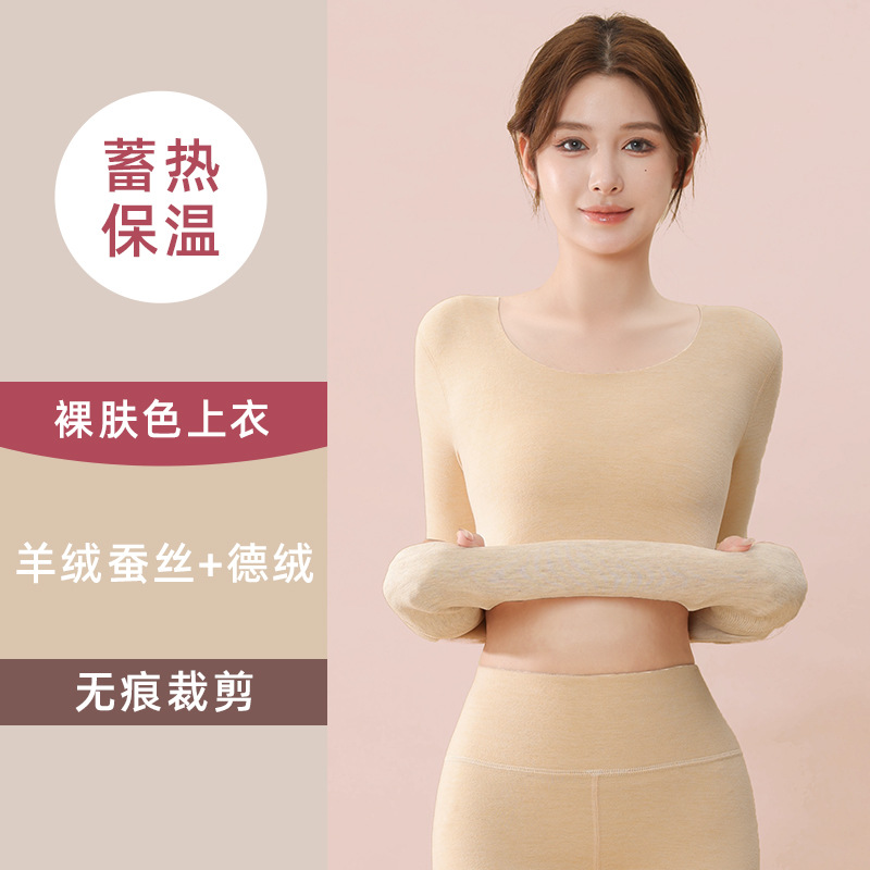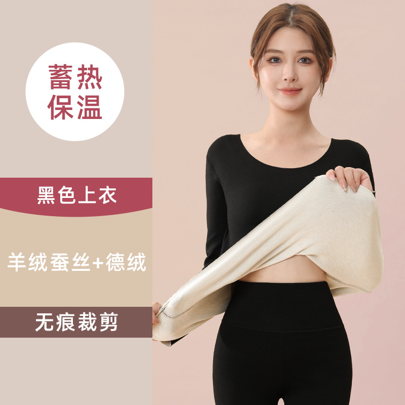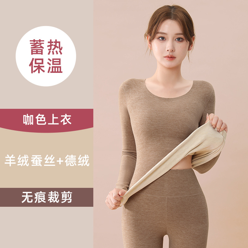 蚕丝羊绒保暖套装女士秋冬季加绒加厚打底德绒无痕内衣秋衣秋裤子
