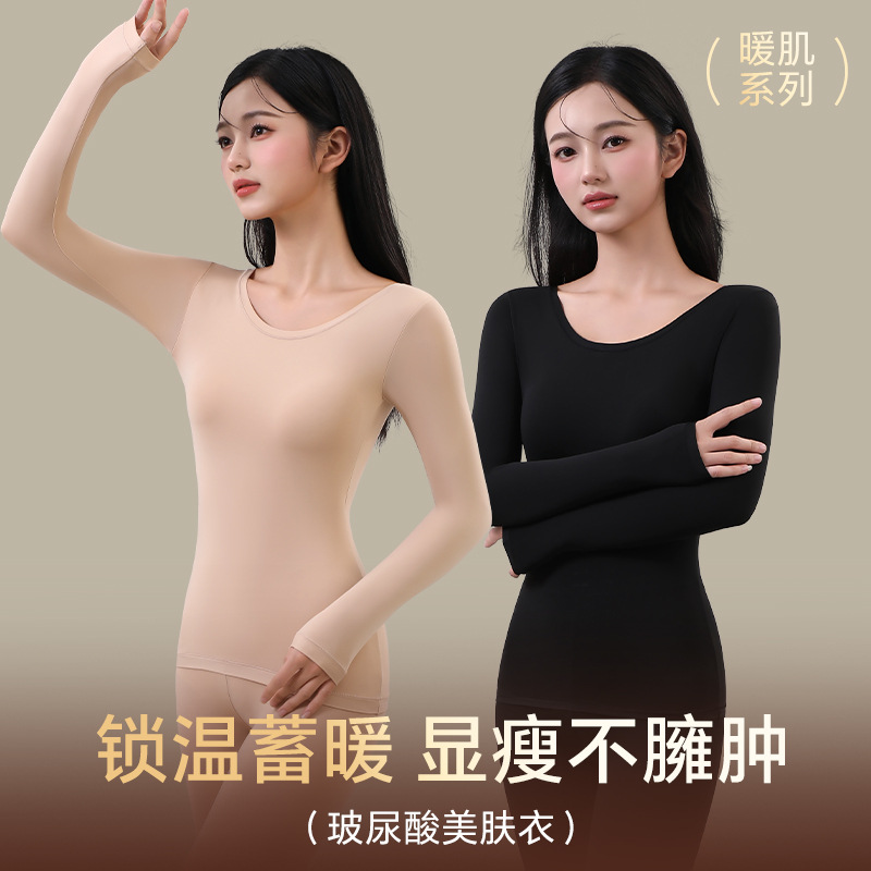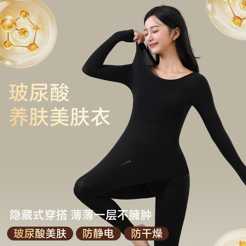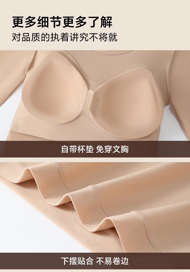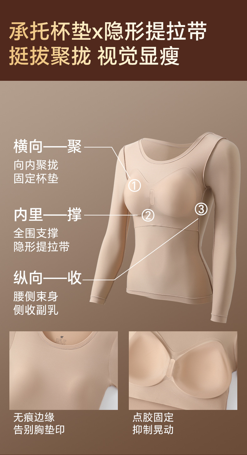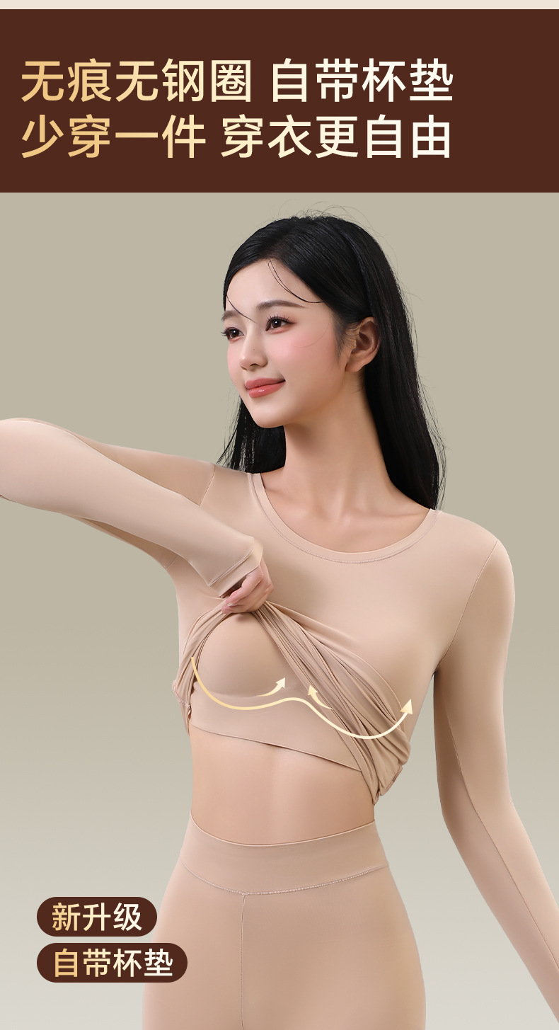 带胸垫秋冬美肤衣女无痕固定杯保暖内衣套装修身肌底衣裤防静电
