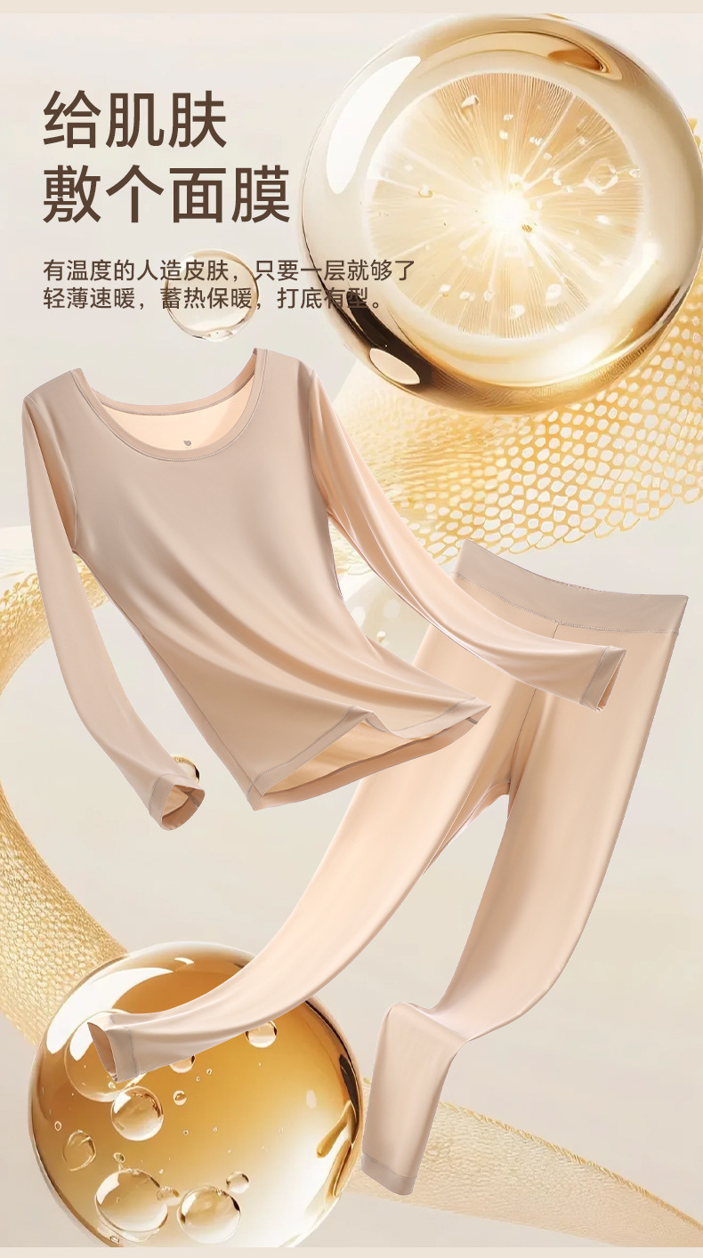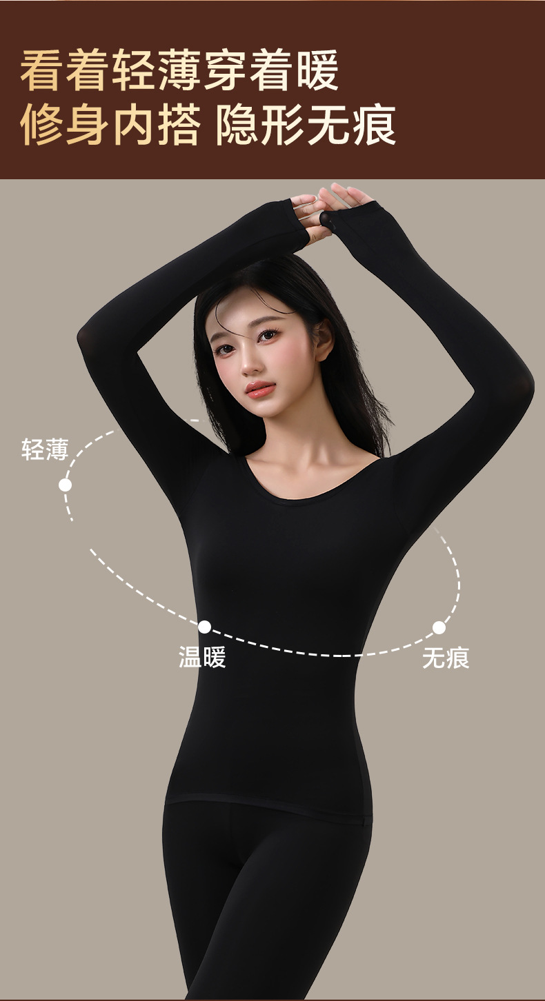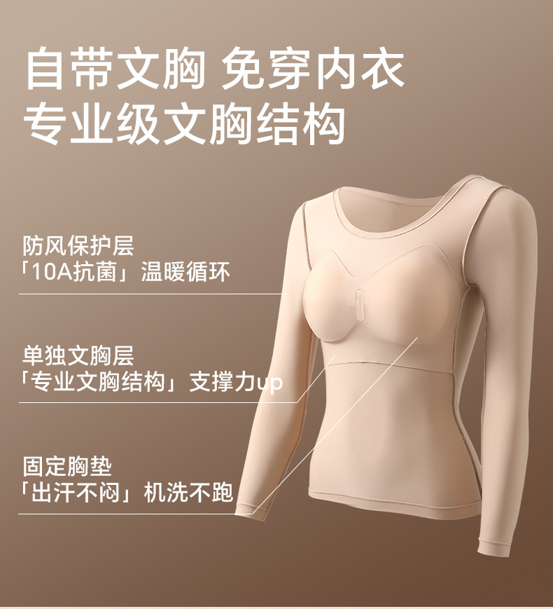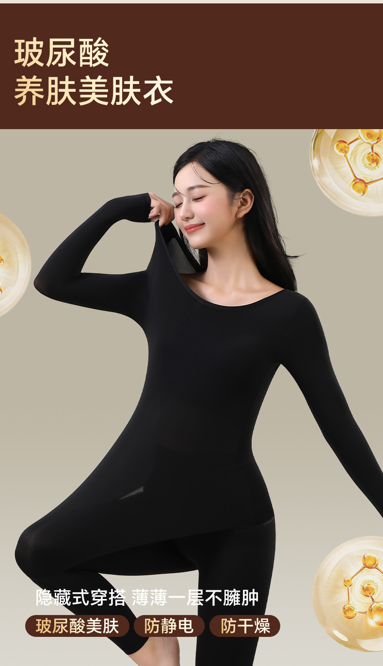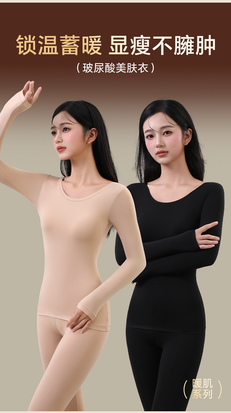 带胸垫秋冬美肤衣女无痕固定杯保暖内衣套装修身肌底衣裤防静电