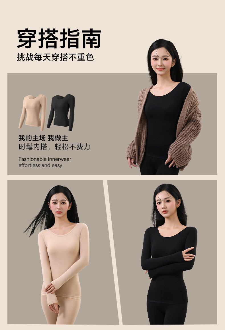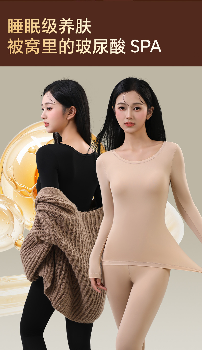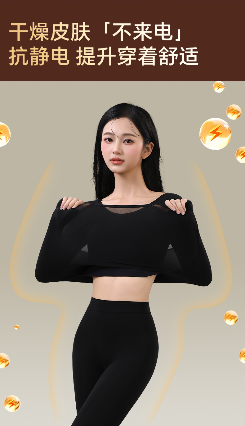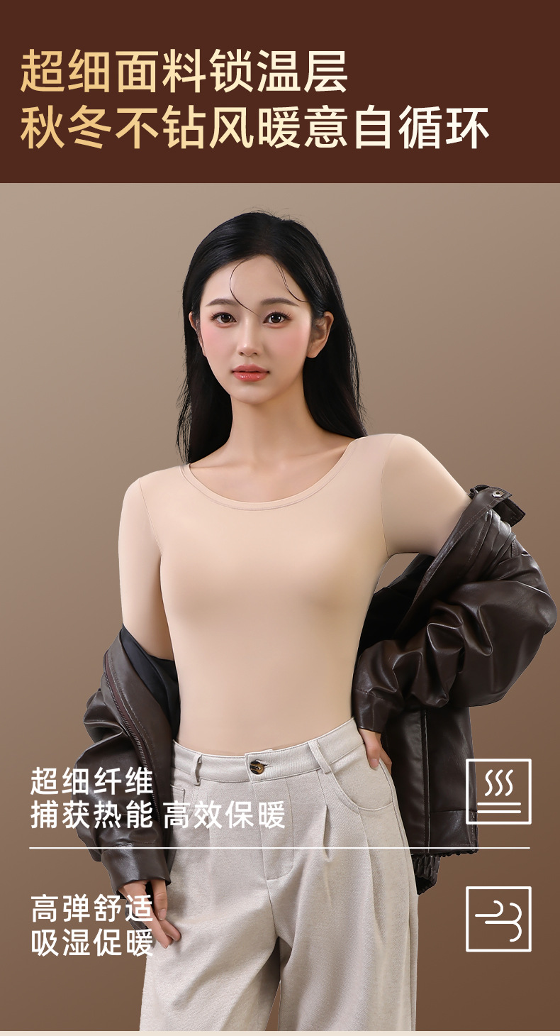 带胸垫秋冬美肤衣女无痕固定杯保暖内衣套装修身肌底衣裤防静电