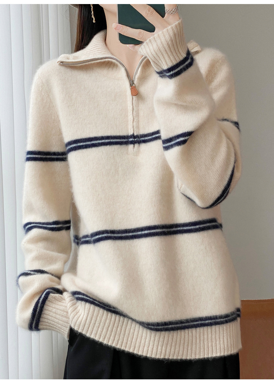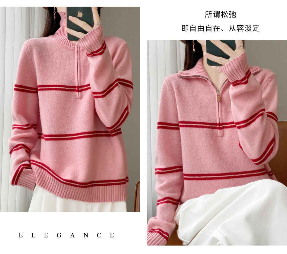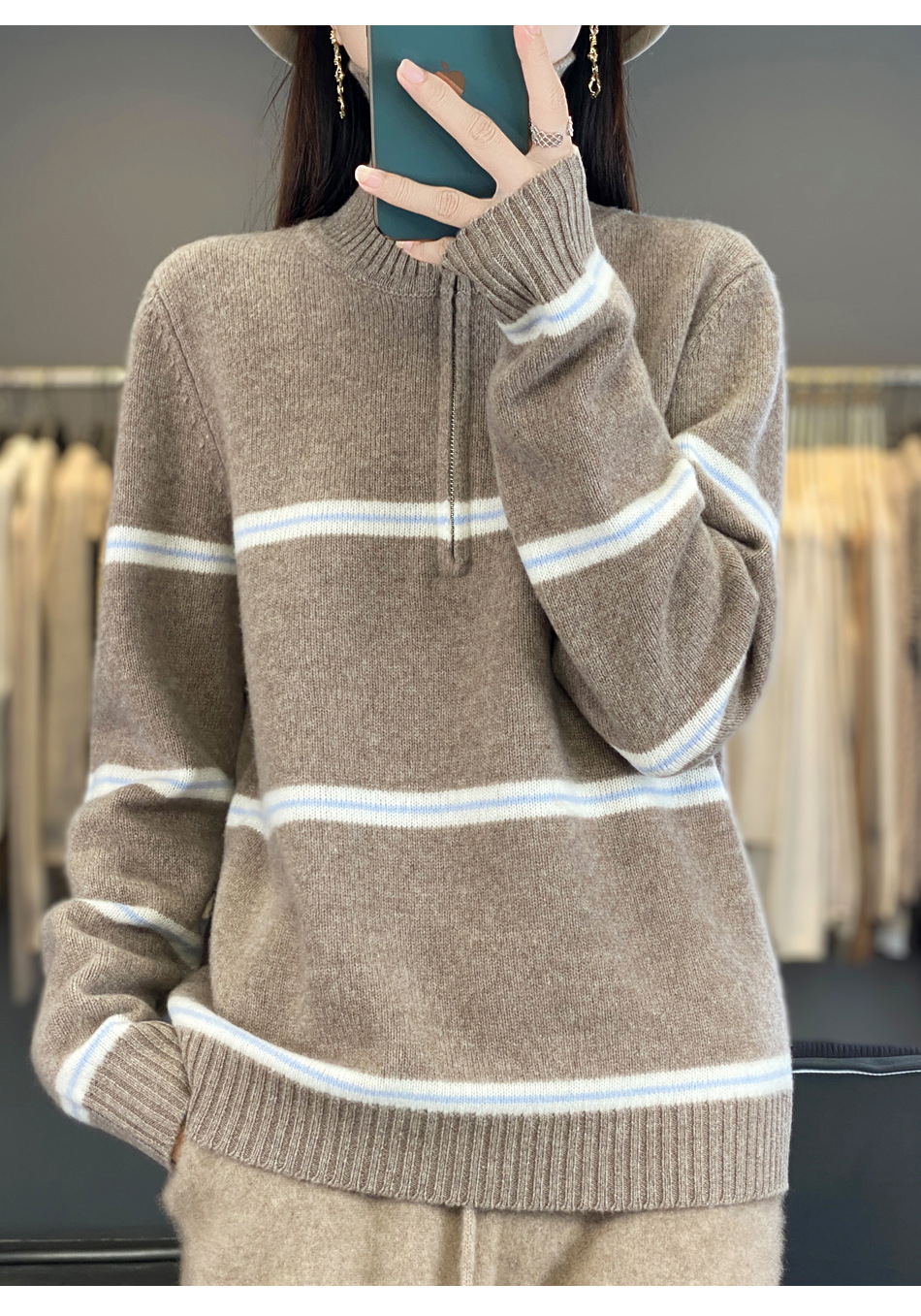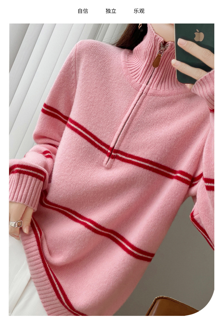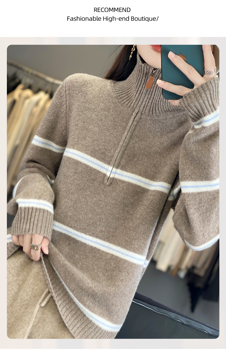 100%纯羊毛2025秋冬新款女式宽松Polo领半拉链套头卫衣针织衫毛衣