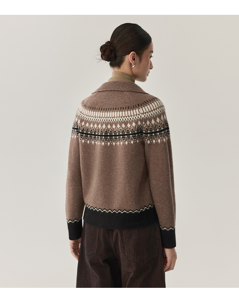 慵懒风羊毛衫女上衣2025新款设计感费尔岛毛衣外套女通勤百搭内搭