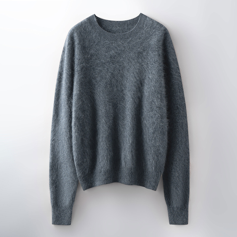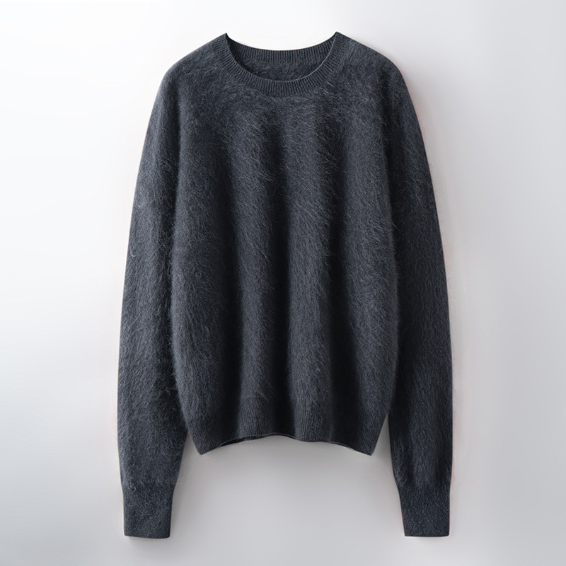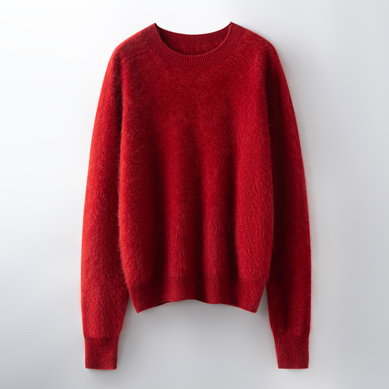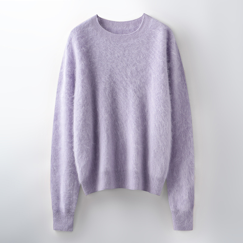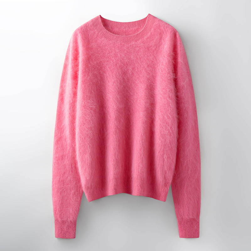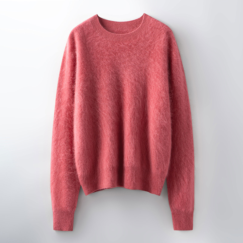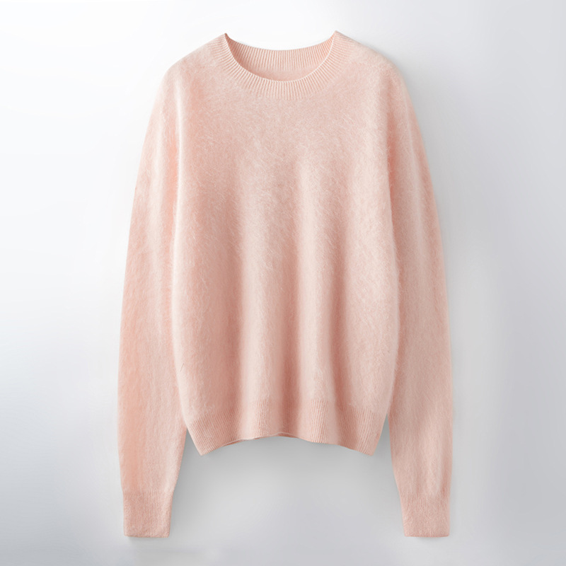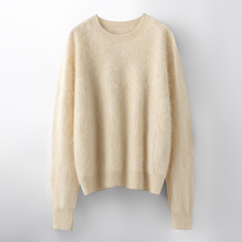 山羊绒衫女拉绒圆领毛衣秋冬无缝慵懒风拉绒纯色羊毛针织打底衫潮