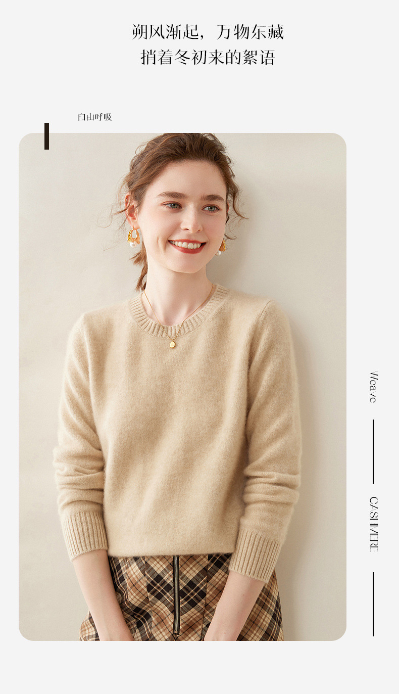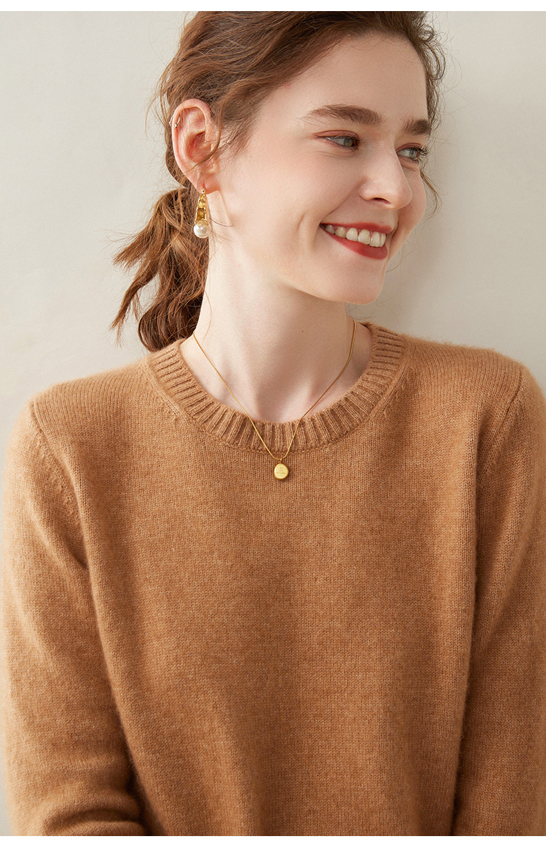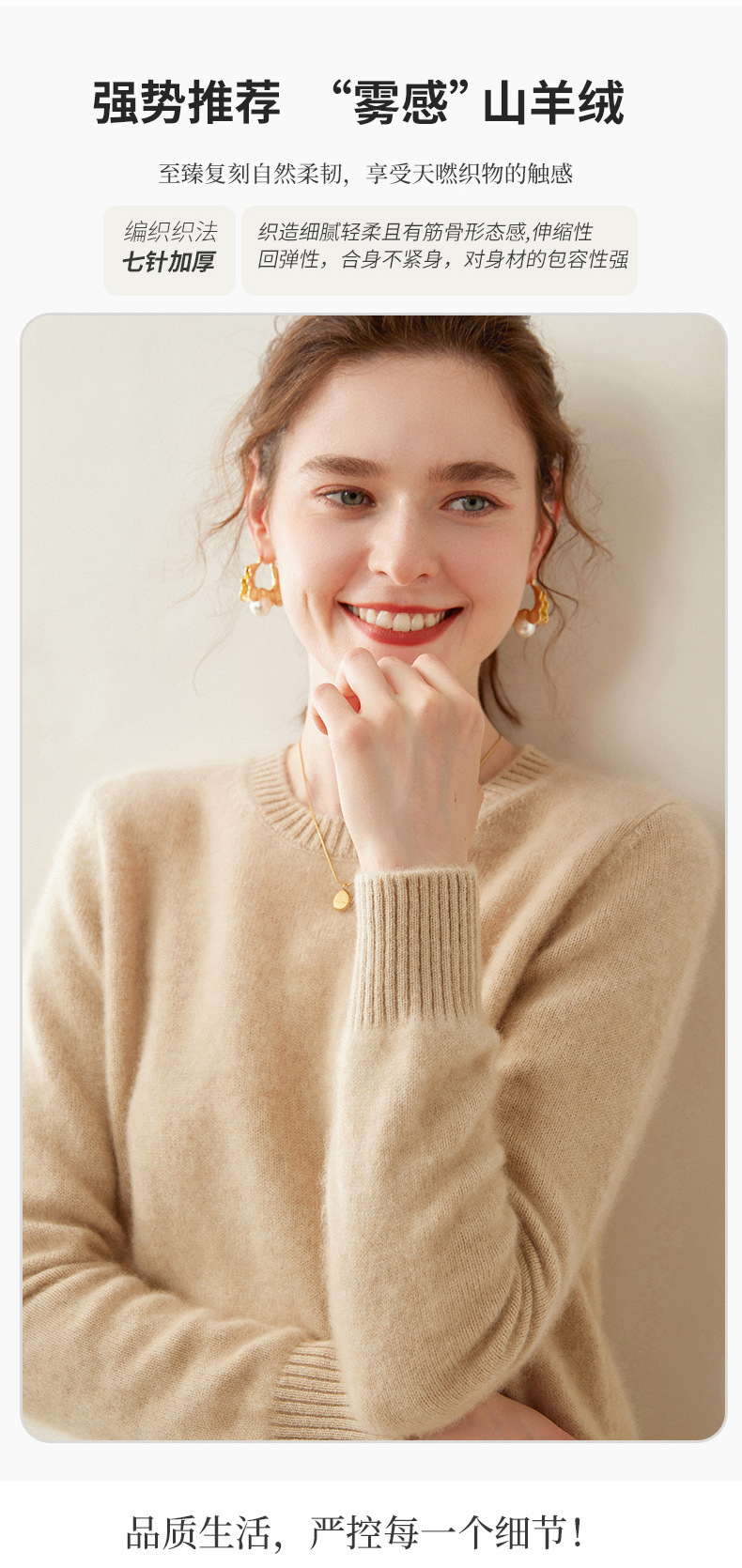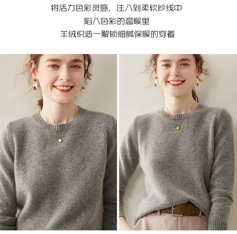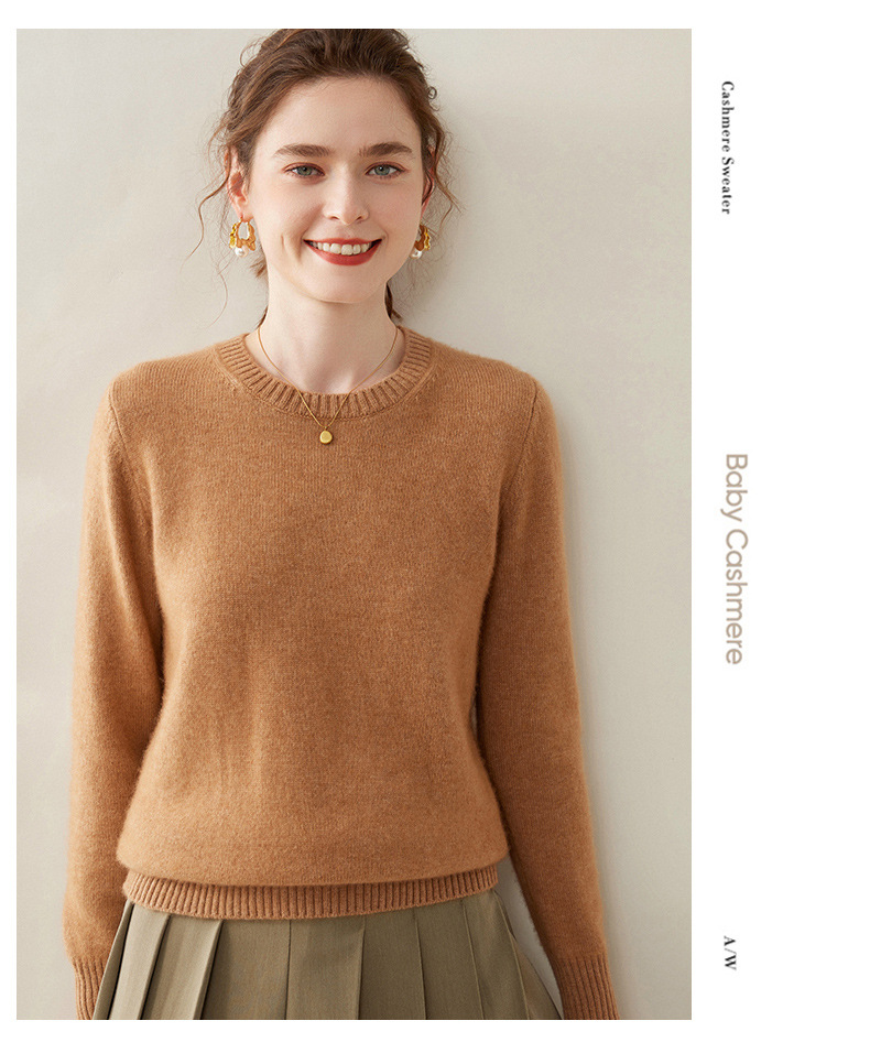 简约基础款100%纯山羊绒衫女圆领秋冬通勤百搭温柔风针织内搭毛衣