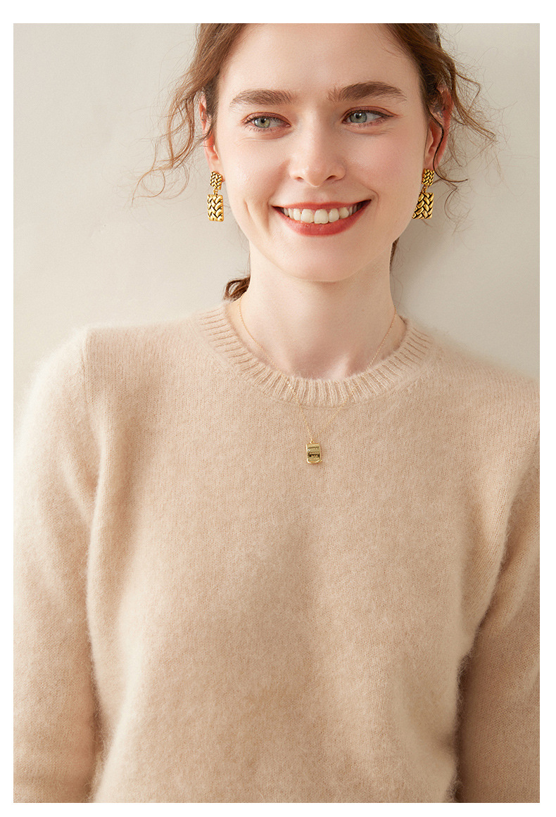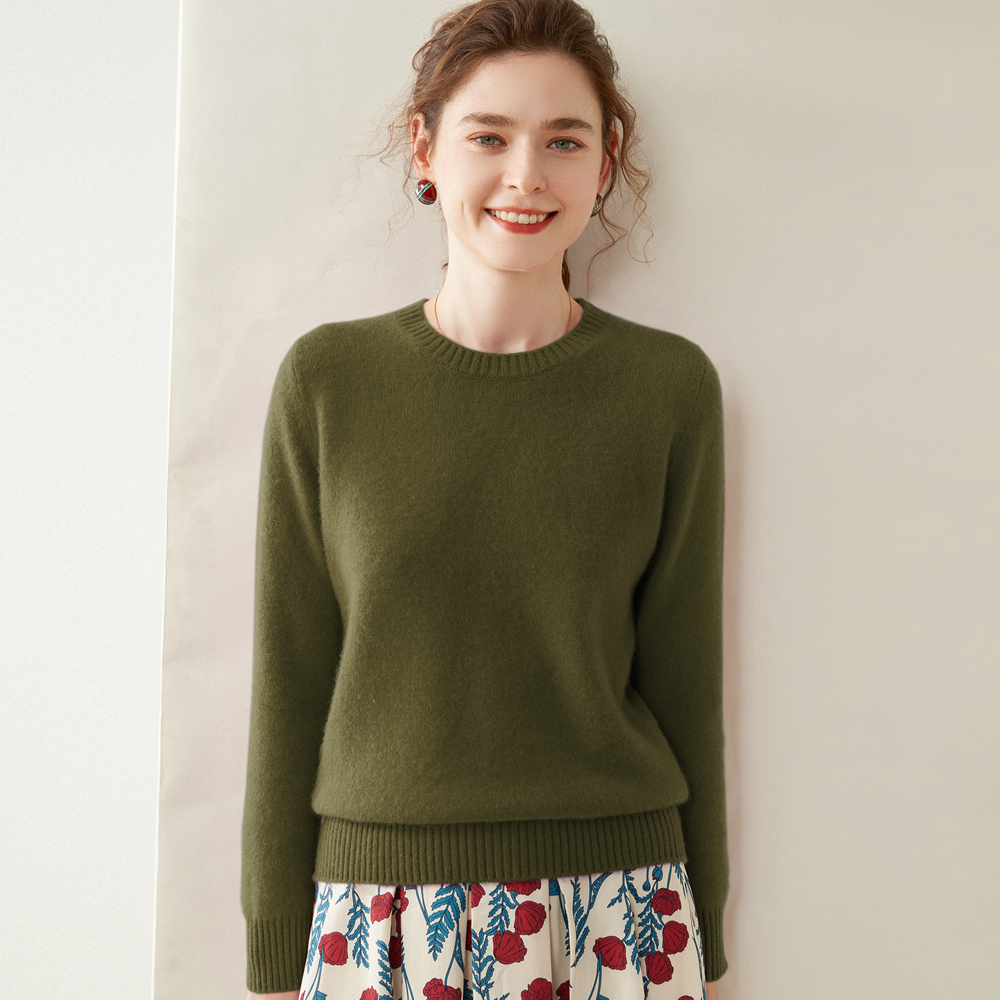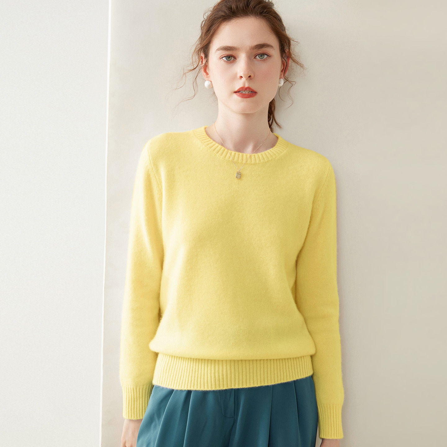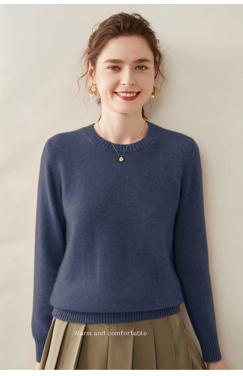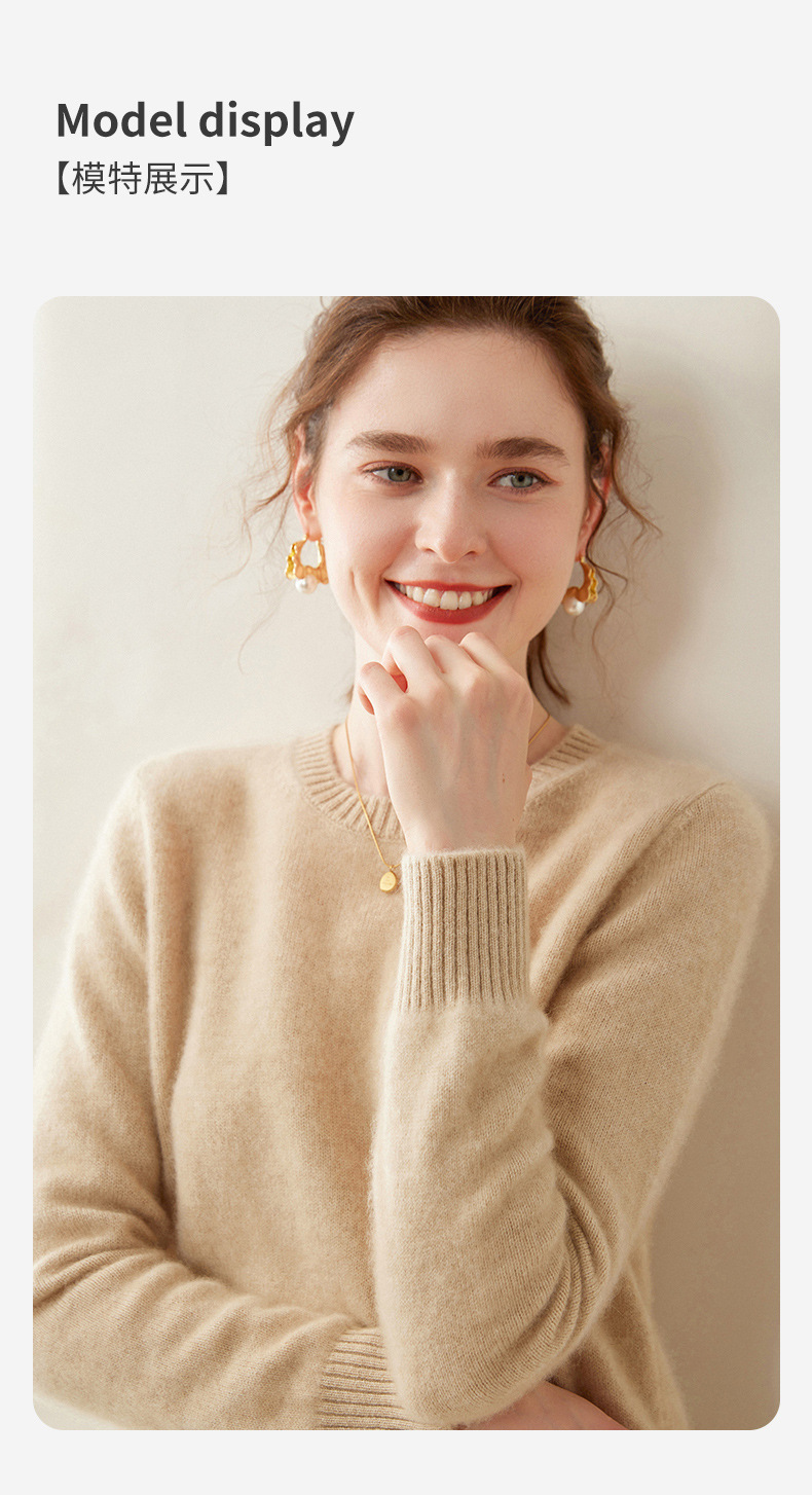 简约基础款100%纯山羊绒衫女圆领秋冬通勤百搭温柔风针织内搭毛衣