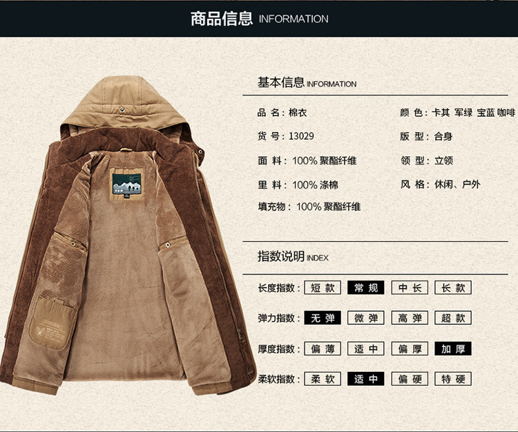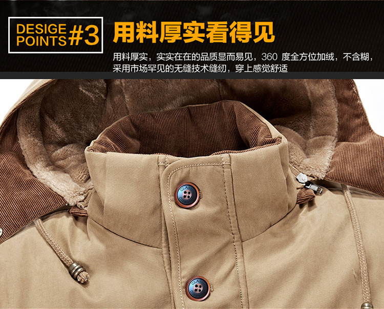 冬季13029男士棉衣中长款加绒加厚中老年棉服大码多口袋老年棉袄