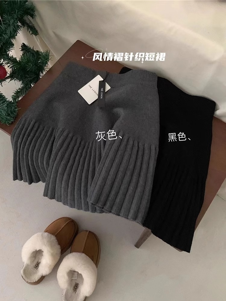 高级感松紧腰a字百褶半身短裙女2025秋冬新款高腰显瘦针织a字裙子